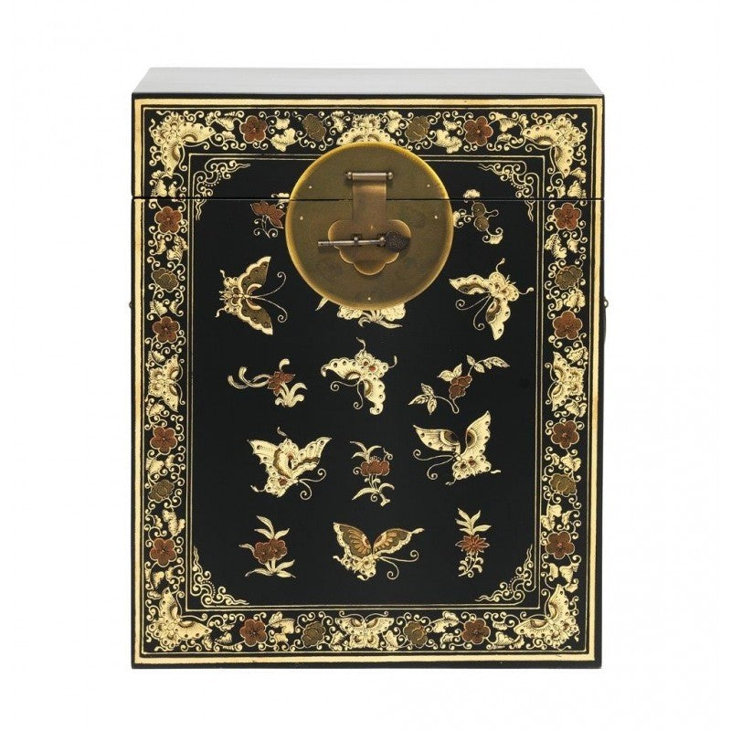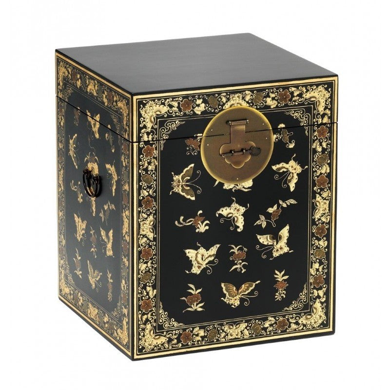 Golden Dragon Oriental Painted Solid Wood Decorated Black Chest 45x45x50cm