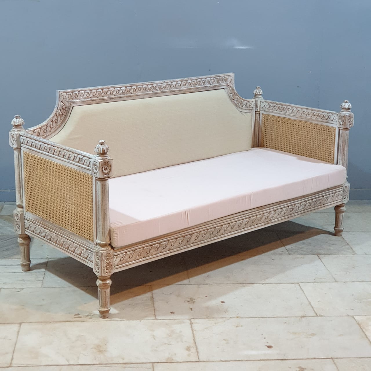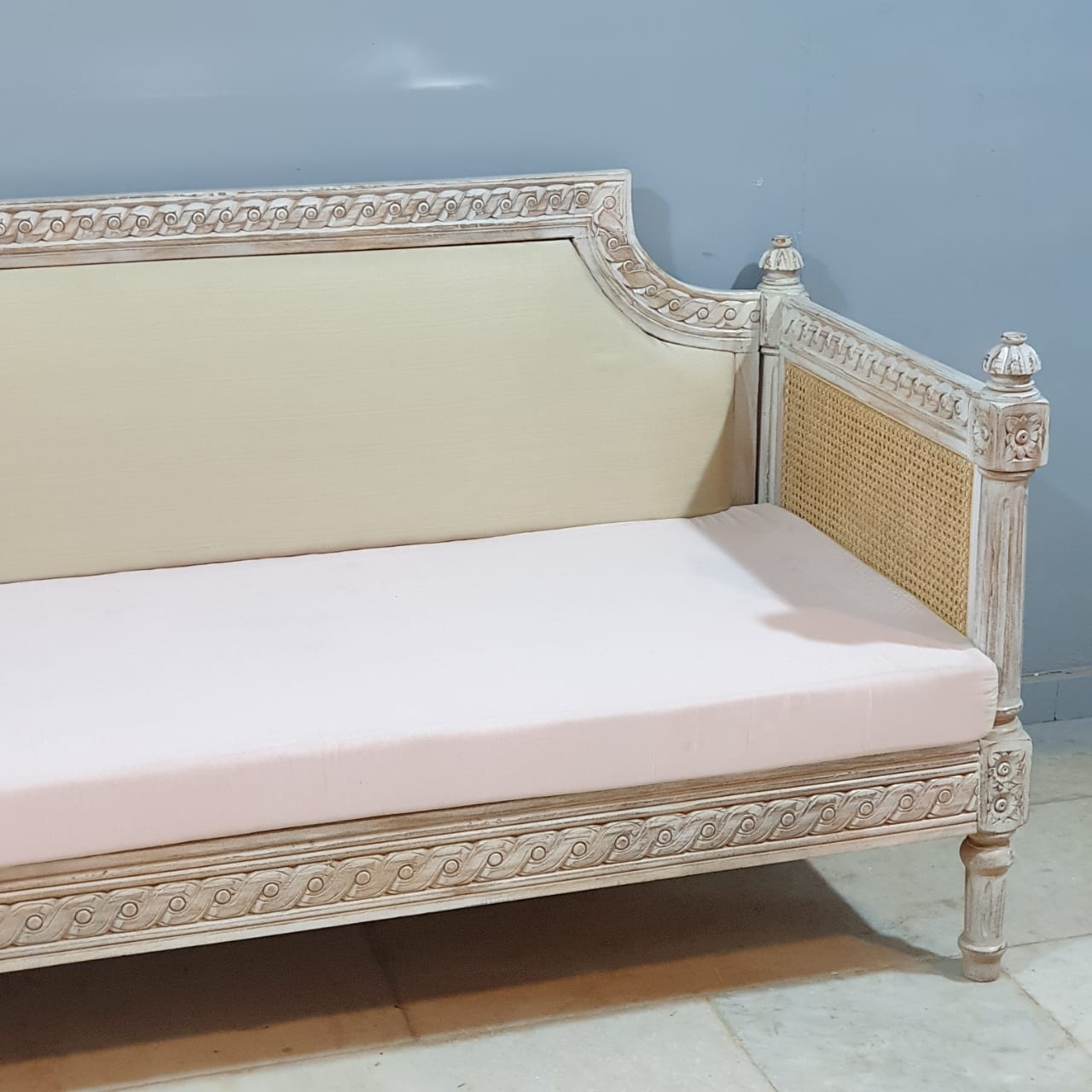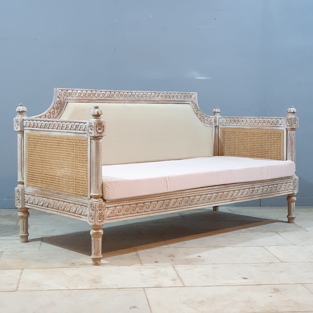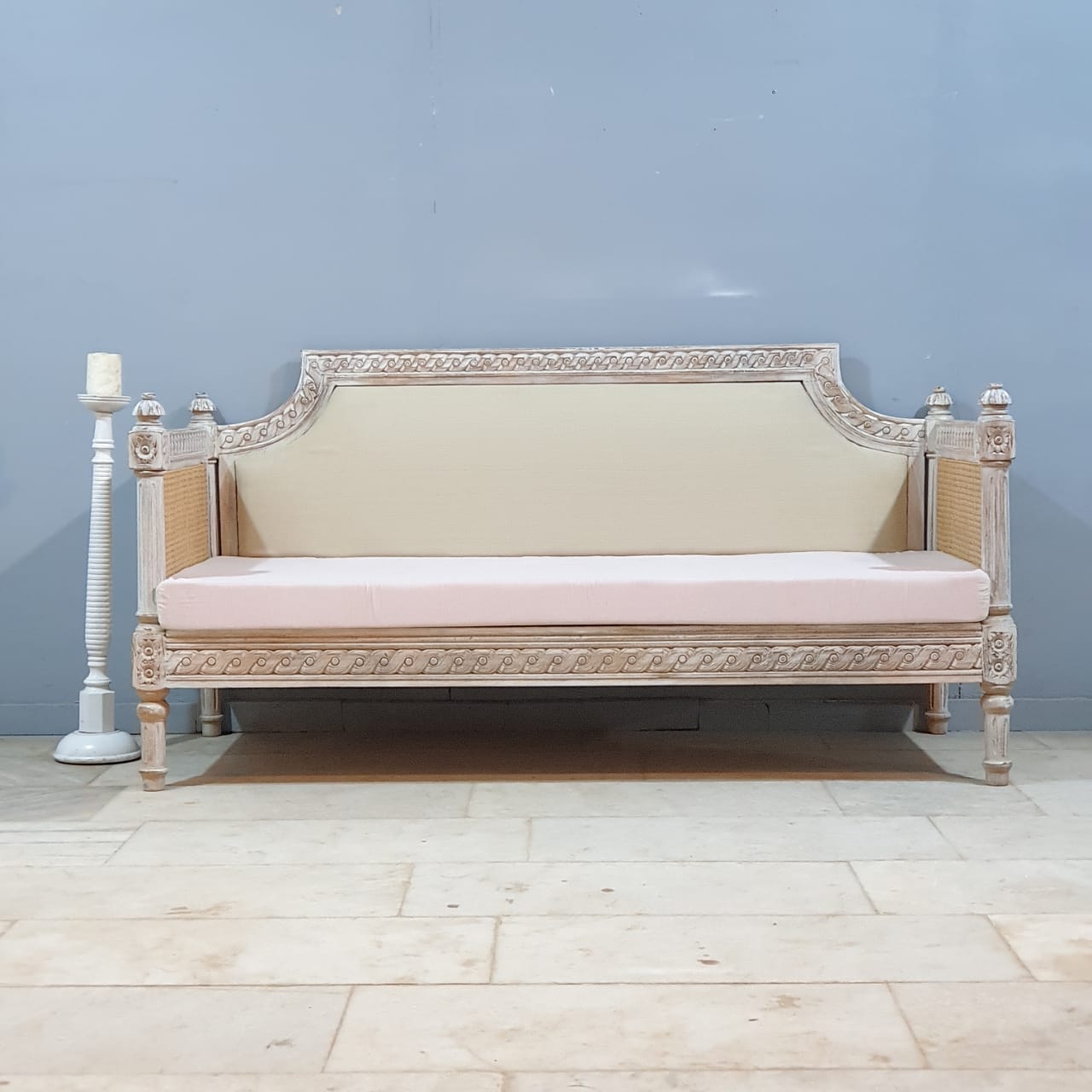 Hand Carved Cane Sofa Daybed Whitewash 180x76x92 cm