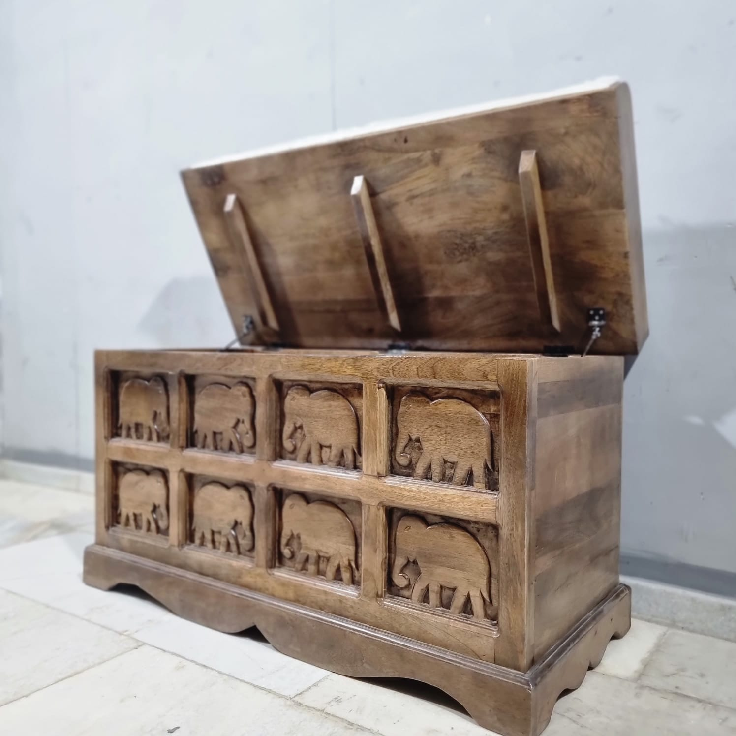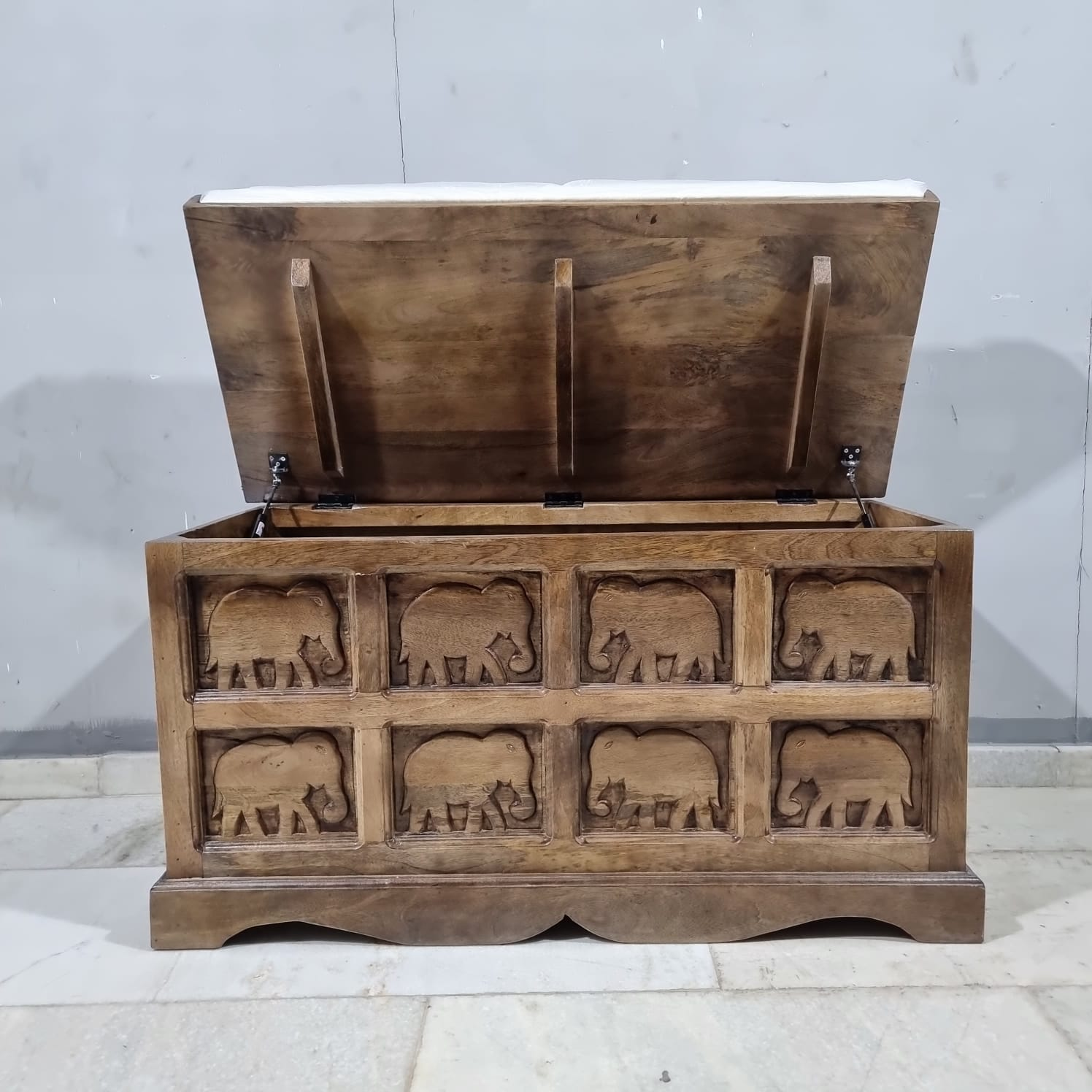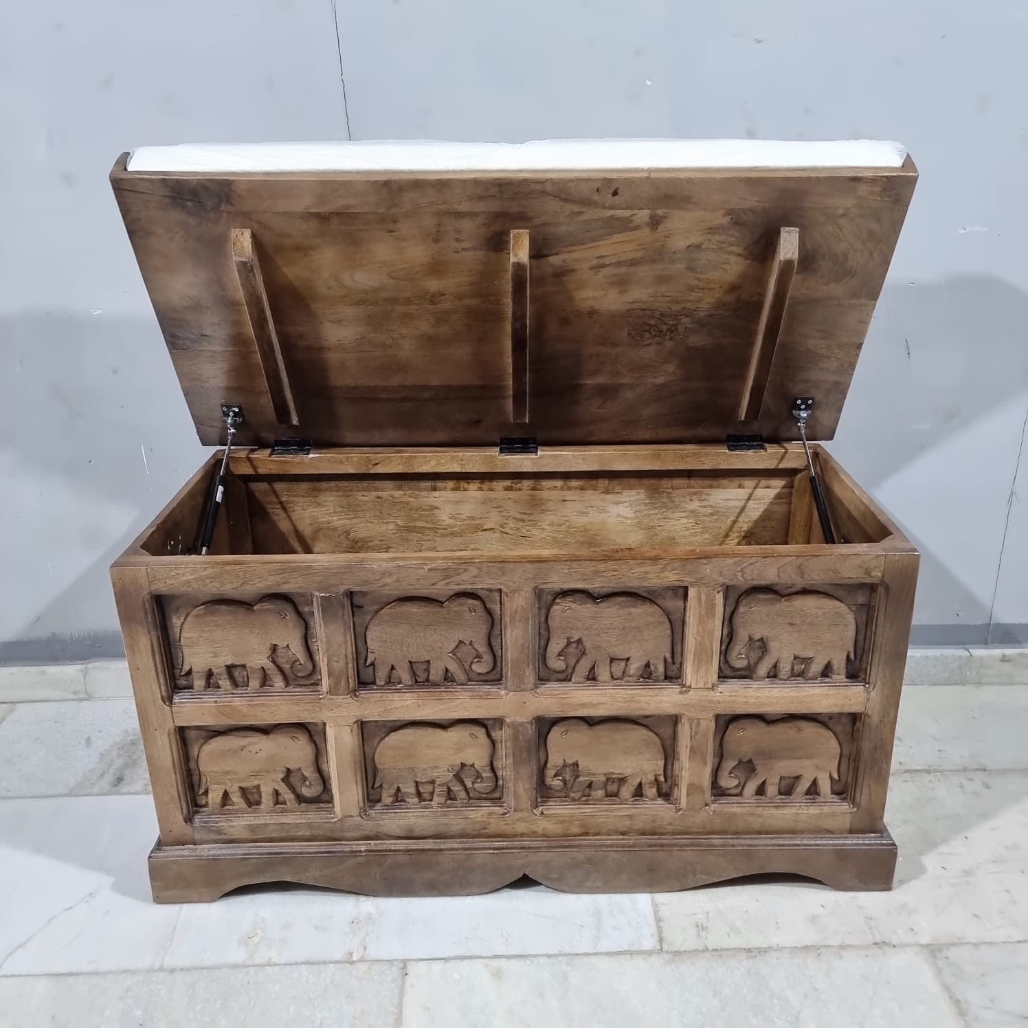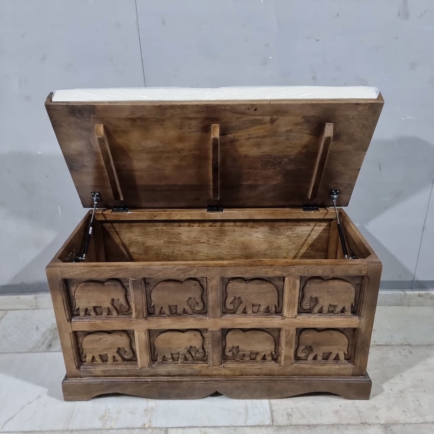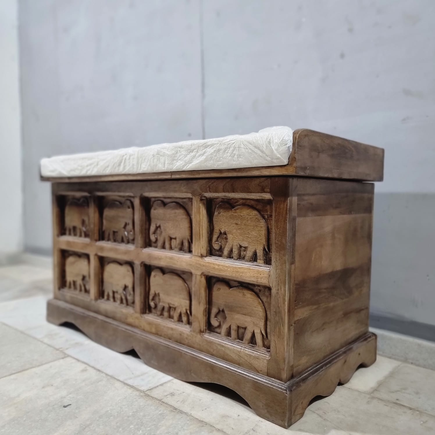 Hand Carved Elephant Design Solid Wood Storage Chest With Seat C25