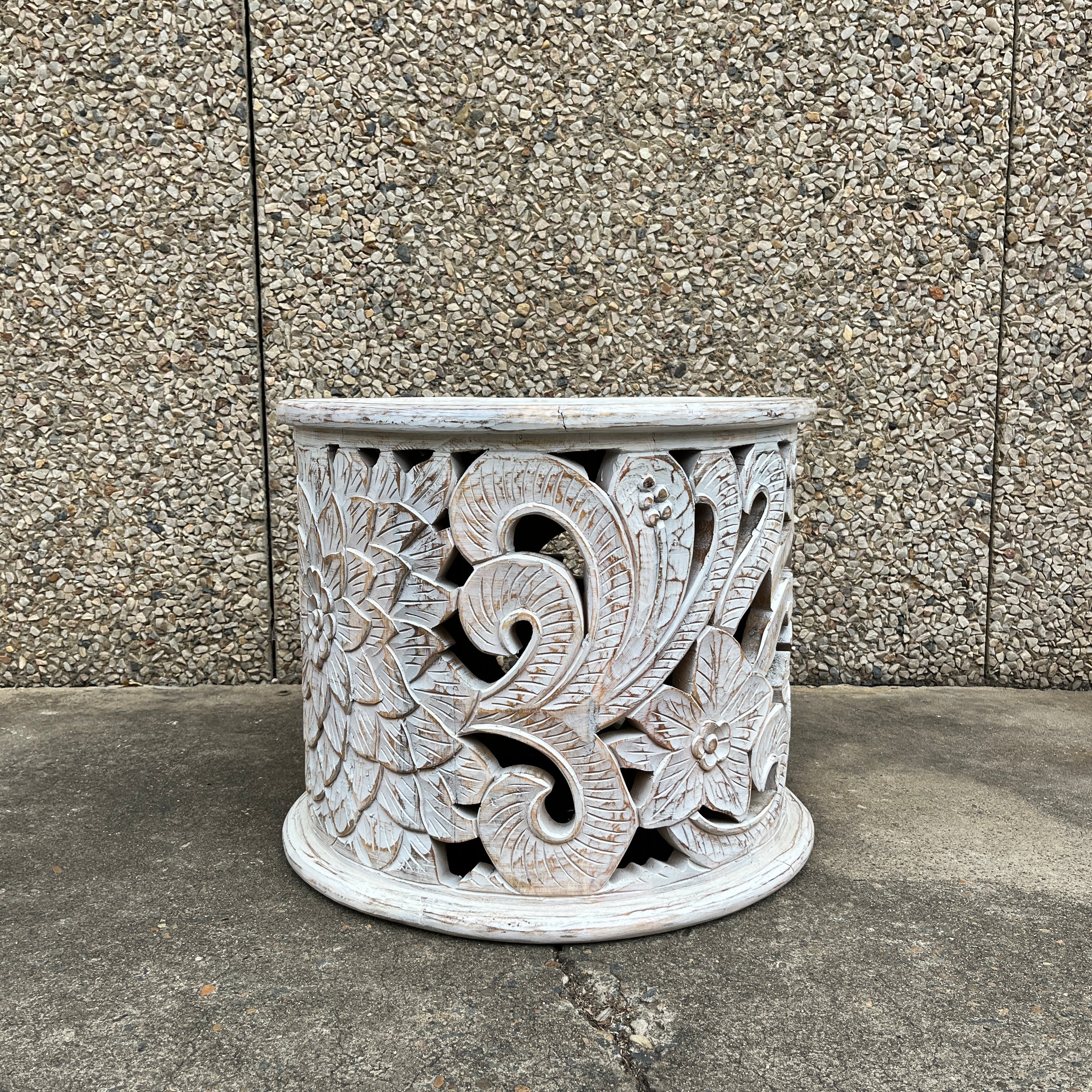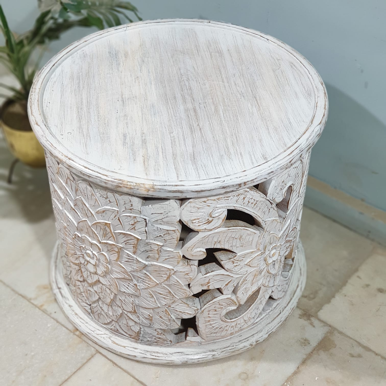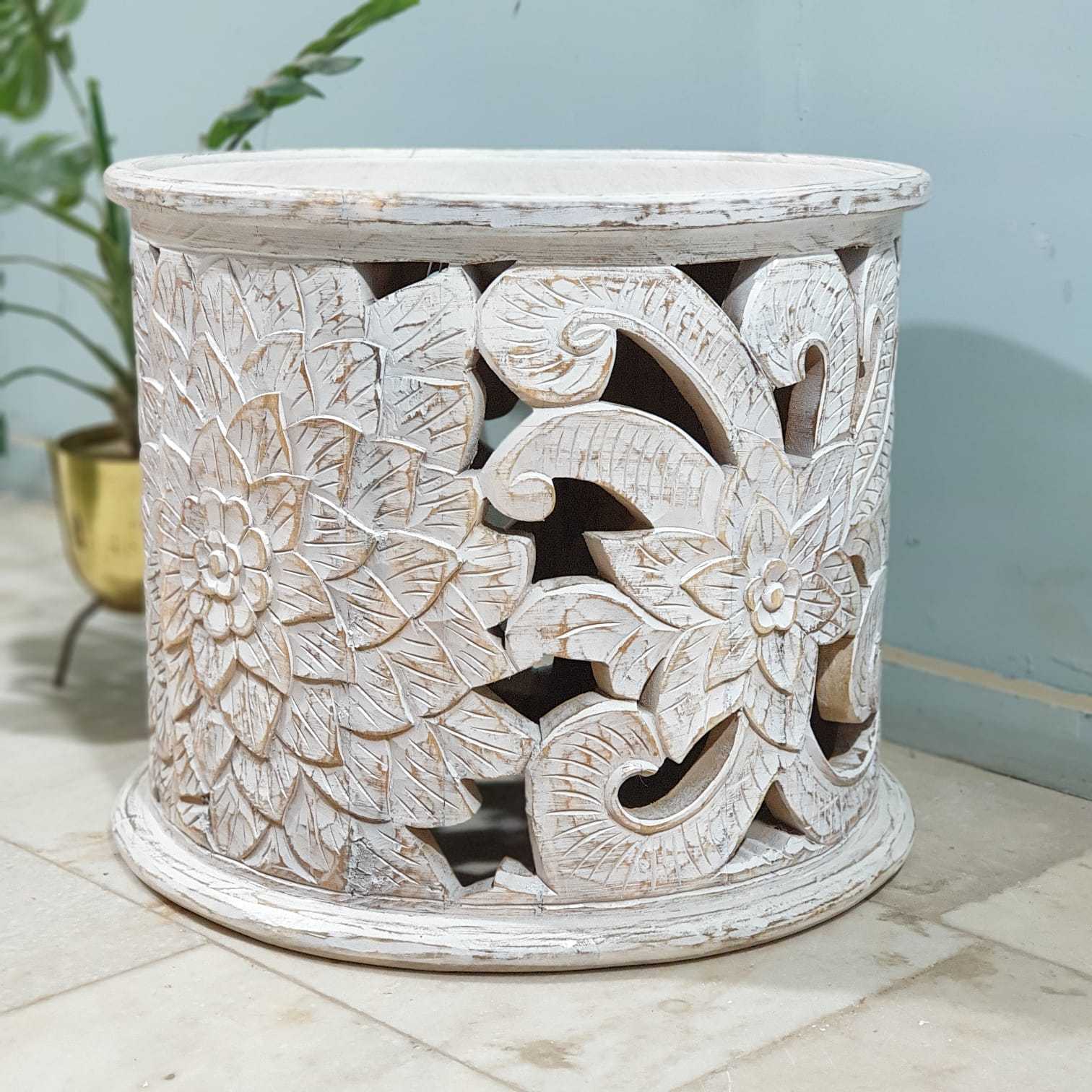 Hand Carved Indian Mango Wood Round Coffee Table 60X60X50CM