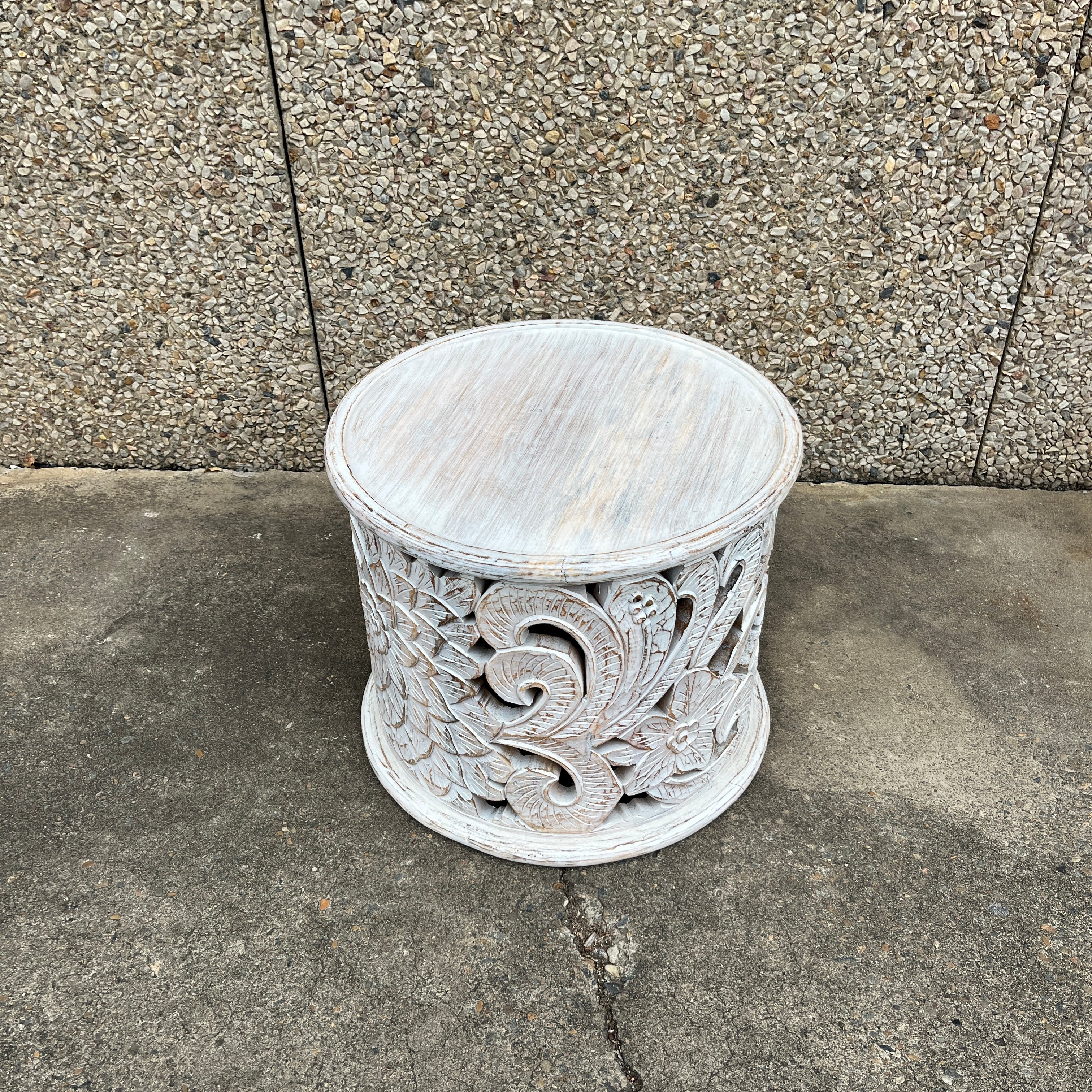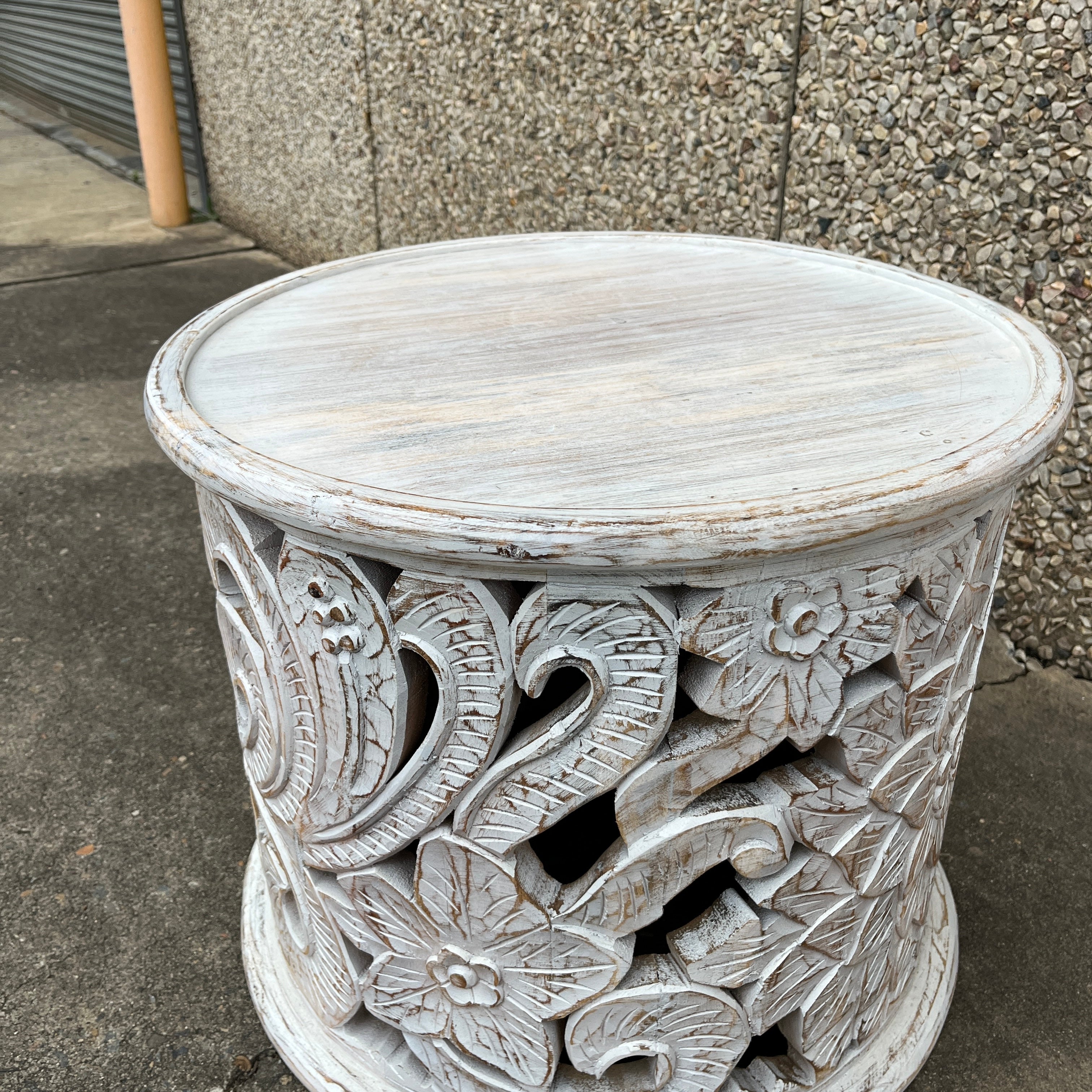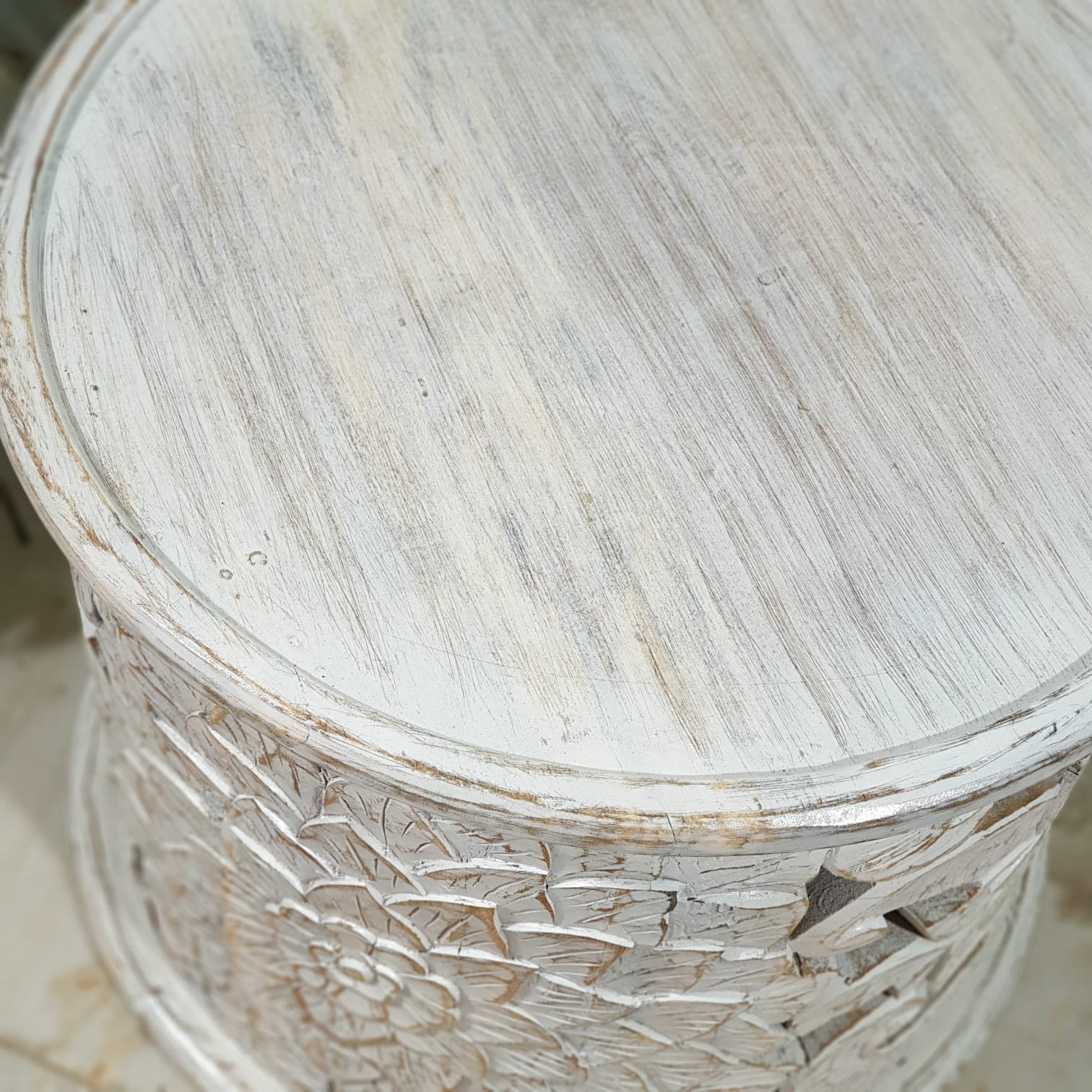 Hand Carved Indian Mango Wood Round Coffee Table 60X60X50CM
