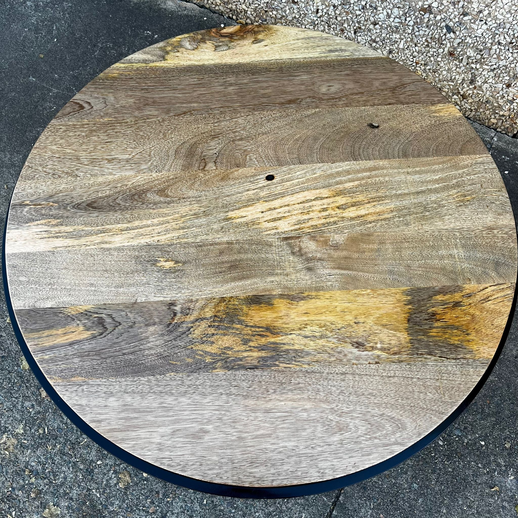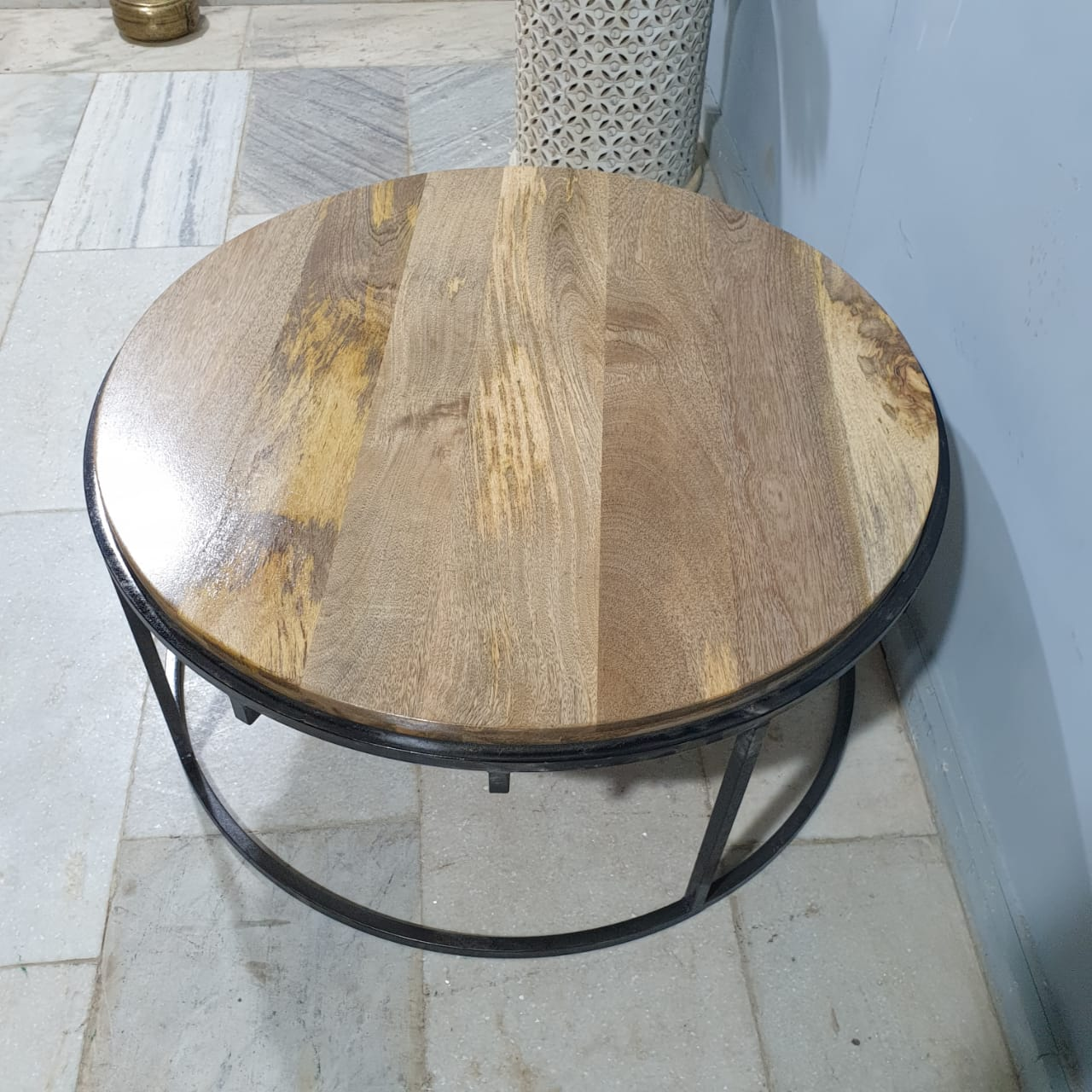Hand Carved Indian Mango Wood Round Metal Coffee Table 100x45 cm