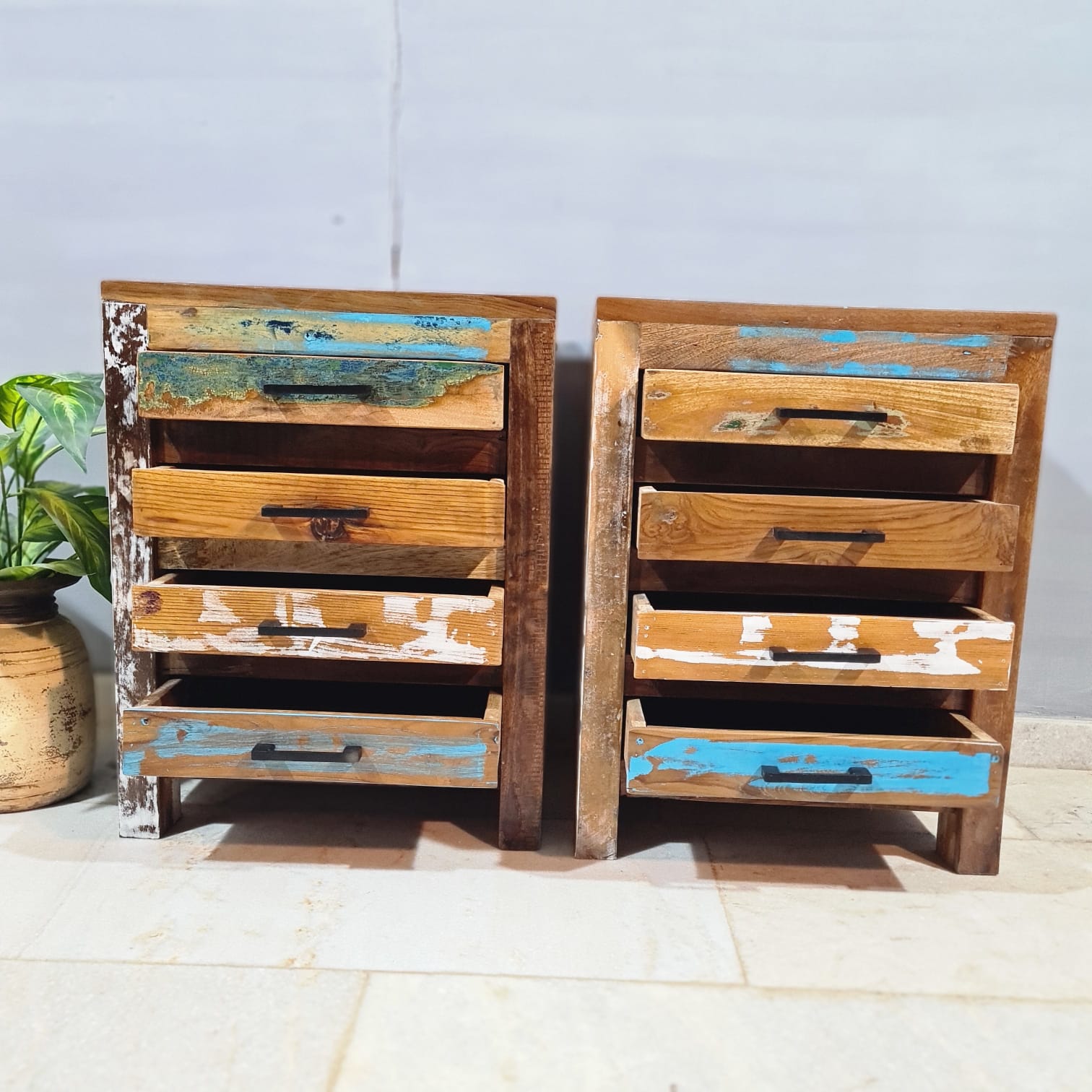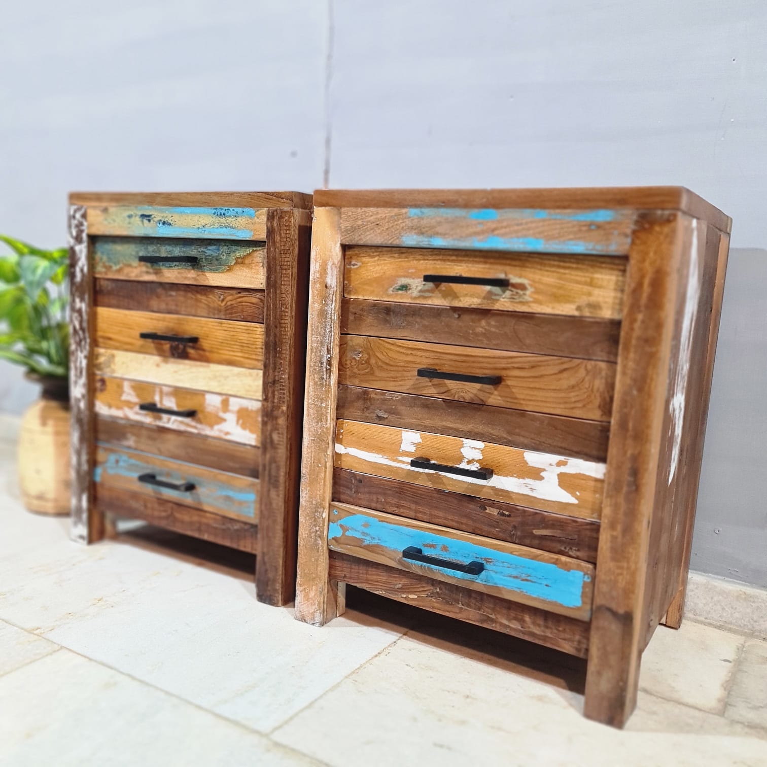 Nirvana Reclaimed Boatwood 4 Drawer Bedside Table 91