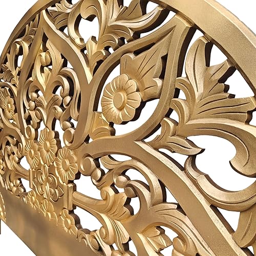 Hand Carved King Size Bed Headboard Bed Head Gold Finish