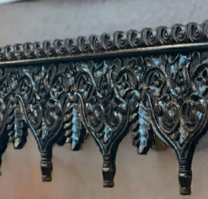 Hand Carved Mango Wood Wall Decor Floating Shelf for Living Room Black