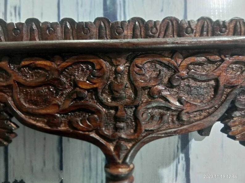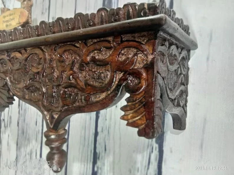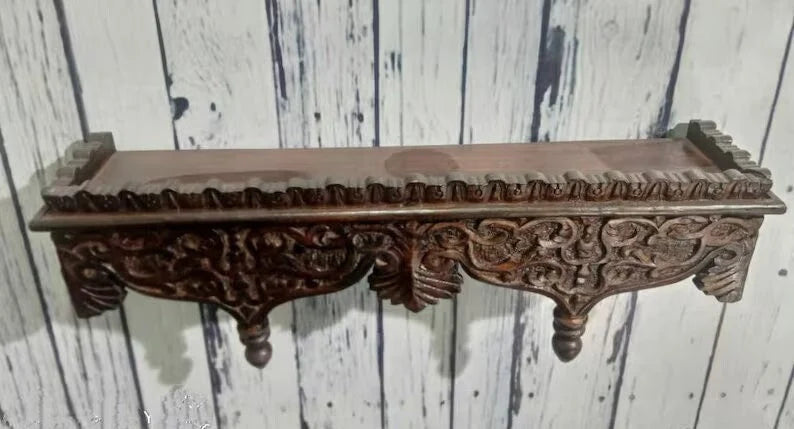 Hand Carved Mango Wood Wall Decor Floating Shelf for Living Room Brown