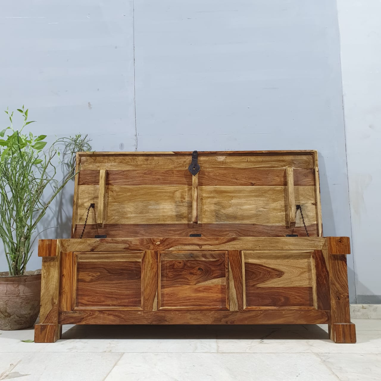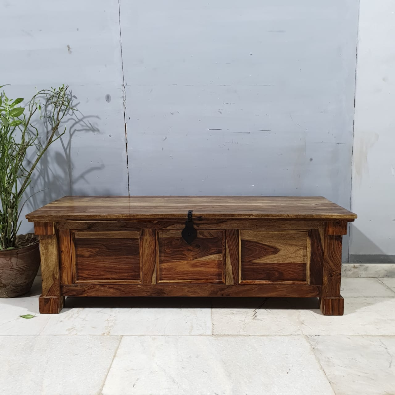 Indian Hand Carved Solid Wood Storage Blanket Box C28