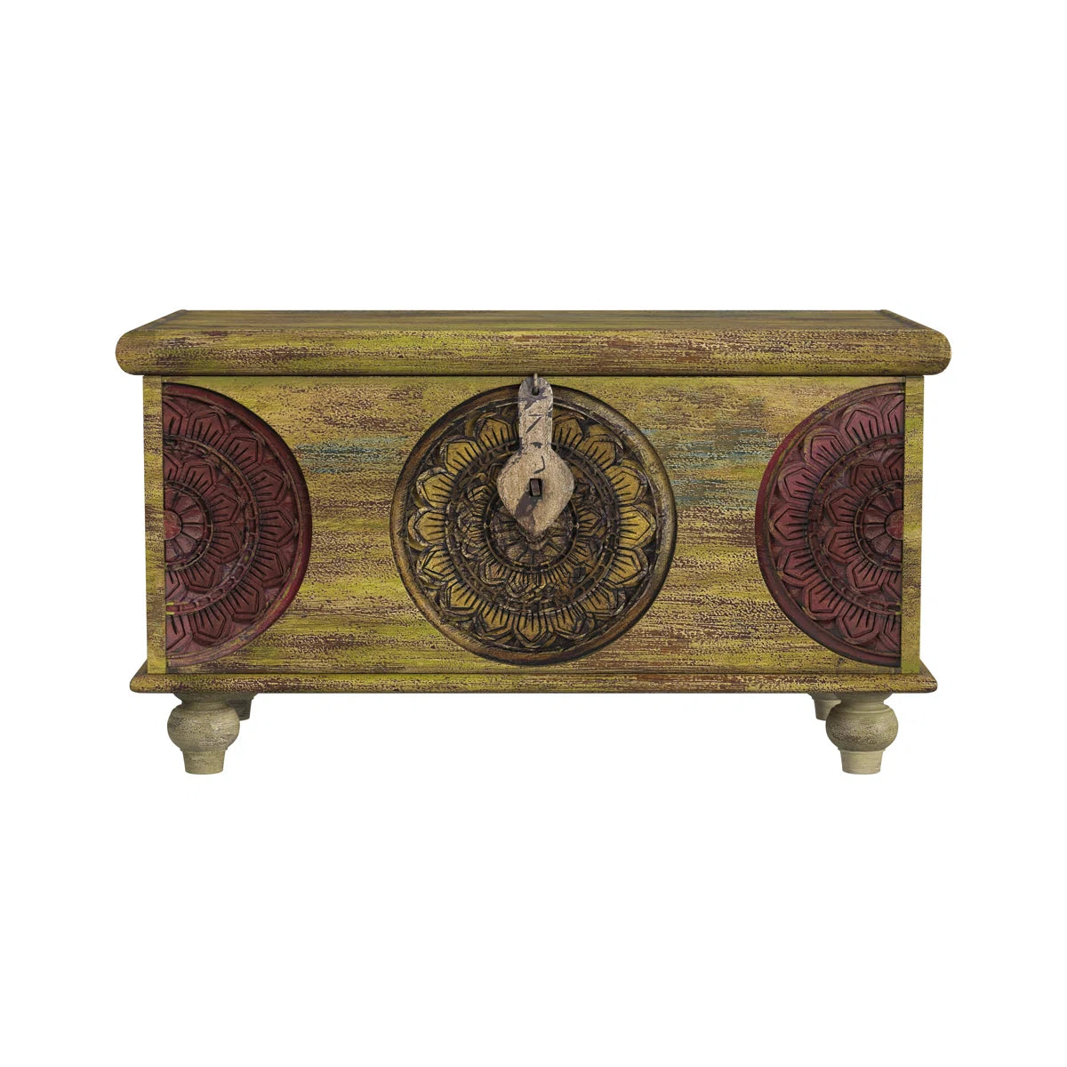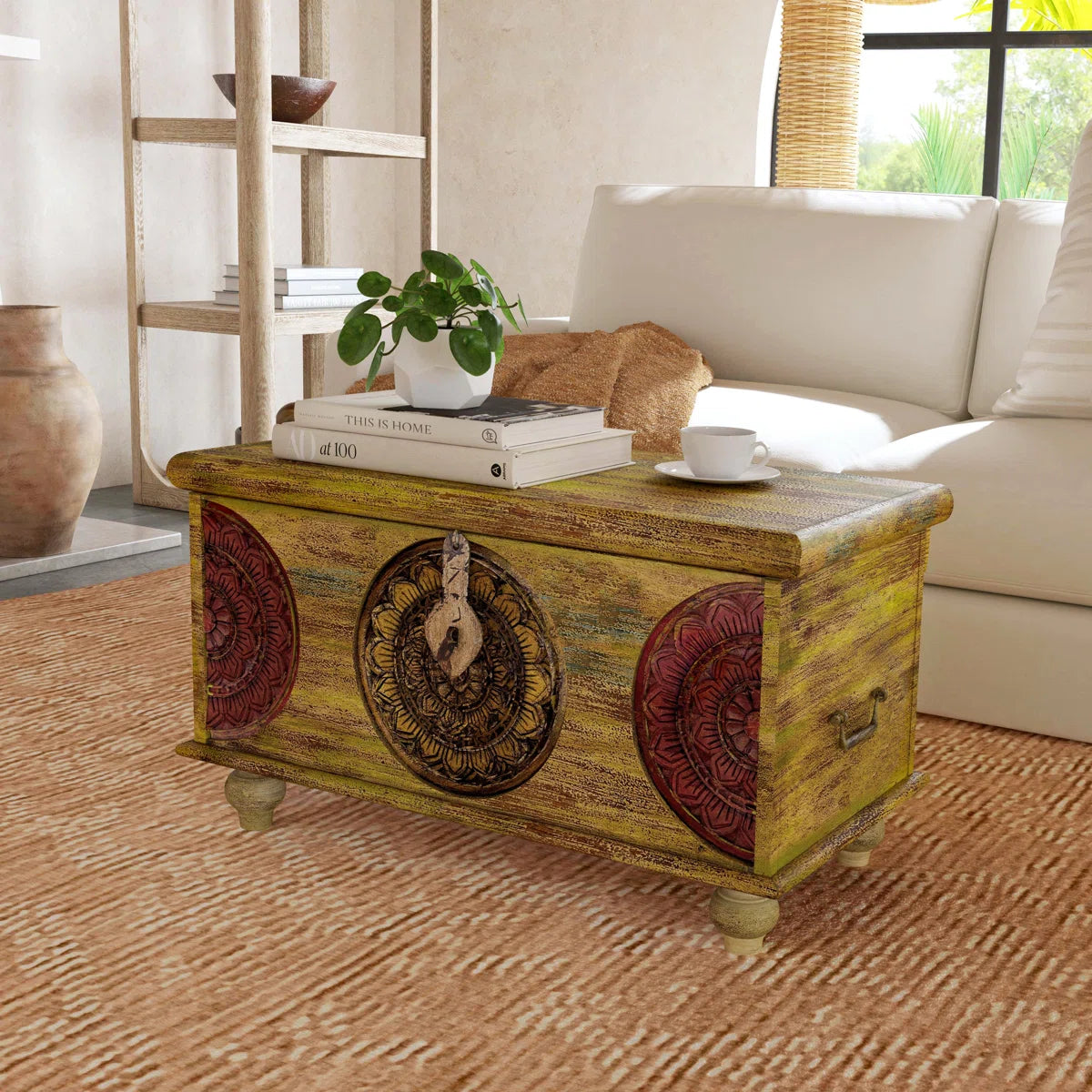 Hand Carved Solid Wood Coffee Table With Storage Chest