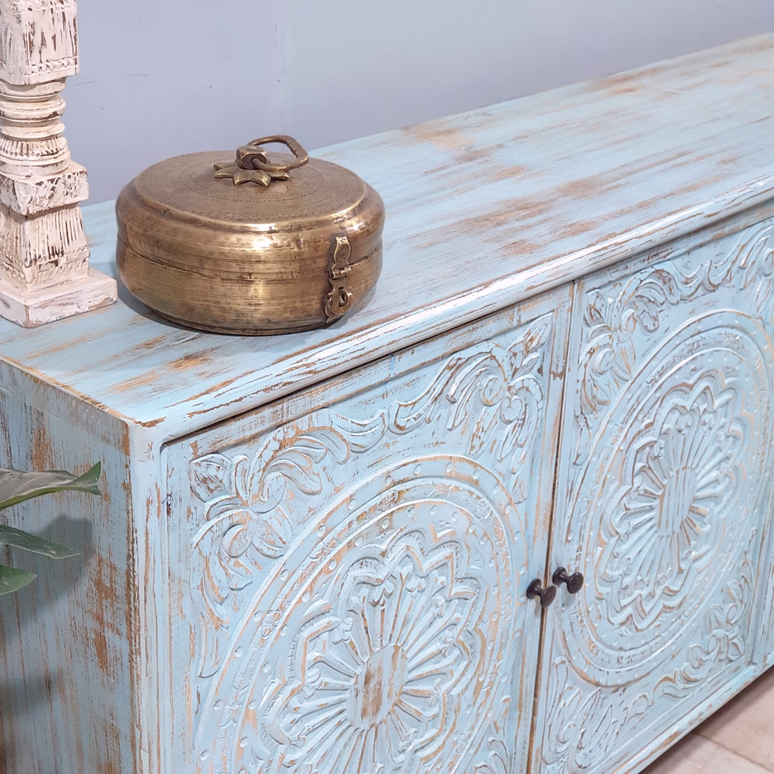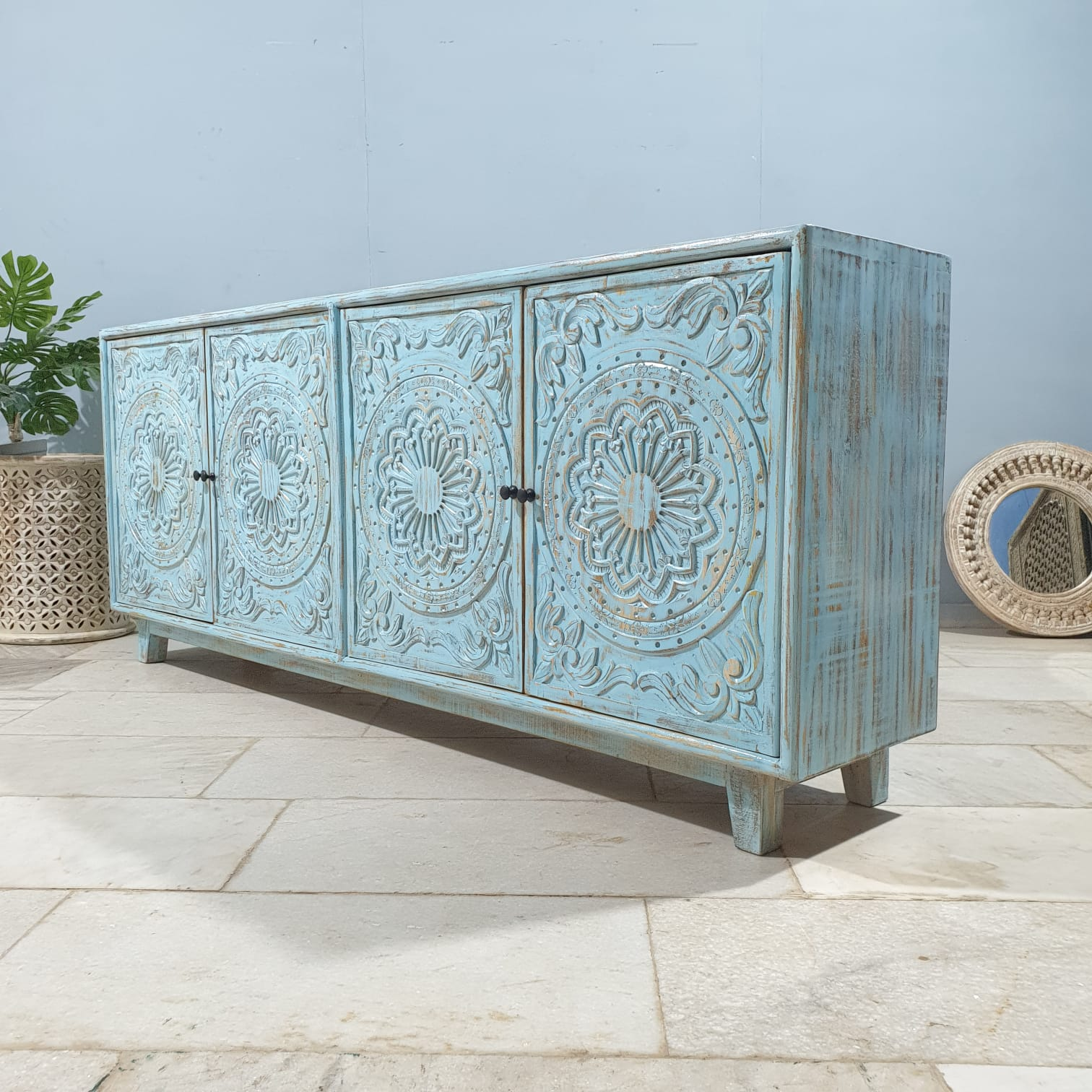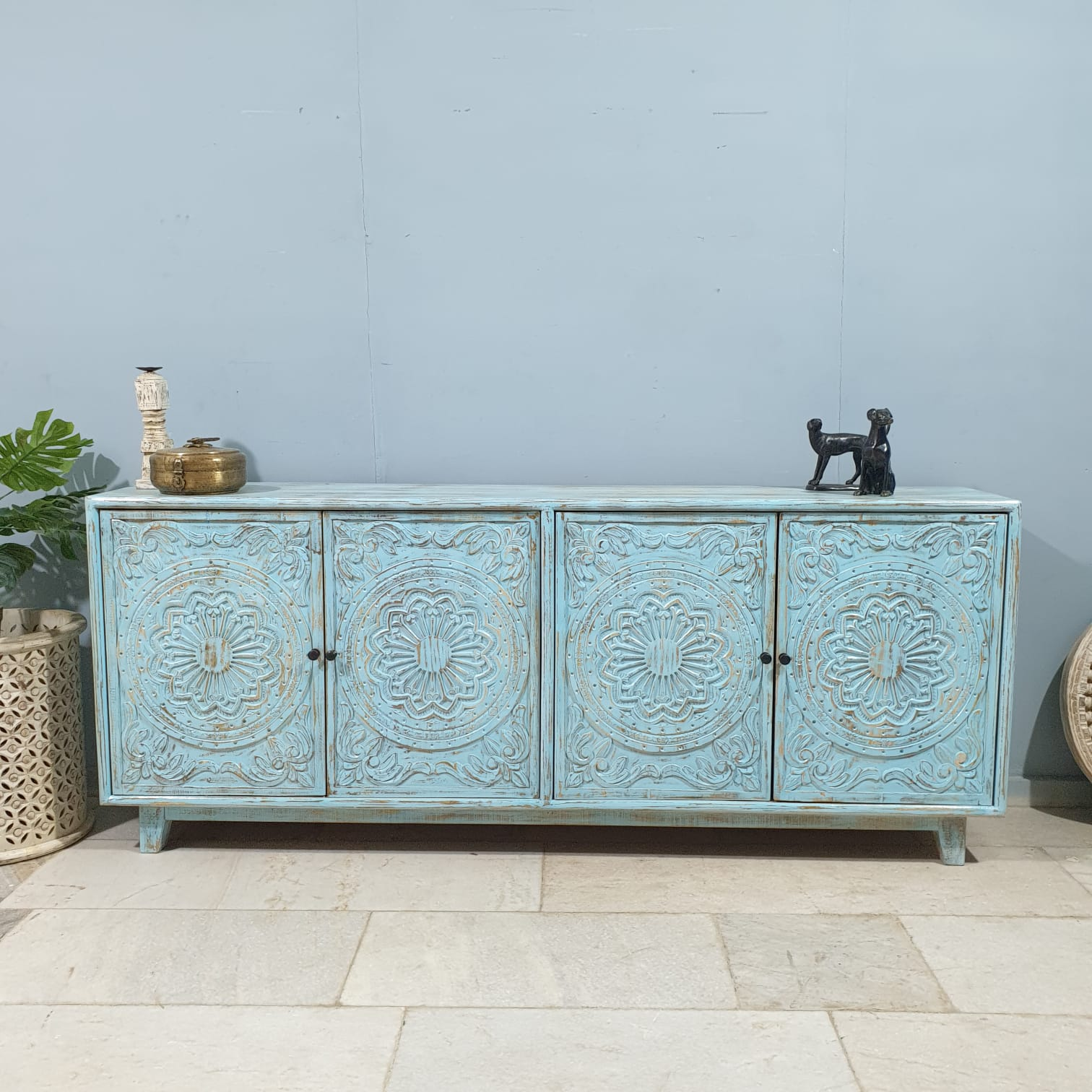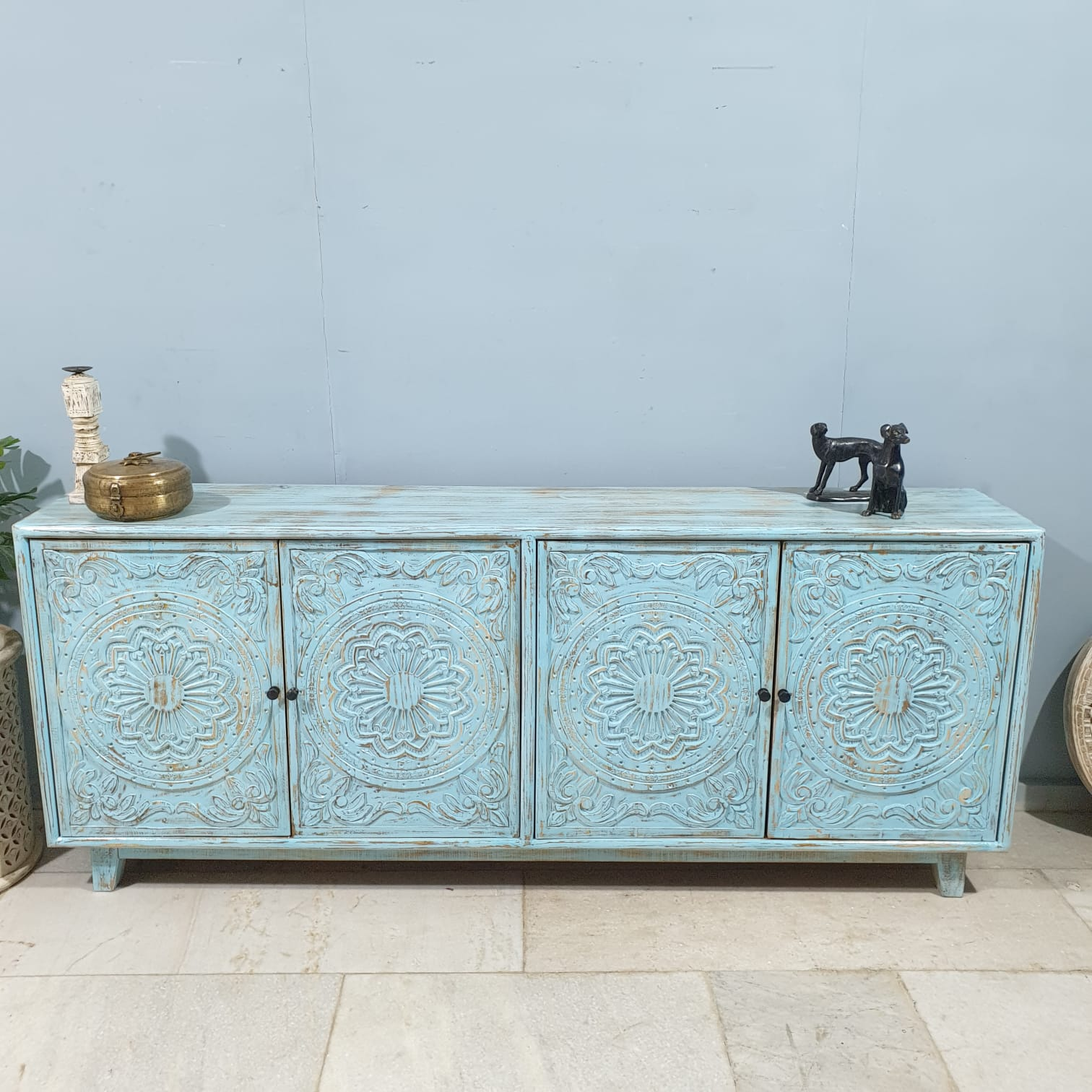Hand Carved Solid Wood 4 Doors Sideboard Buffet C63