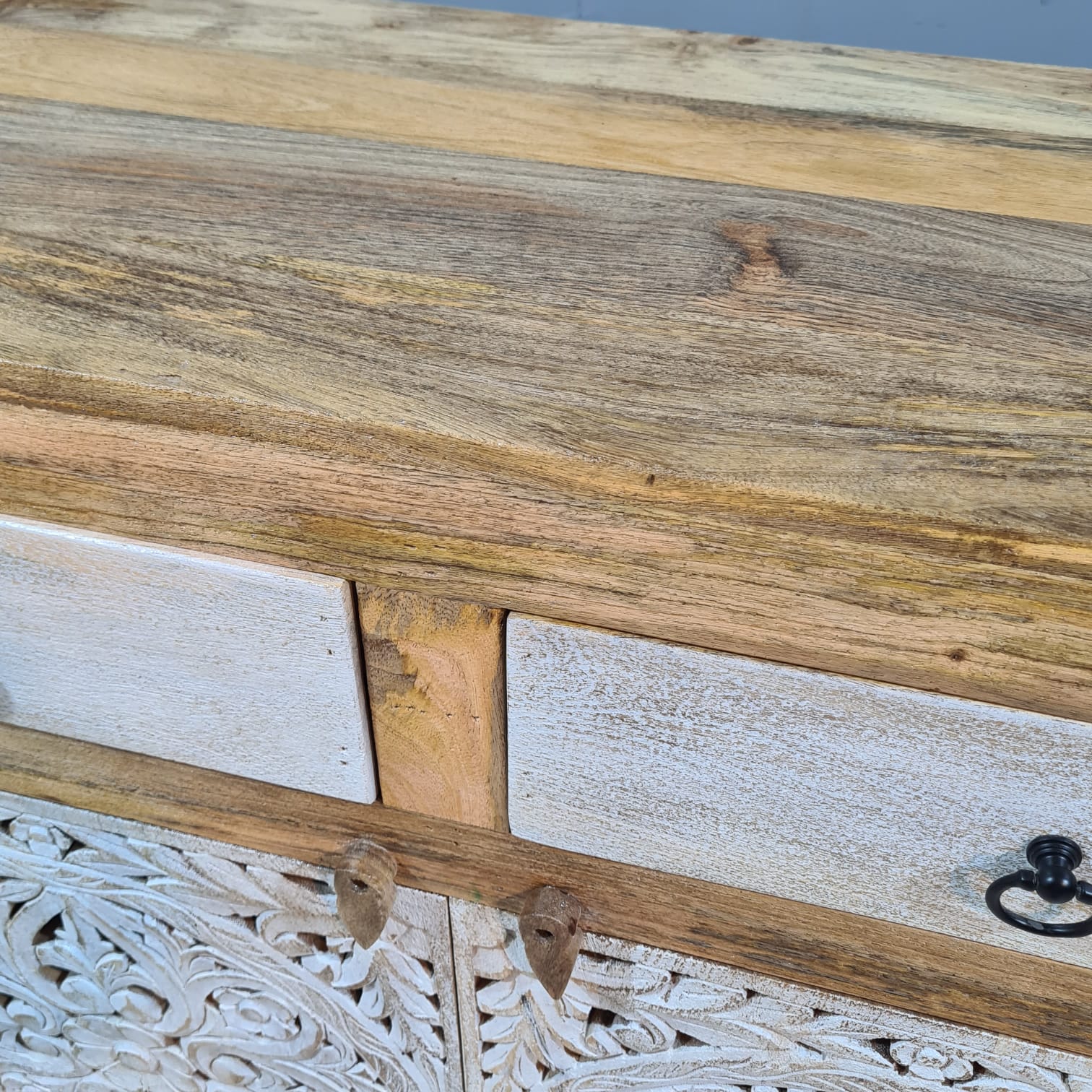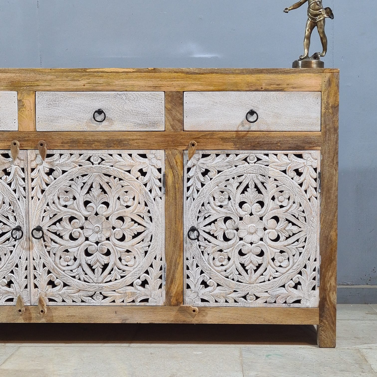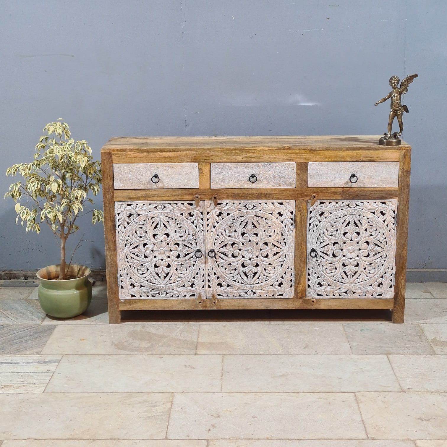 Hand Carved Solid Wood Sideboard White 150X40X90 cm