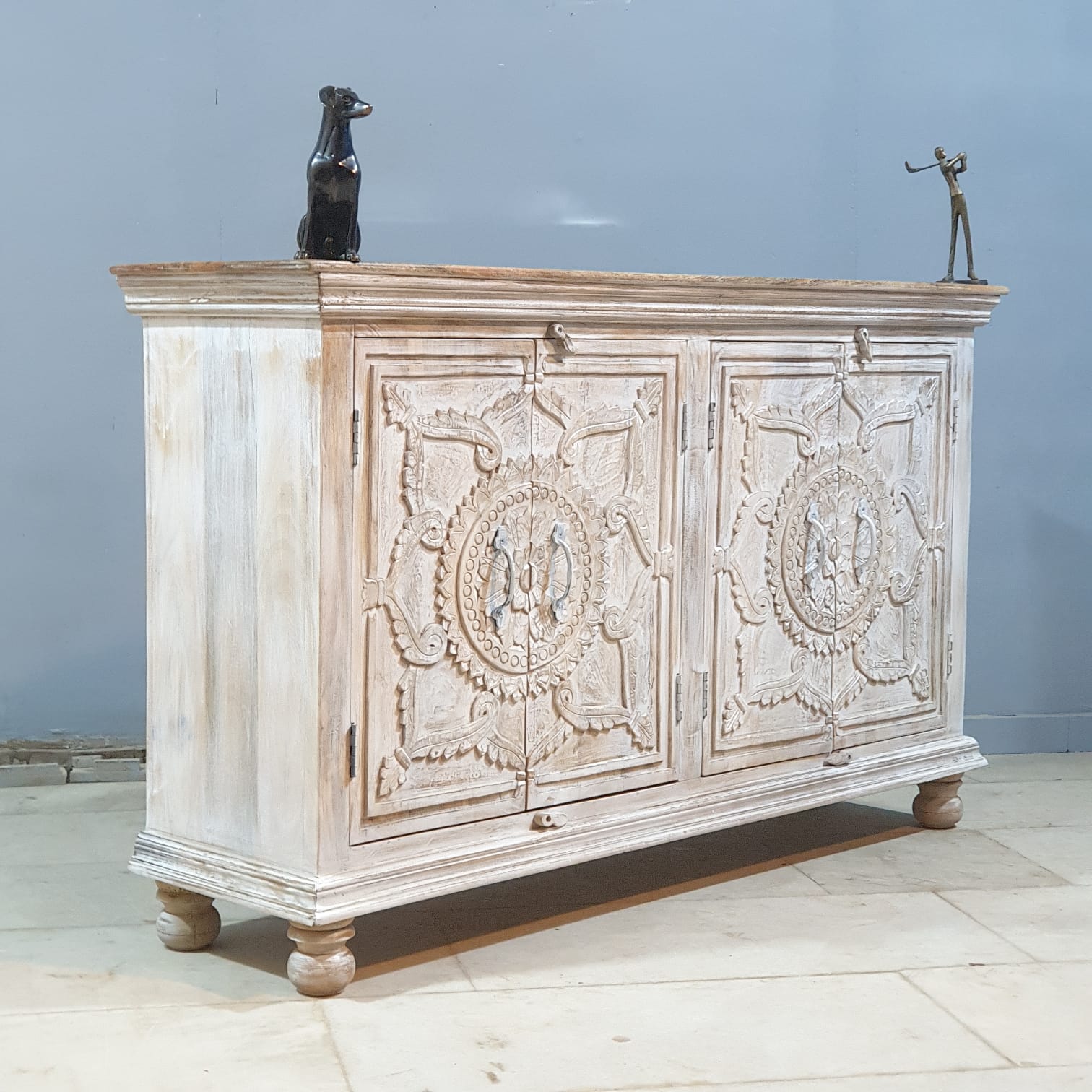 Hand Carved Solid Wood Sideboard White 150X40X90 cm