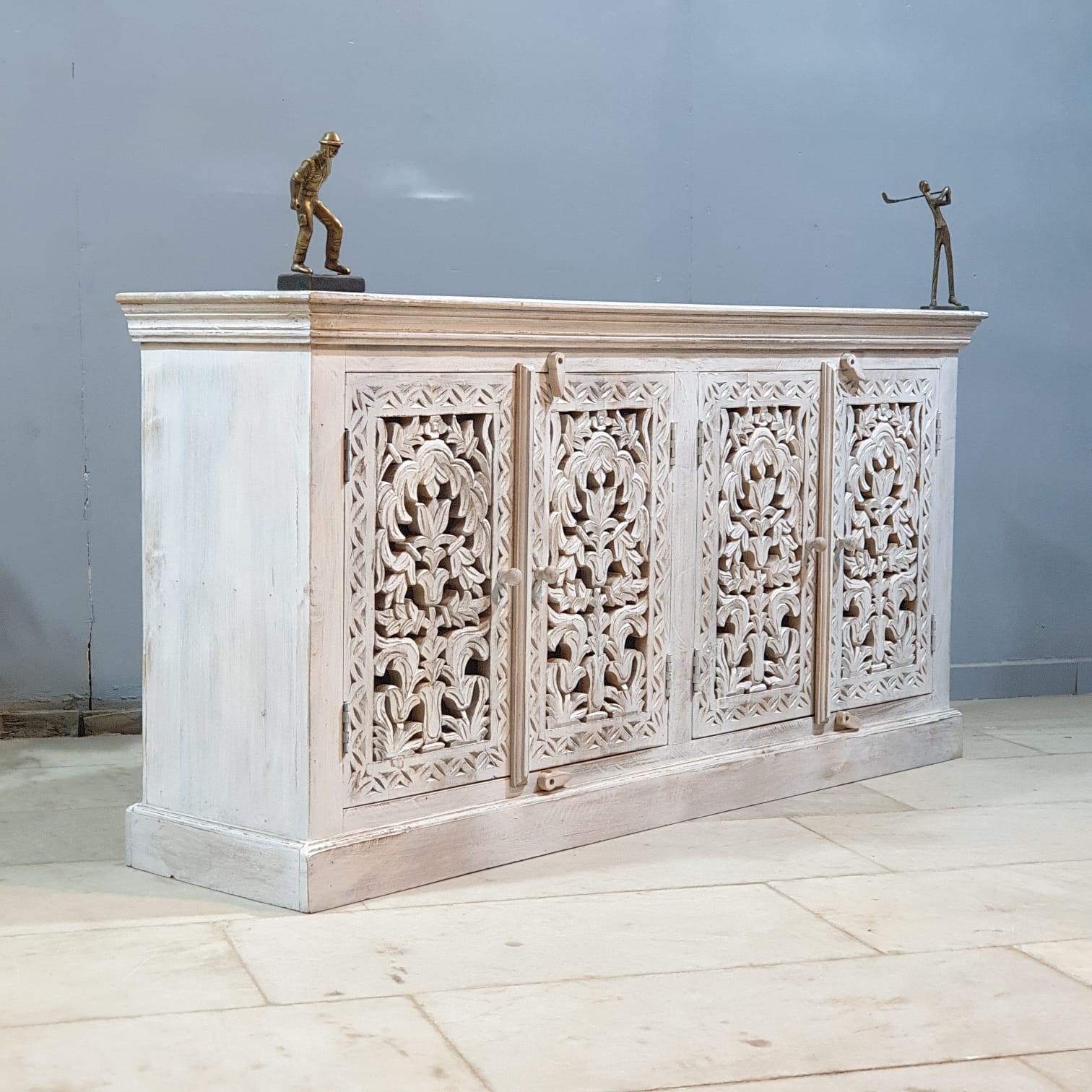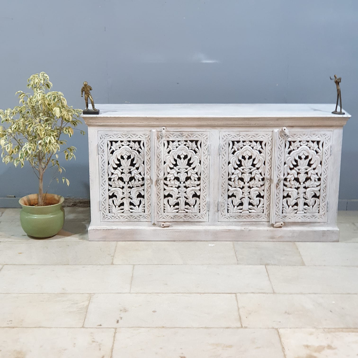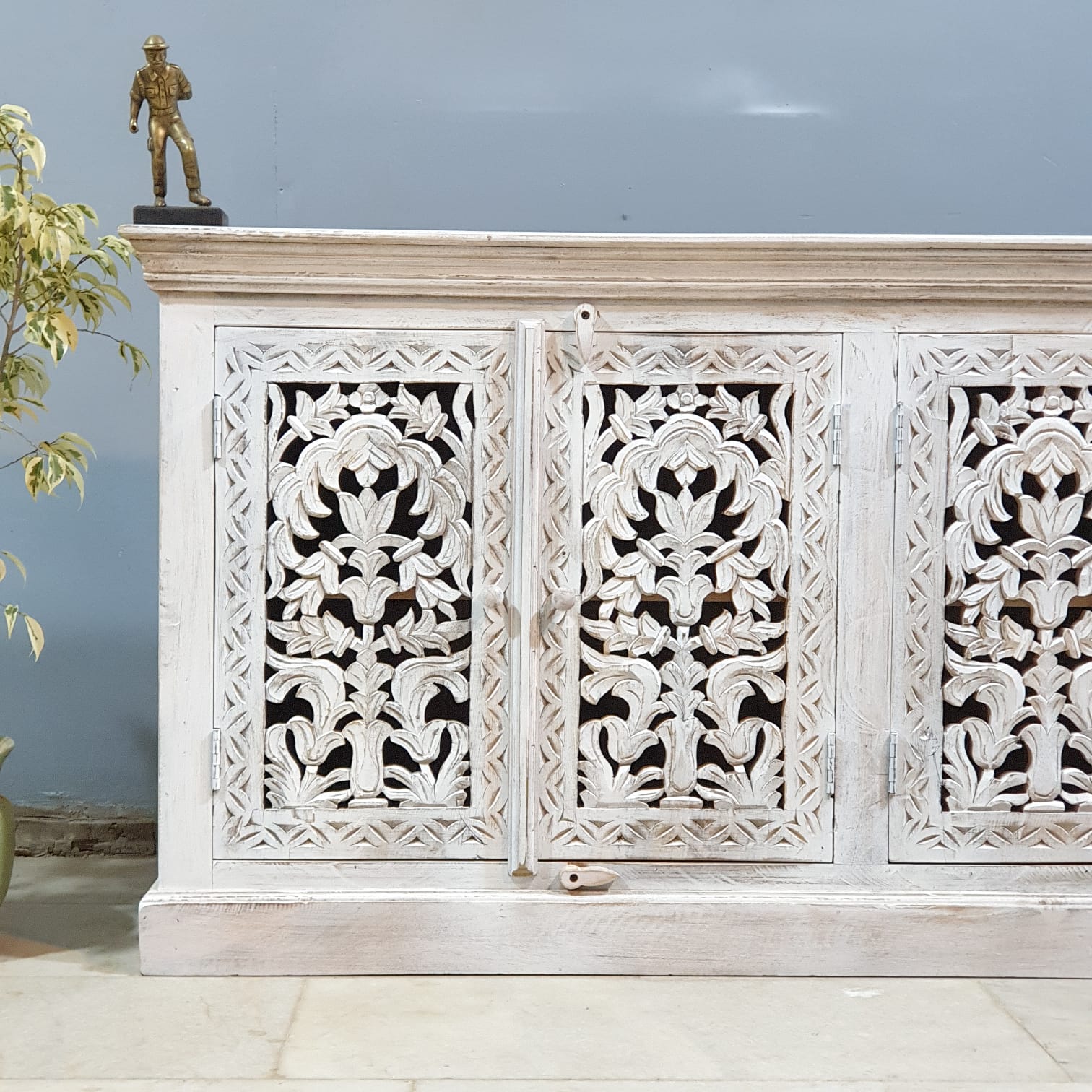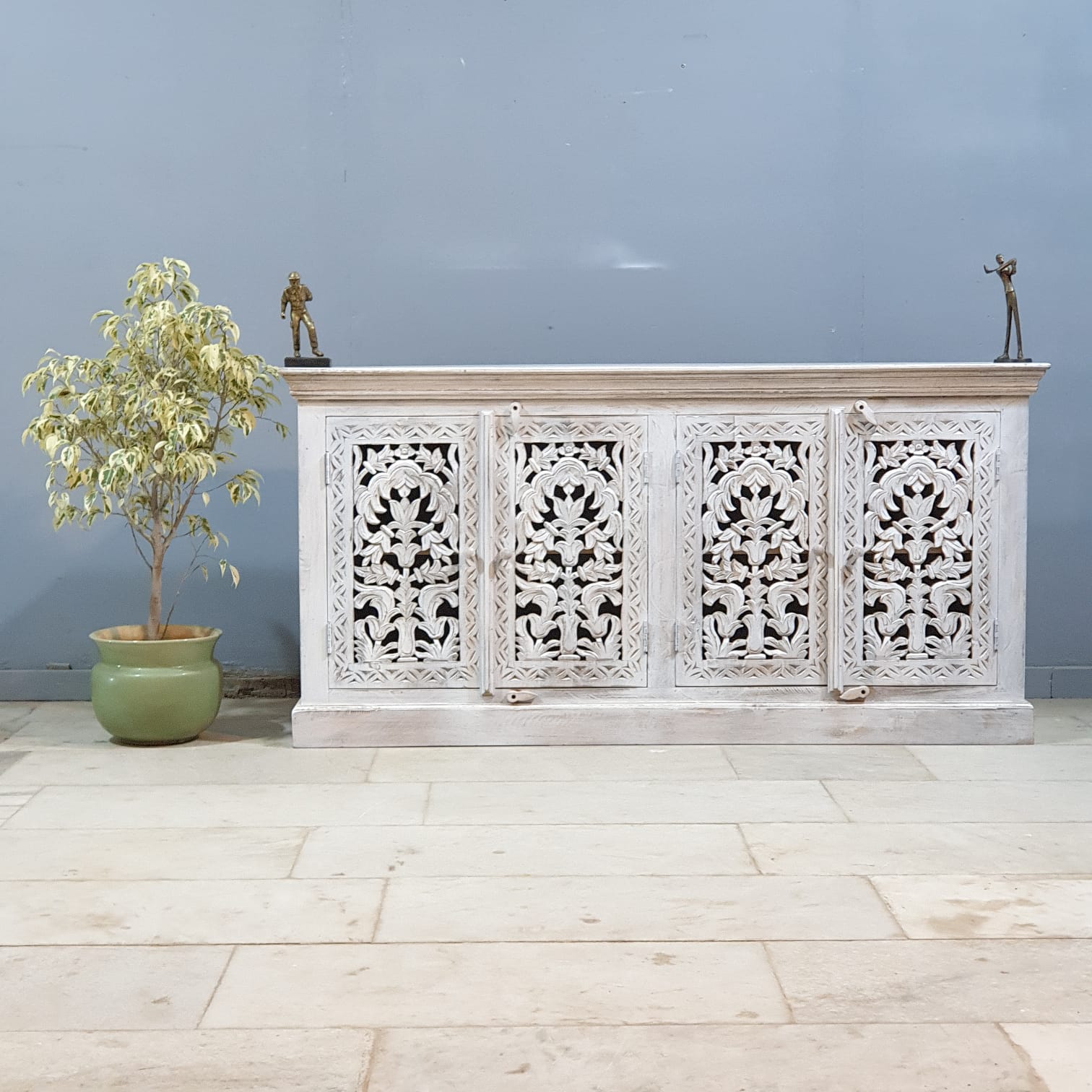 Hand Carved Solid Wood Sideboard White 160X40X80 cm