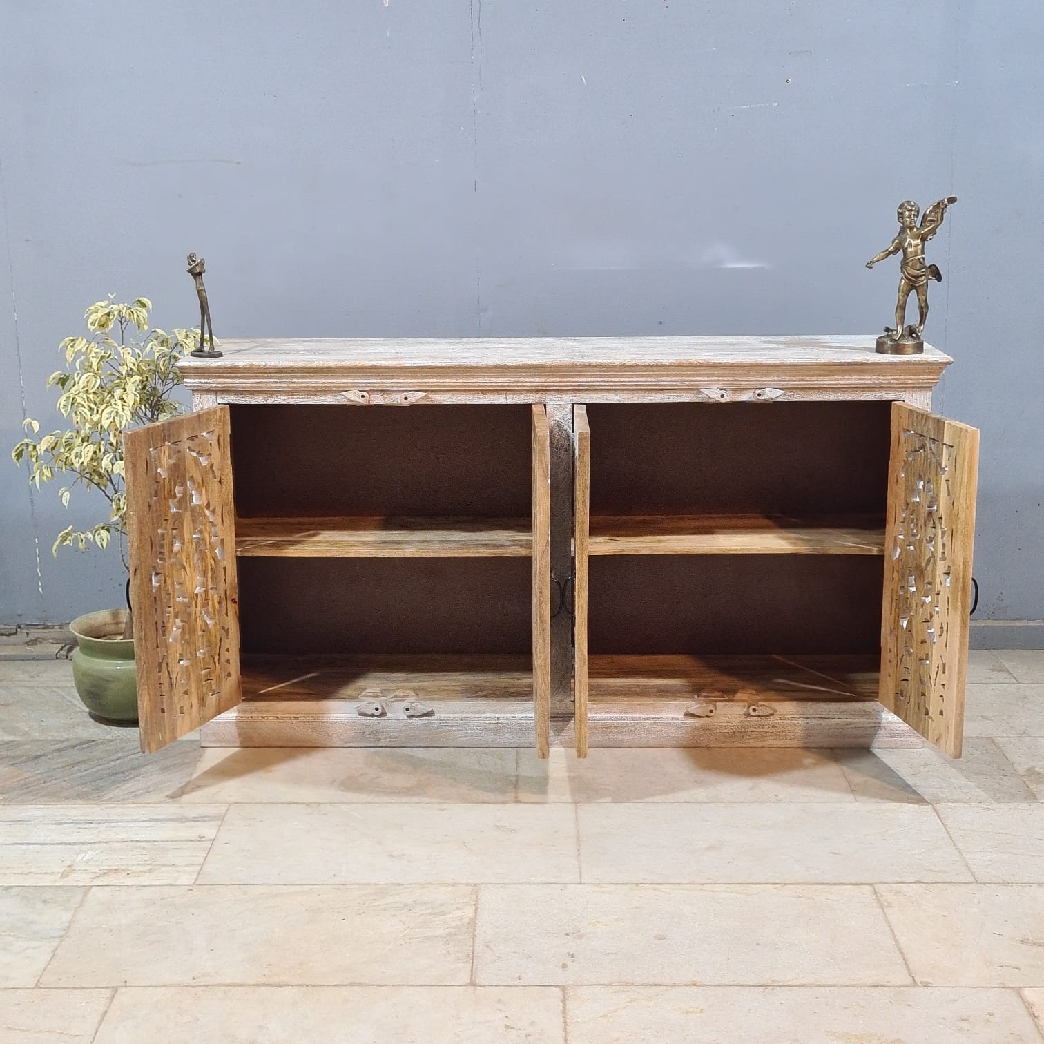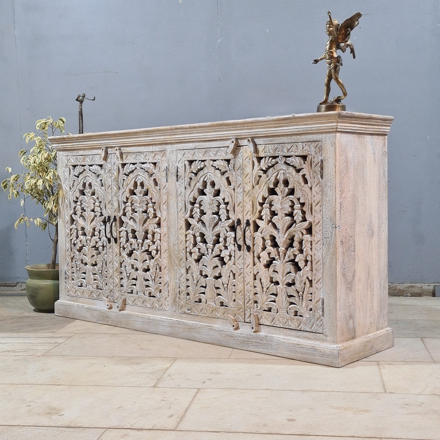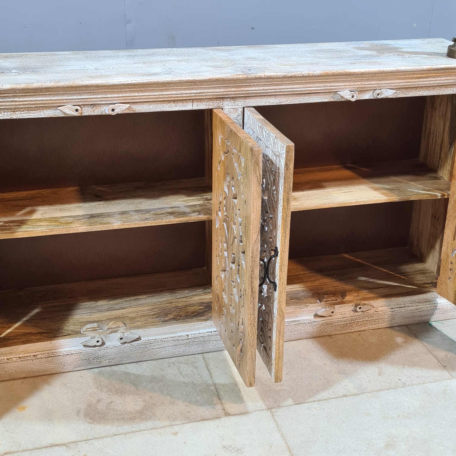Hand Carved Solid Wood Sideboard White 170X40X90 cm
