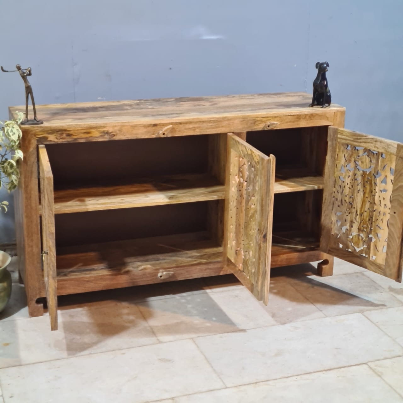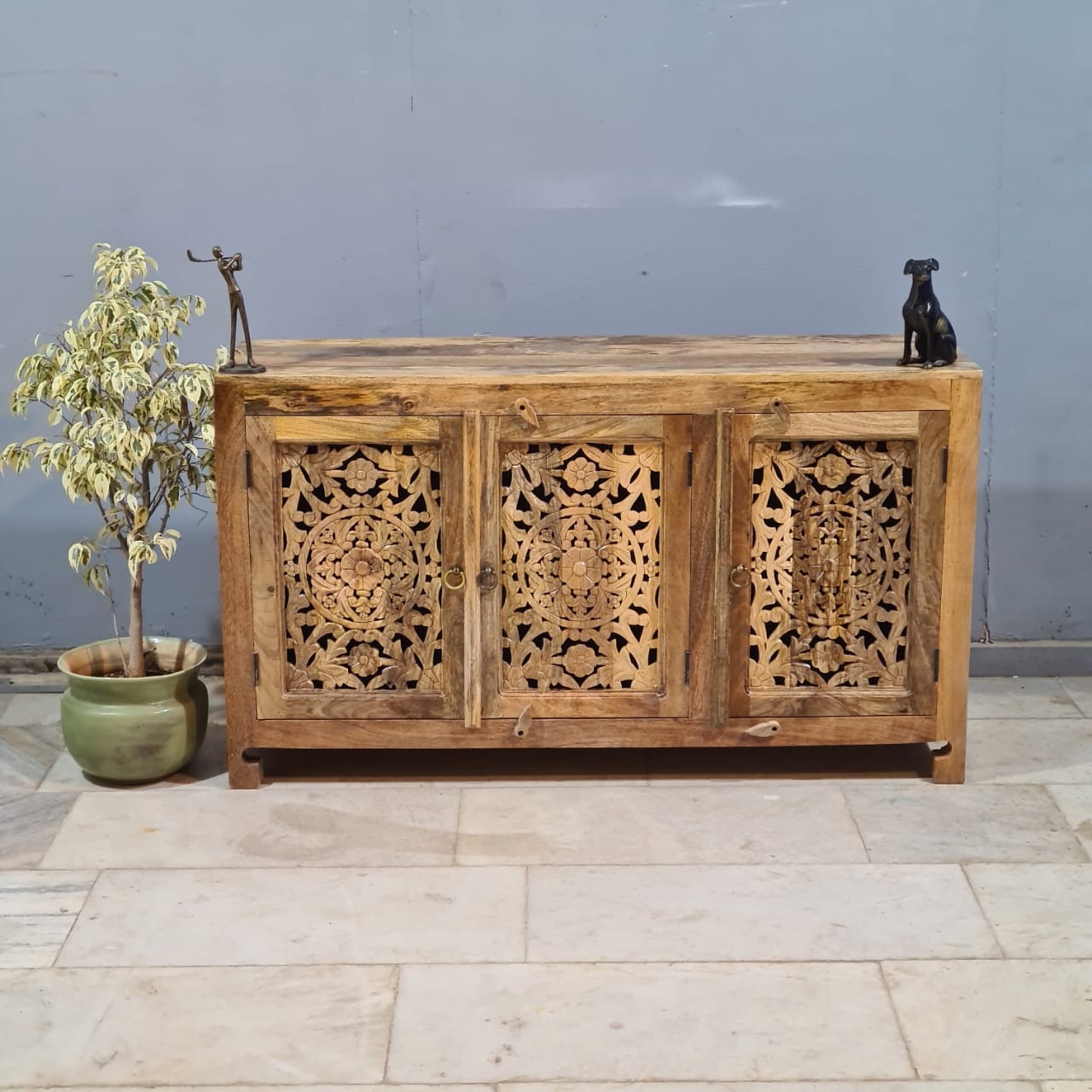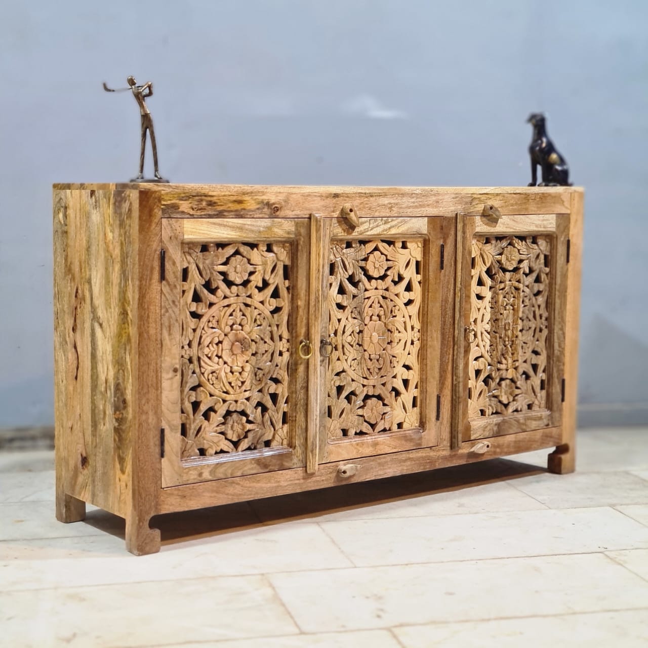 Hand Carved Solid Wood Sideboard Natural 140X40X80 cm