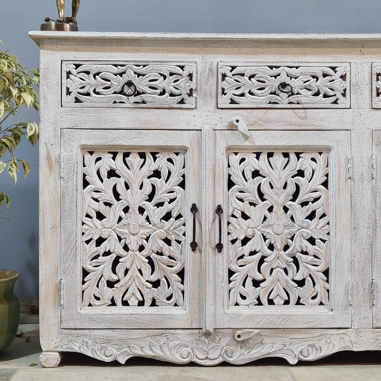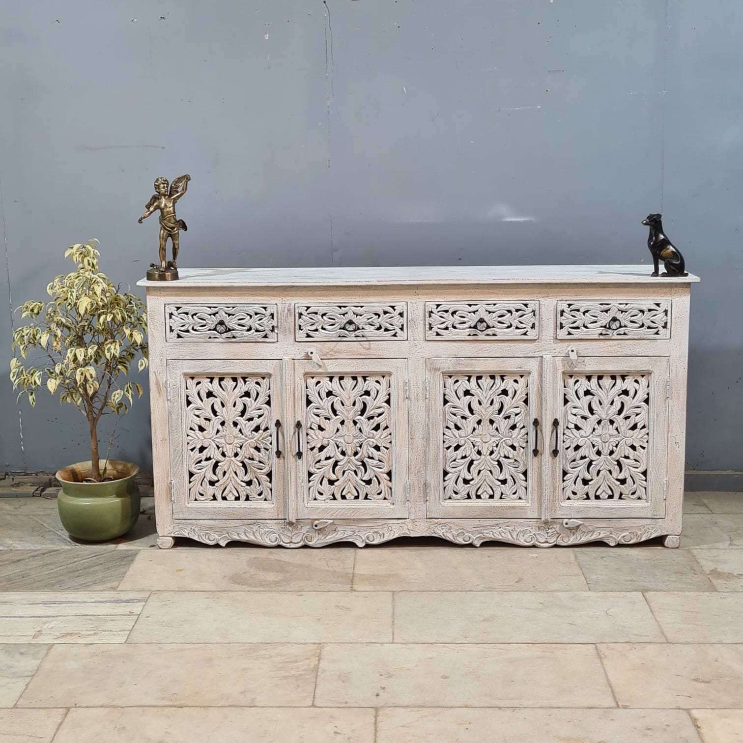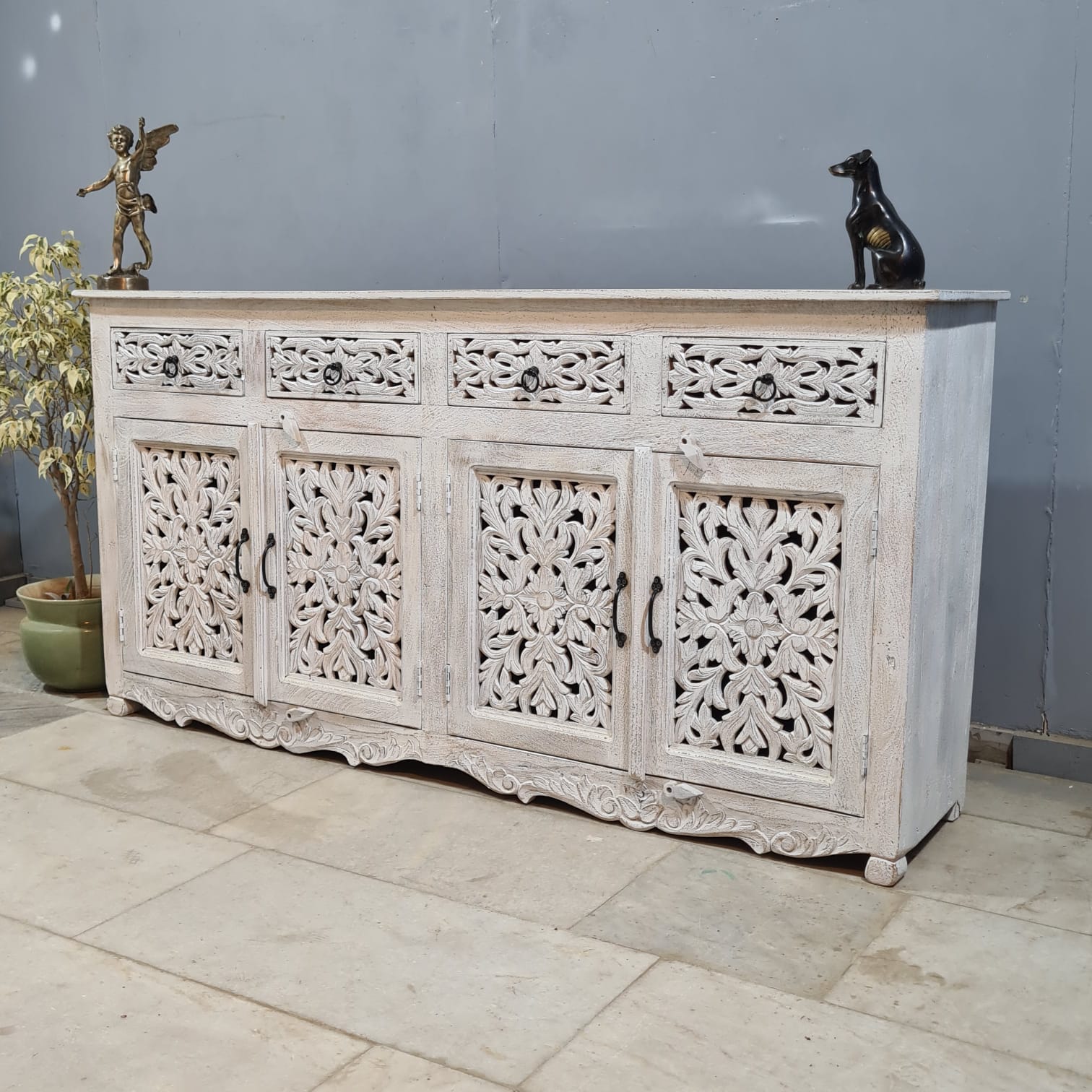Hand Carved Solid Wood Sideboard White 180X40X90 cm
