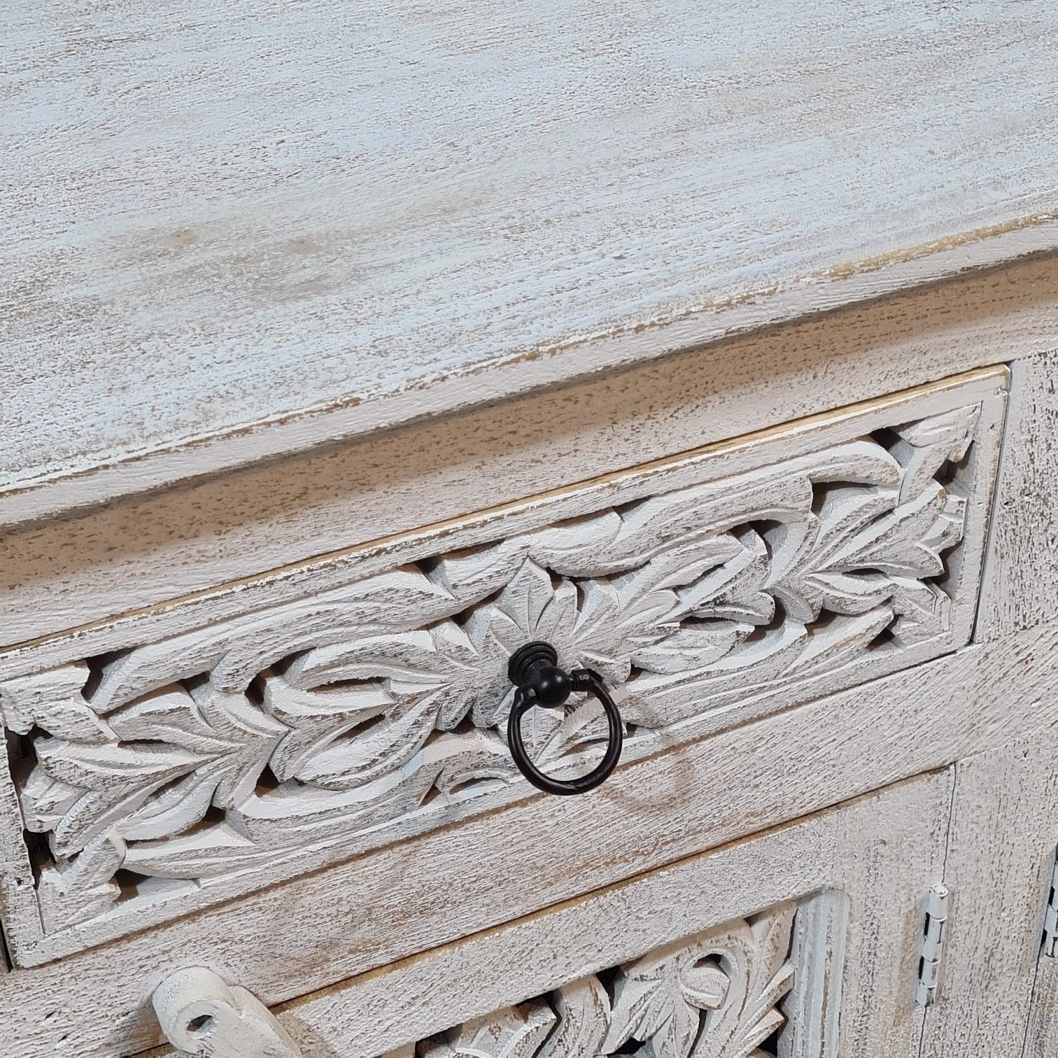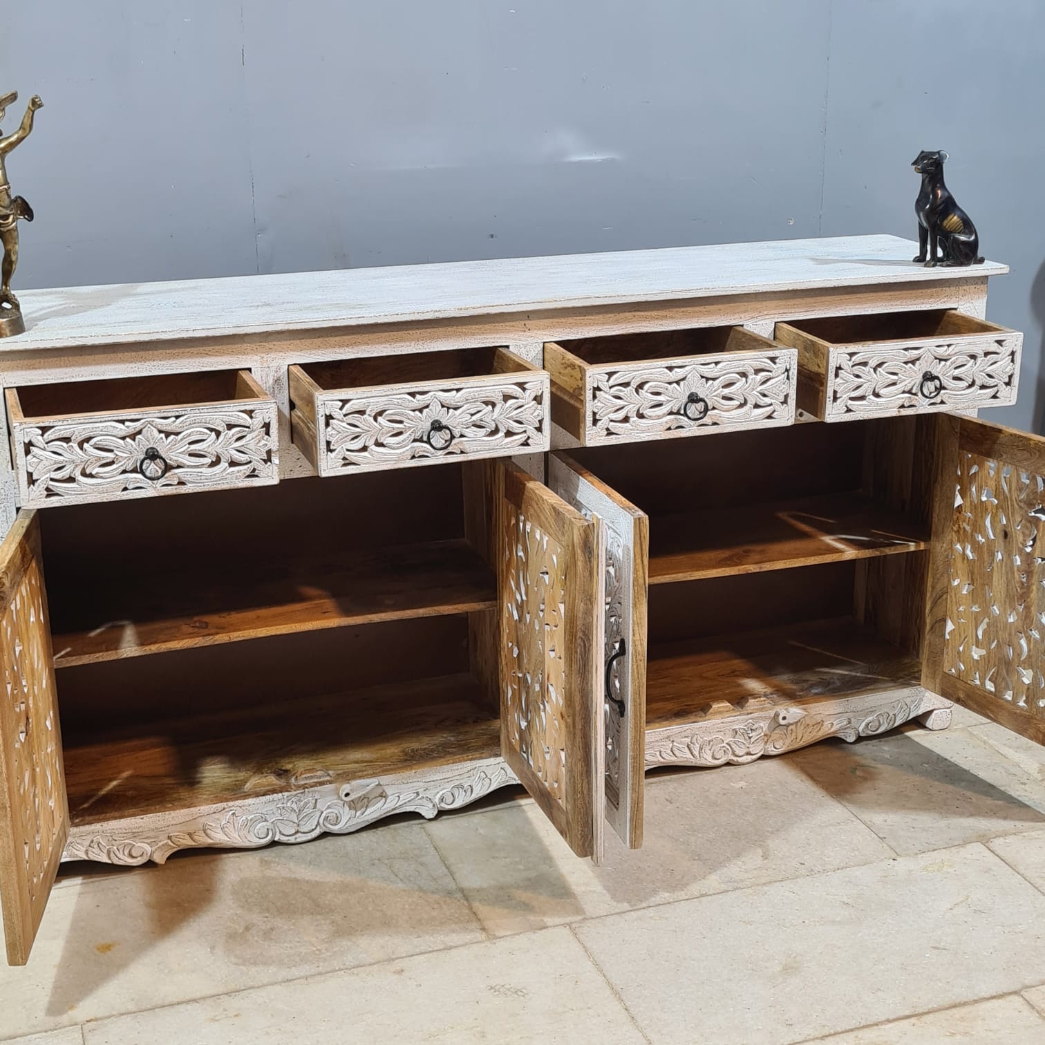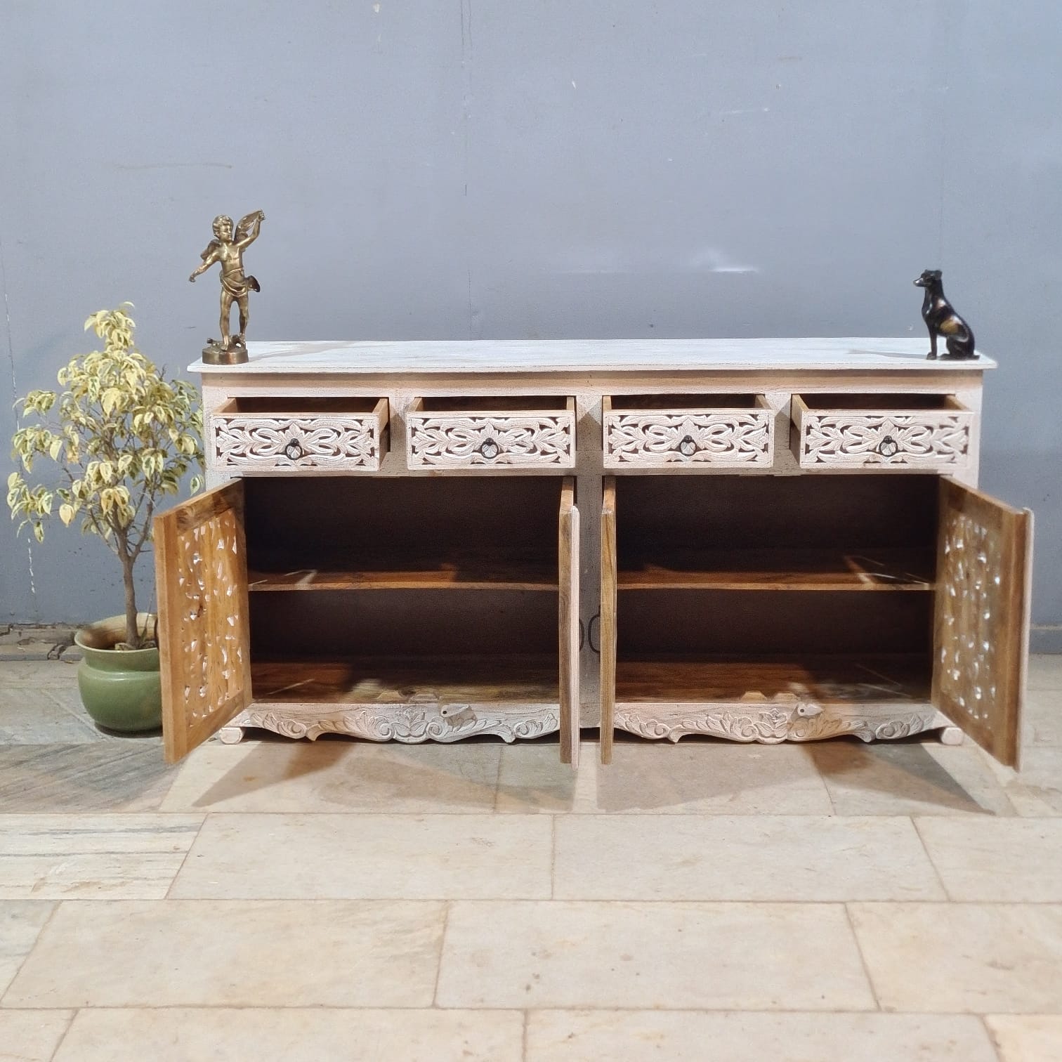 Hand Carved Solid Wood Sideboard White 180X40X90 cm
