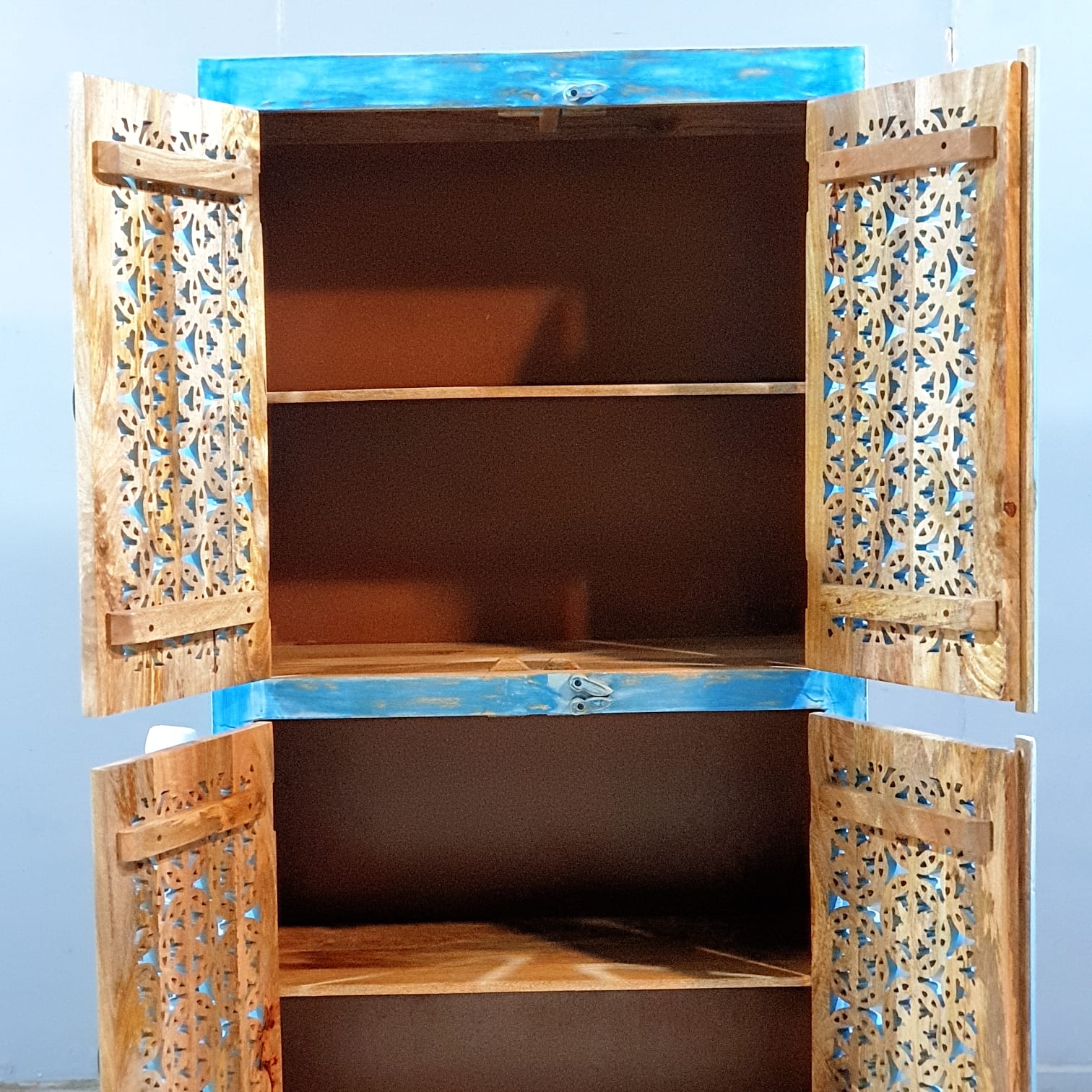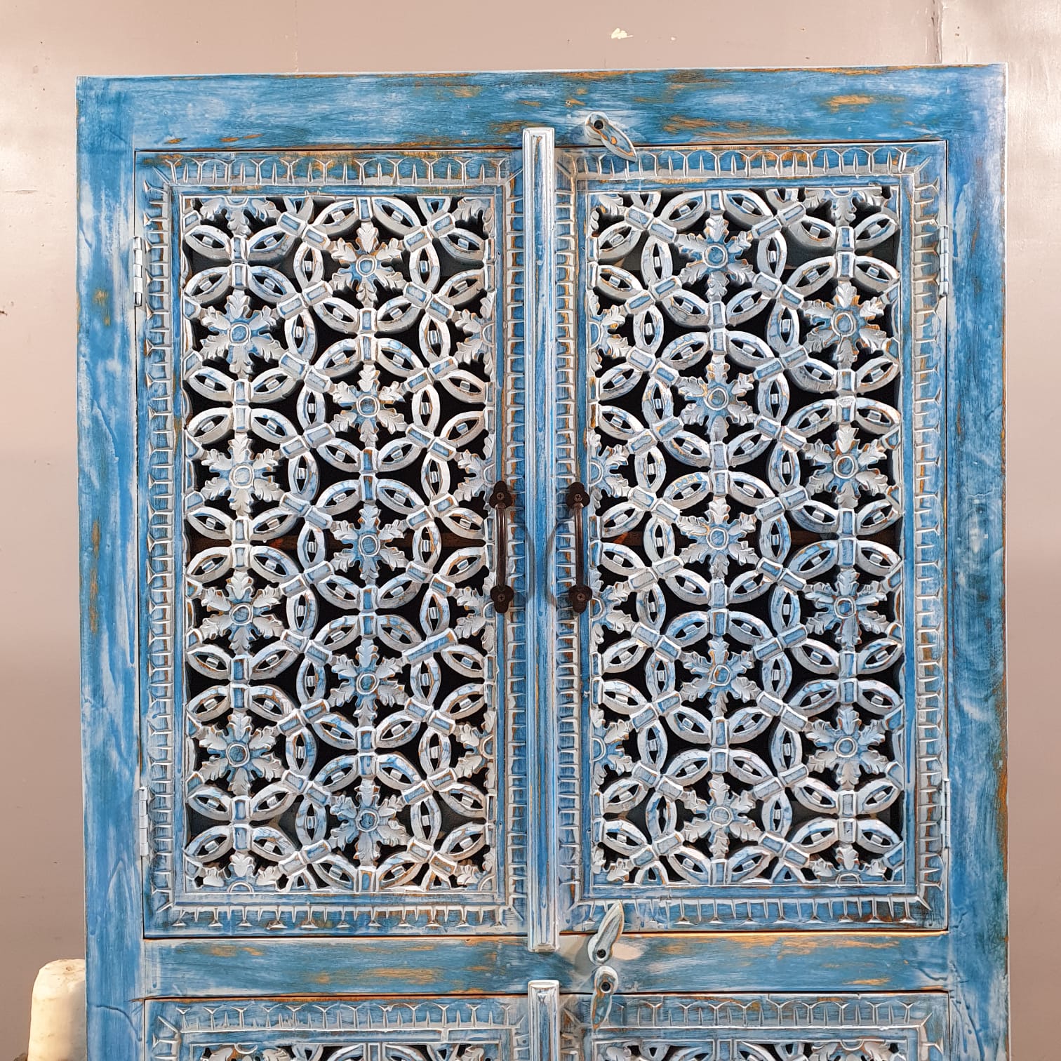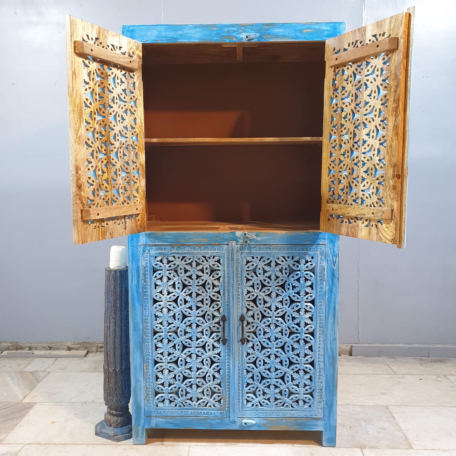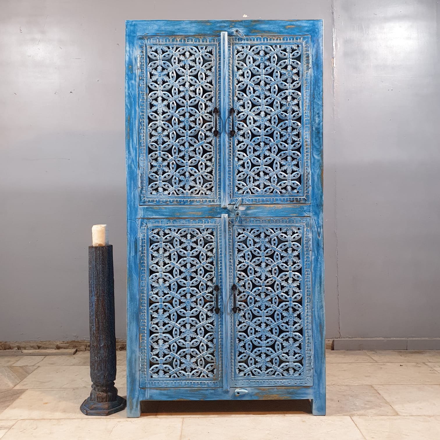 Hand Carved Solid Wood Wardrobe Cabinet 90x40x180 cm Blue