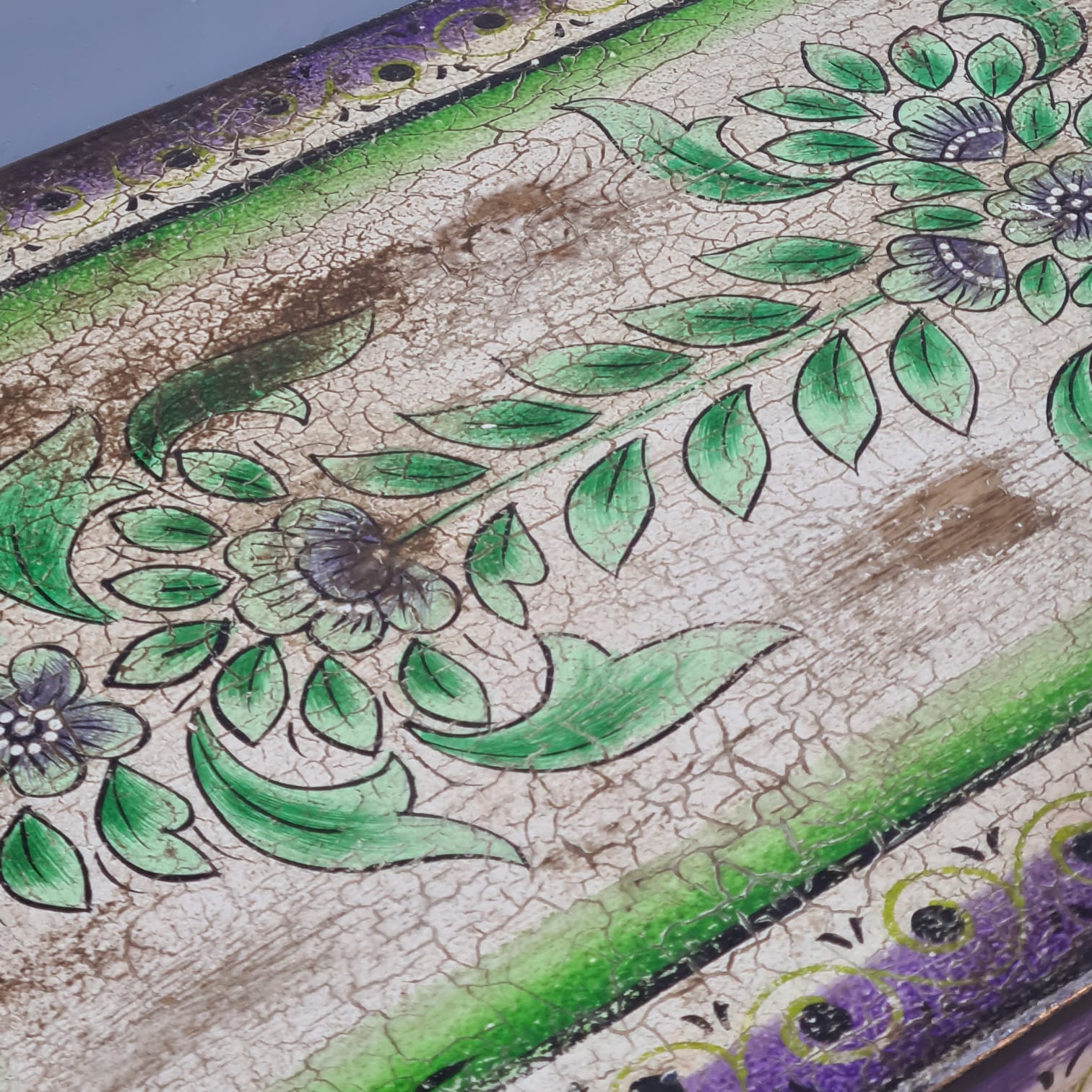 Furniture having intricate hand-painted details are individual unique pieces and may have slight distinctions and variance between the picture and actual product.