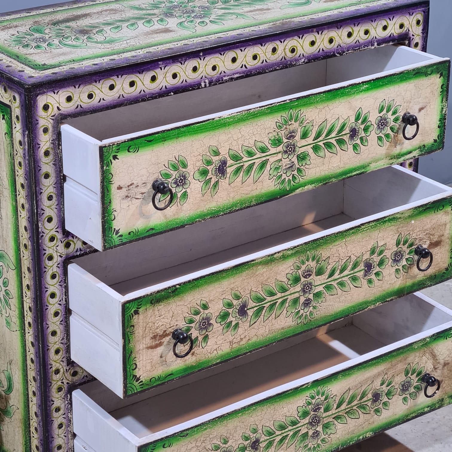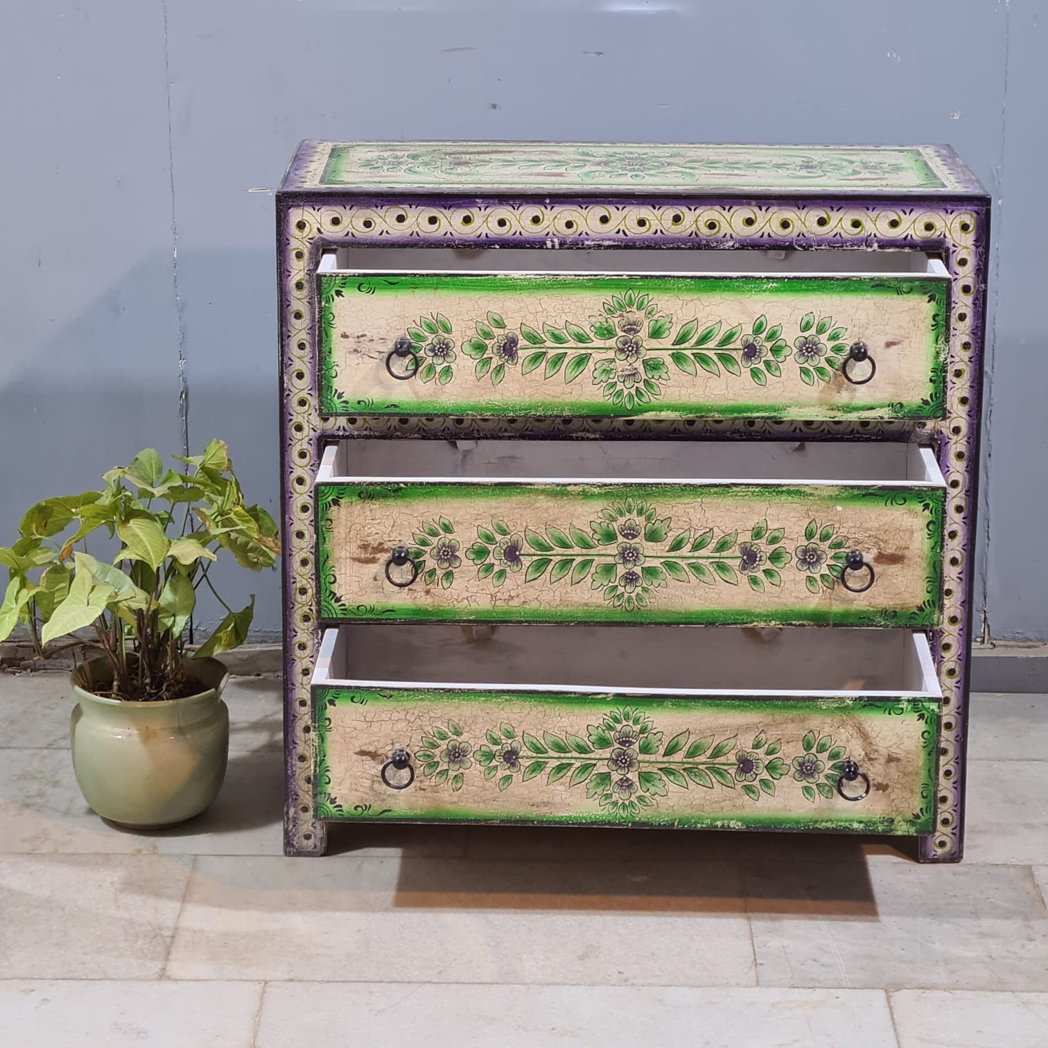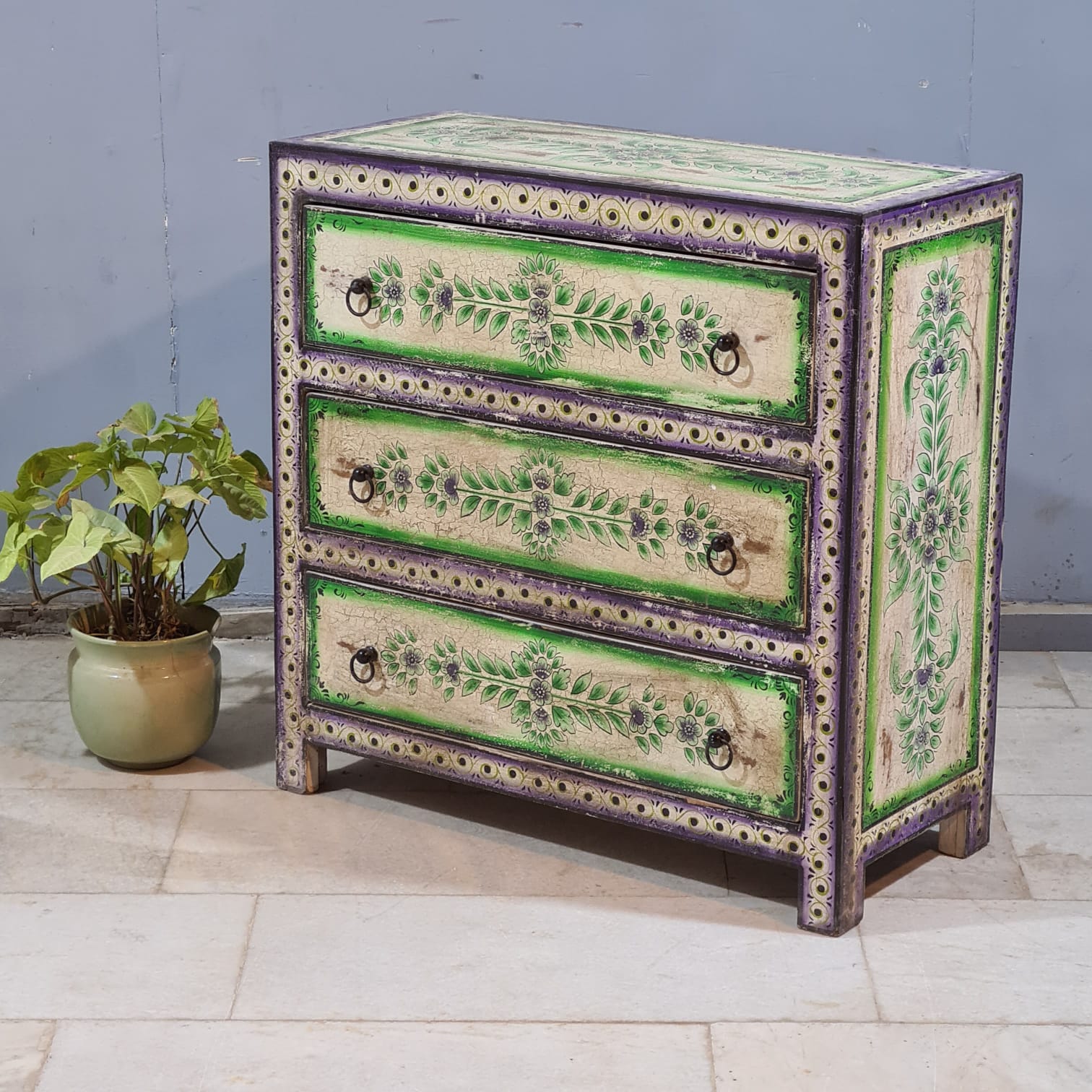 Hand Painted Solid Wood Chest of Drawer 90X40X90 cm