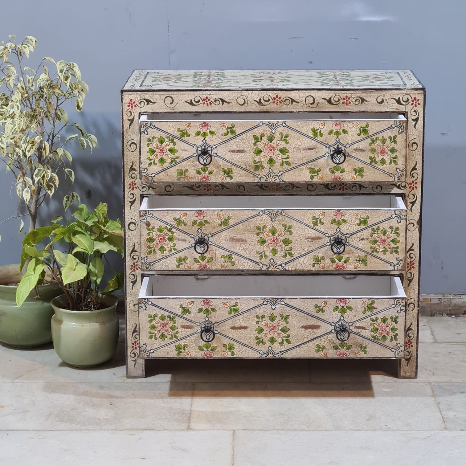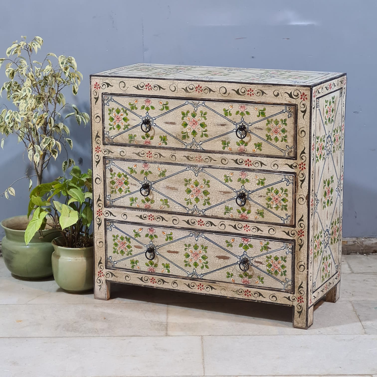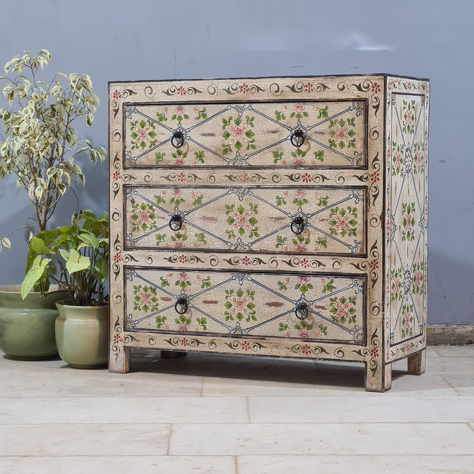 Hand Painted Solid Wood Chest of Drawer 90X40X90 cm