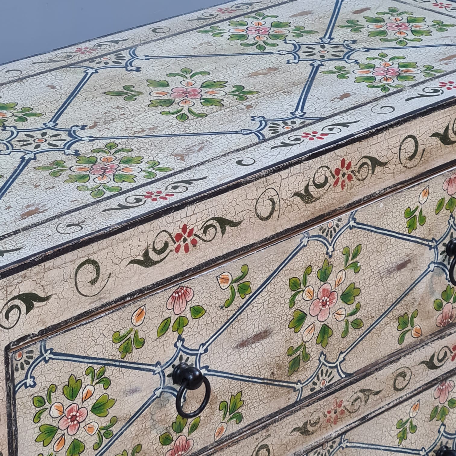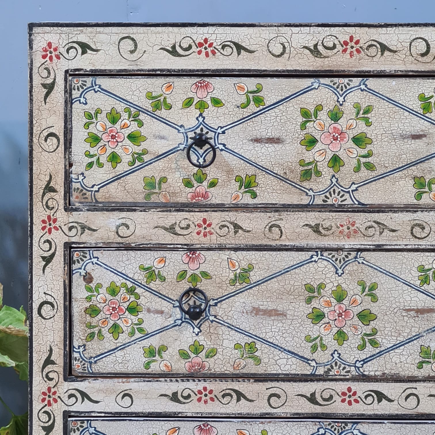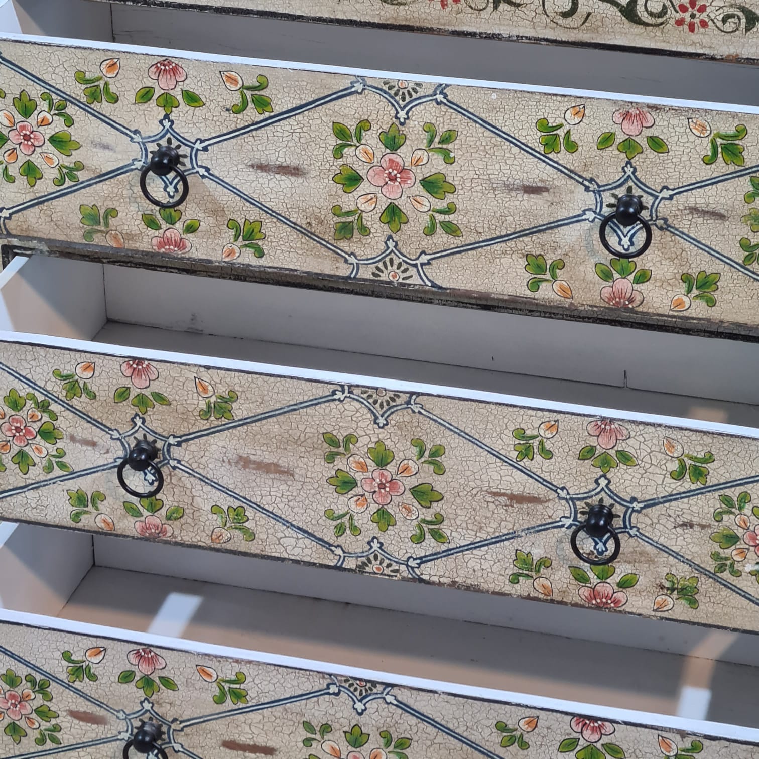Hand Painted Solid Wood Chest of Drawer 90X40X90 cm