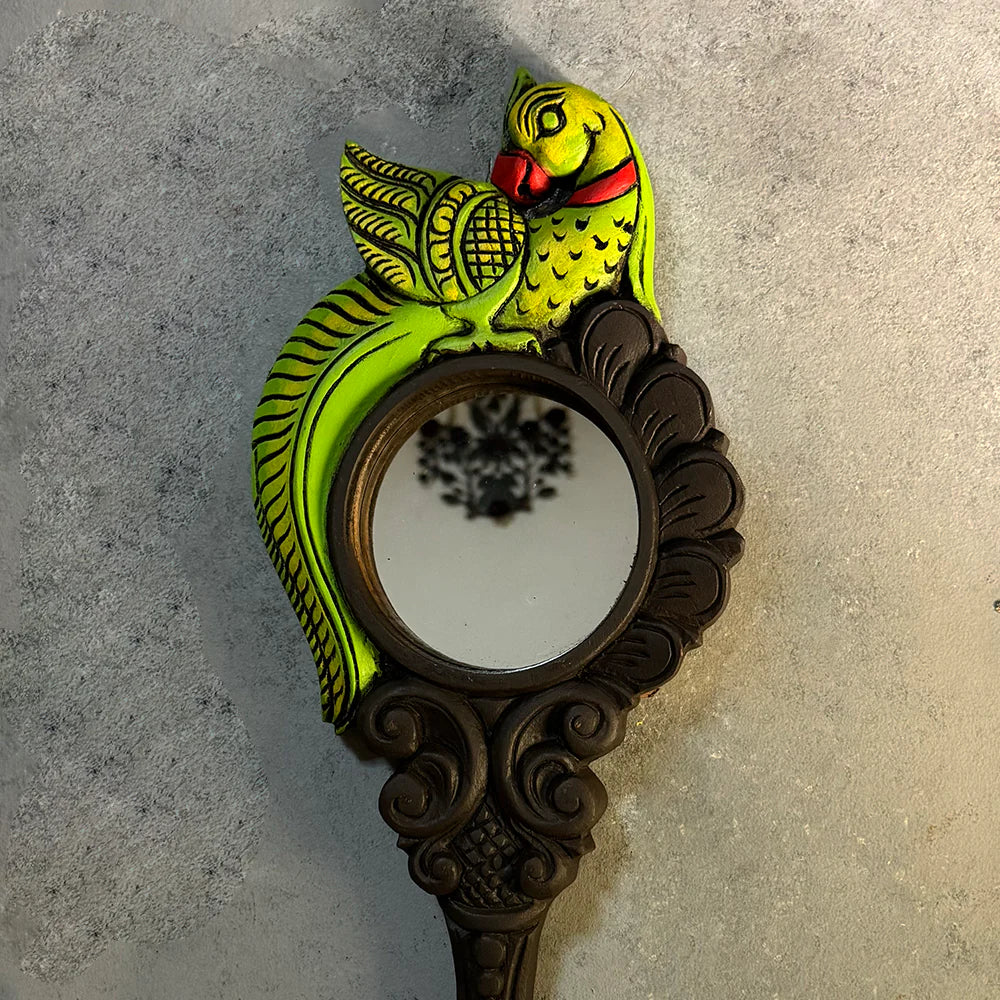 Hand Painted Solid Wooden Parrot Wall Mirror 84
