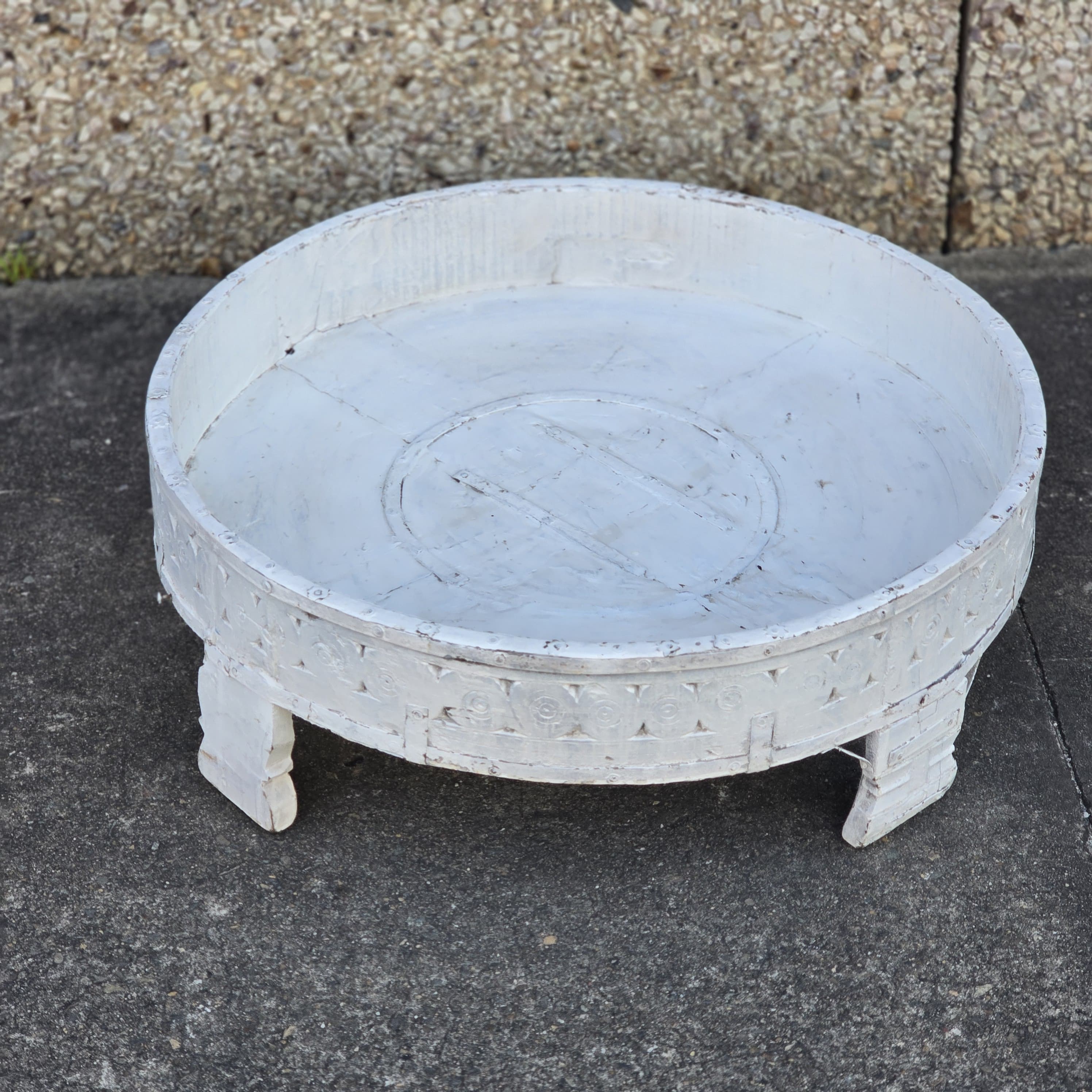 Handcrafted Carved Indian Furniture Solid Wood Chakki Coffee Table 76x76x25cm