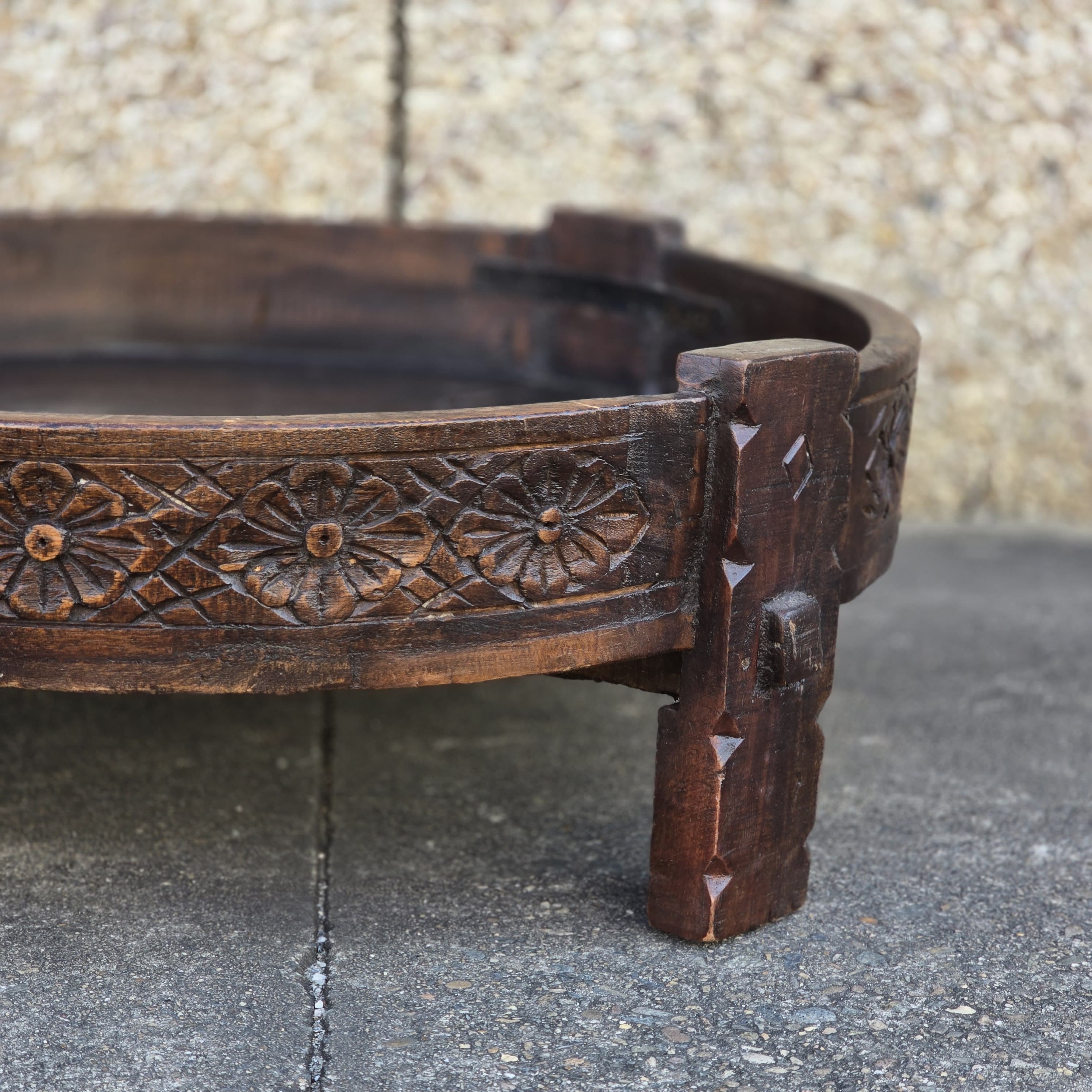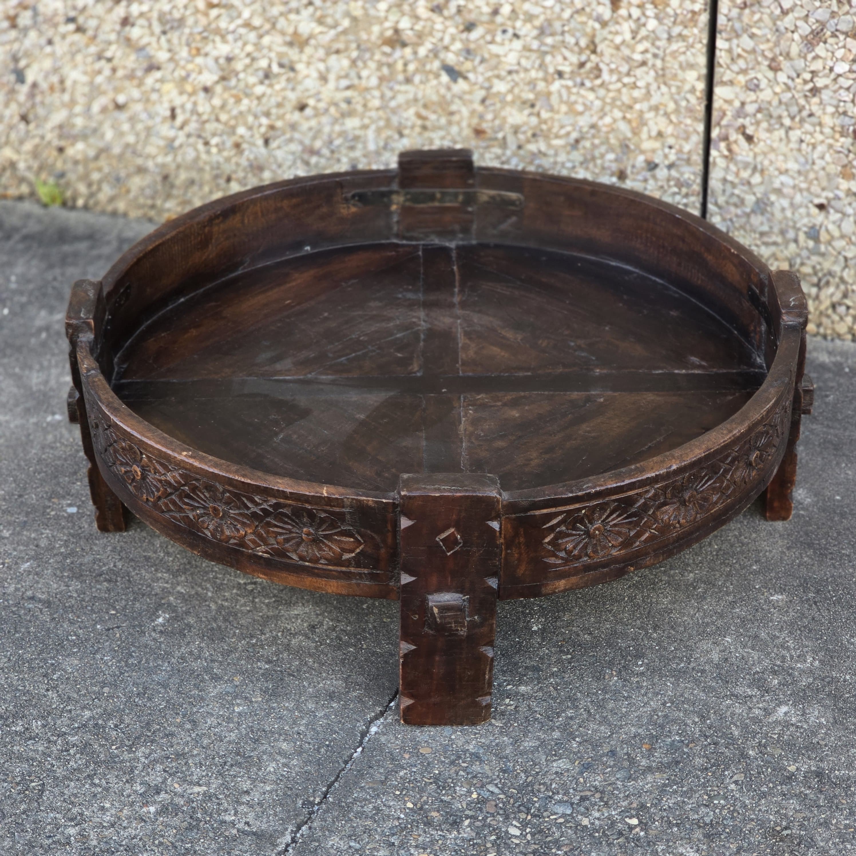 Handcrafted Carved Indian Furniture Solid Wood Chakki Grinder Coffee Table 76x76x25cm
