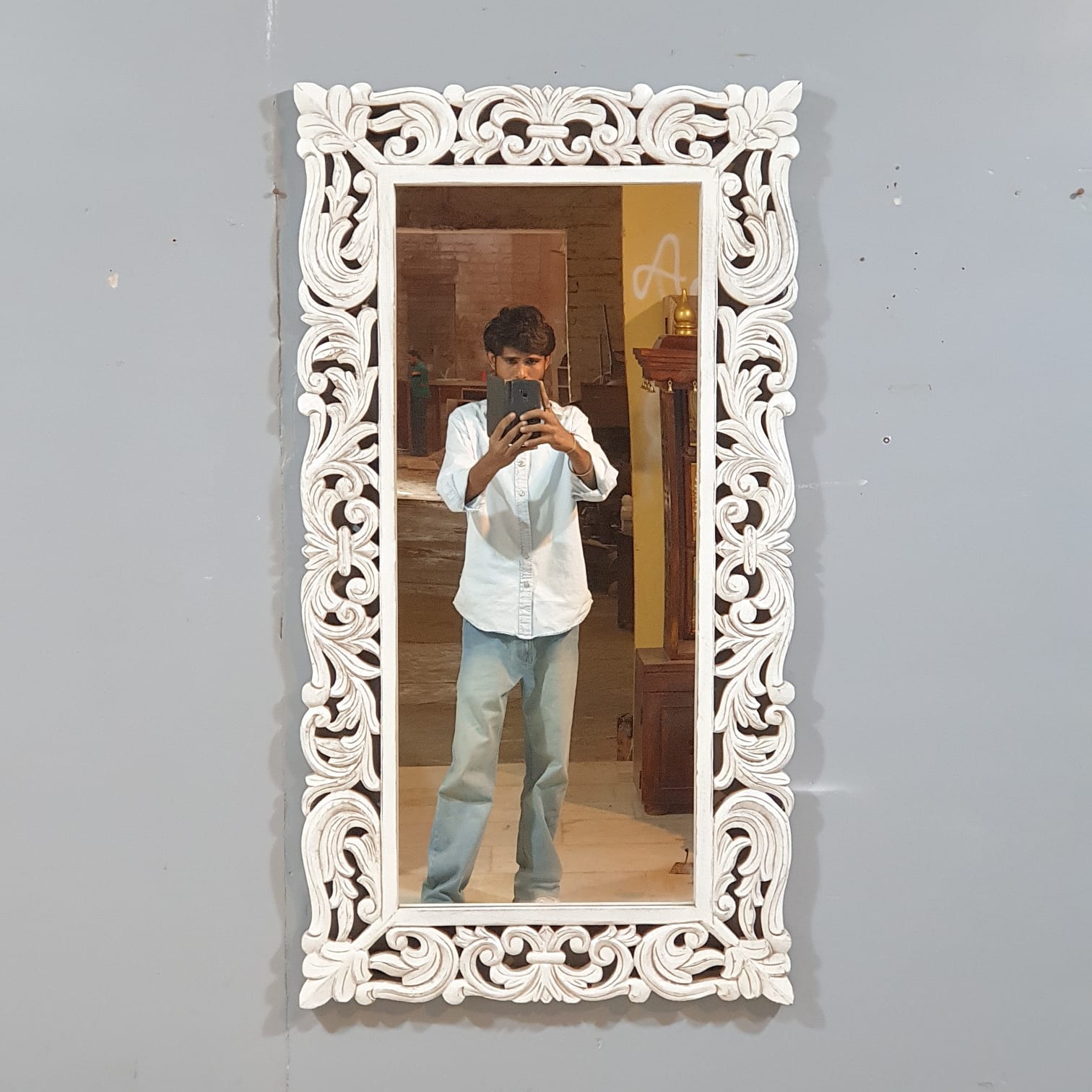 Handcrafted Floral Carved Solid Wood Indian Furniture Mirror Frame 34