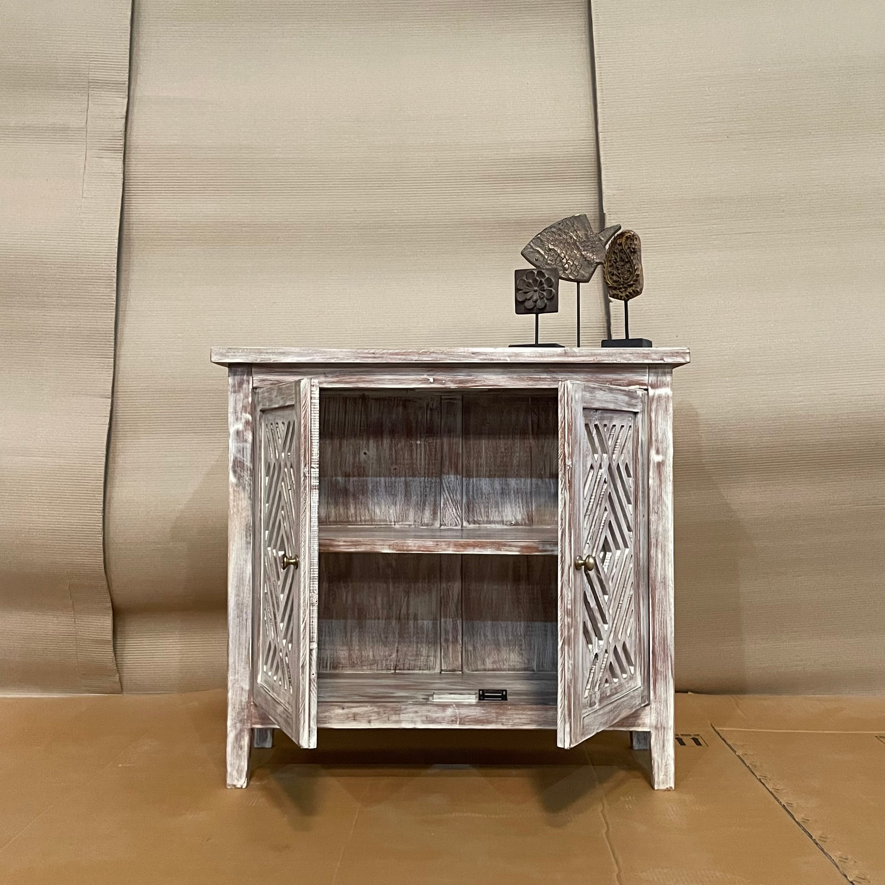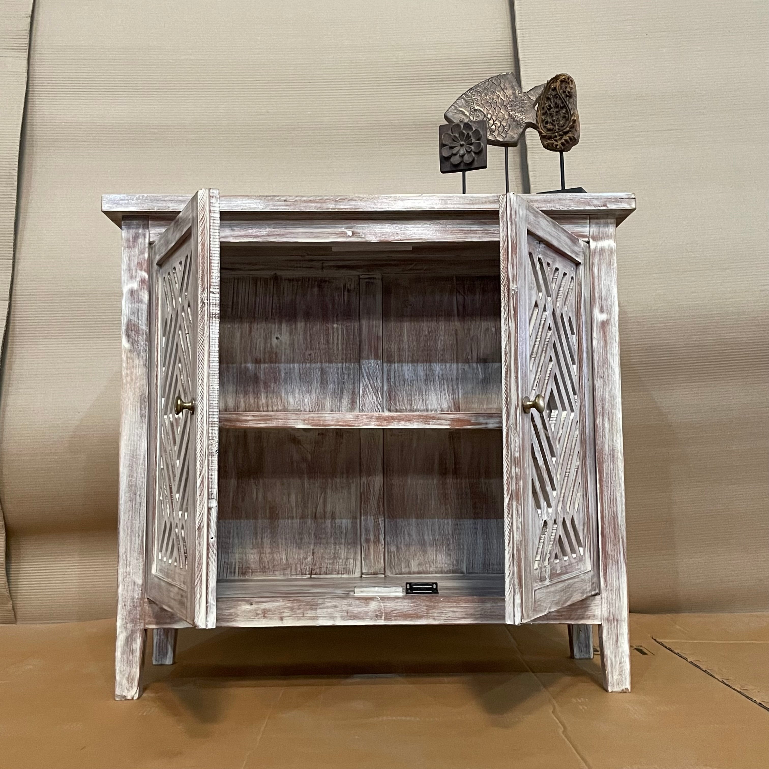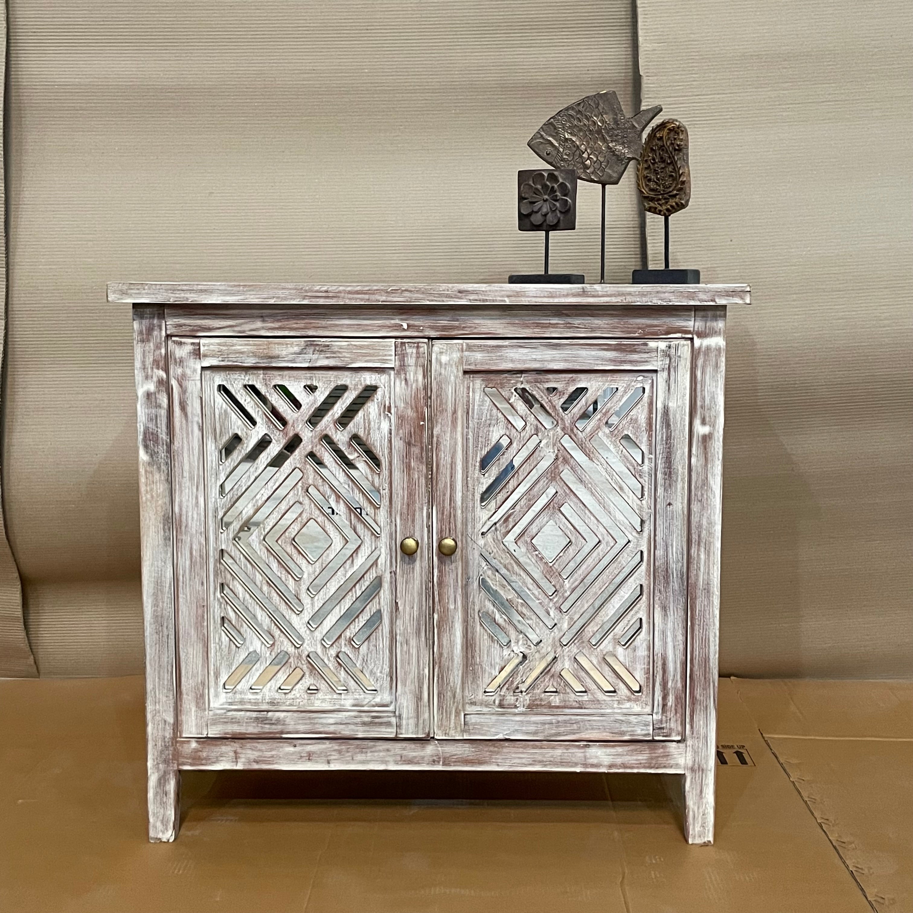 Handcrafted Indian Furniture Carved Solid Hard Wood 2 Mirror Doors Cabinet 01