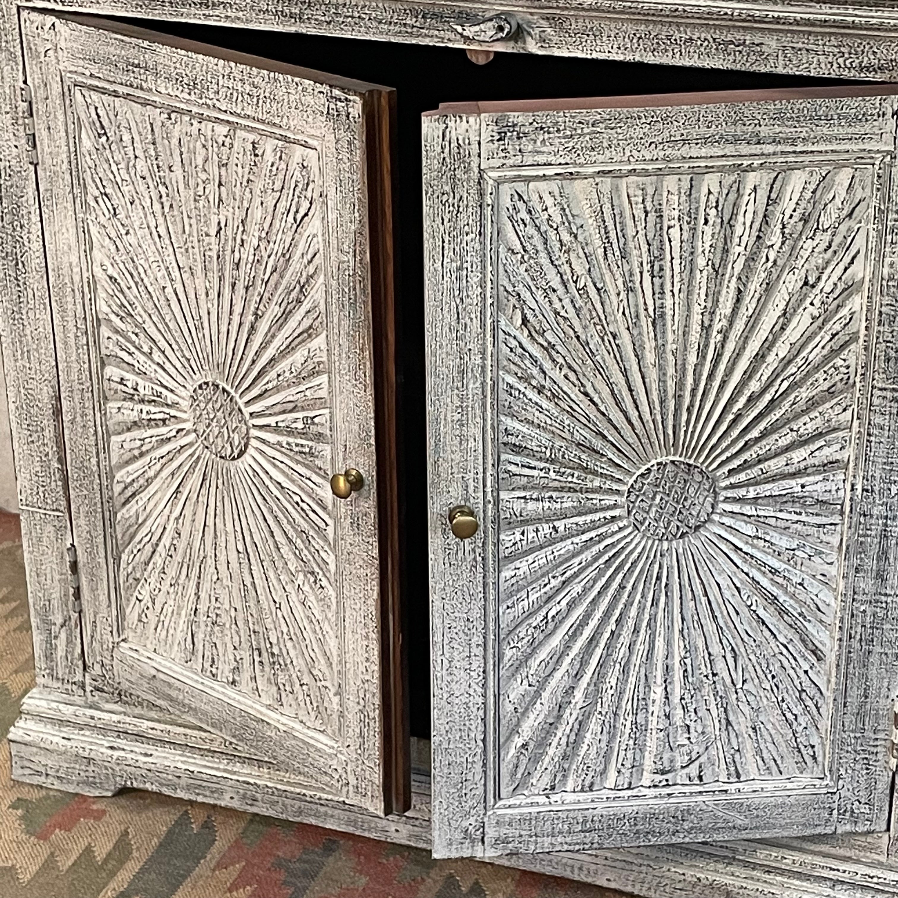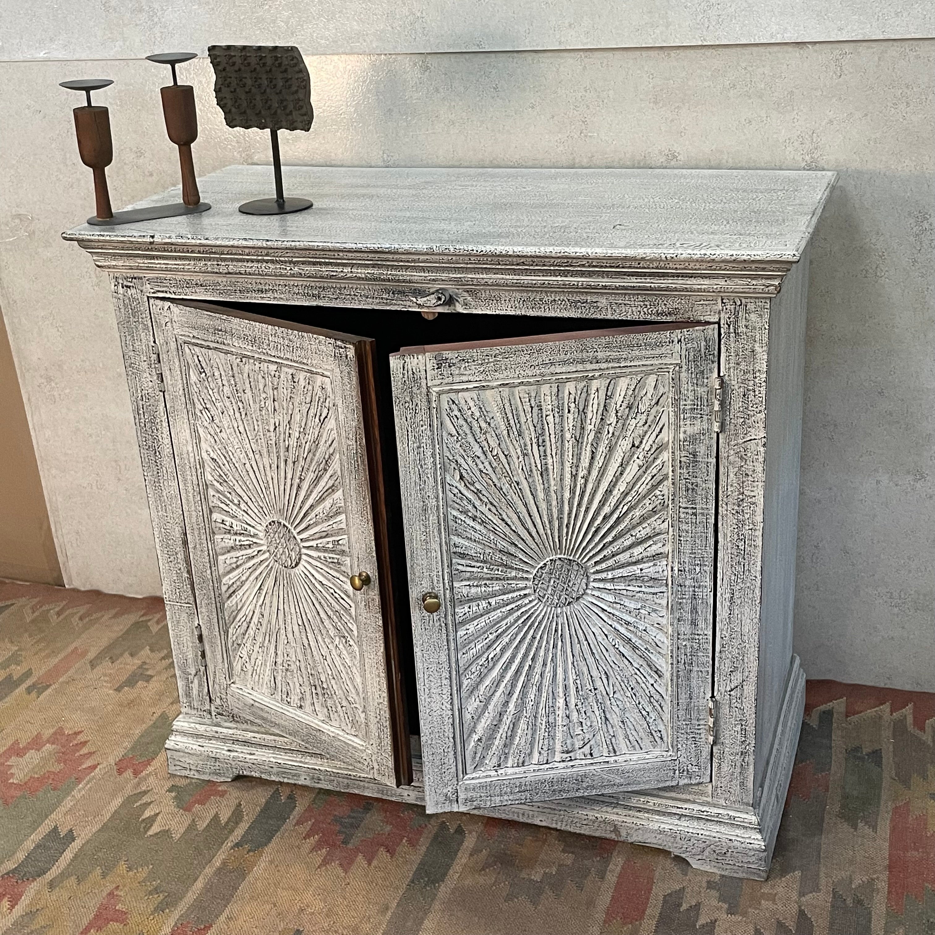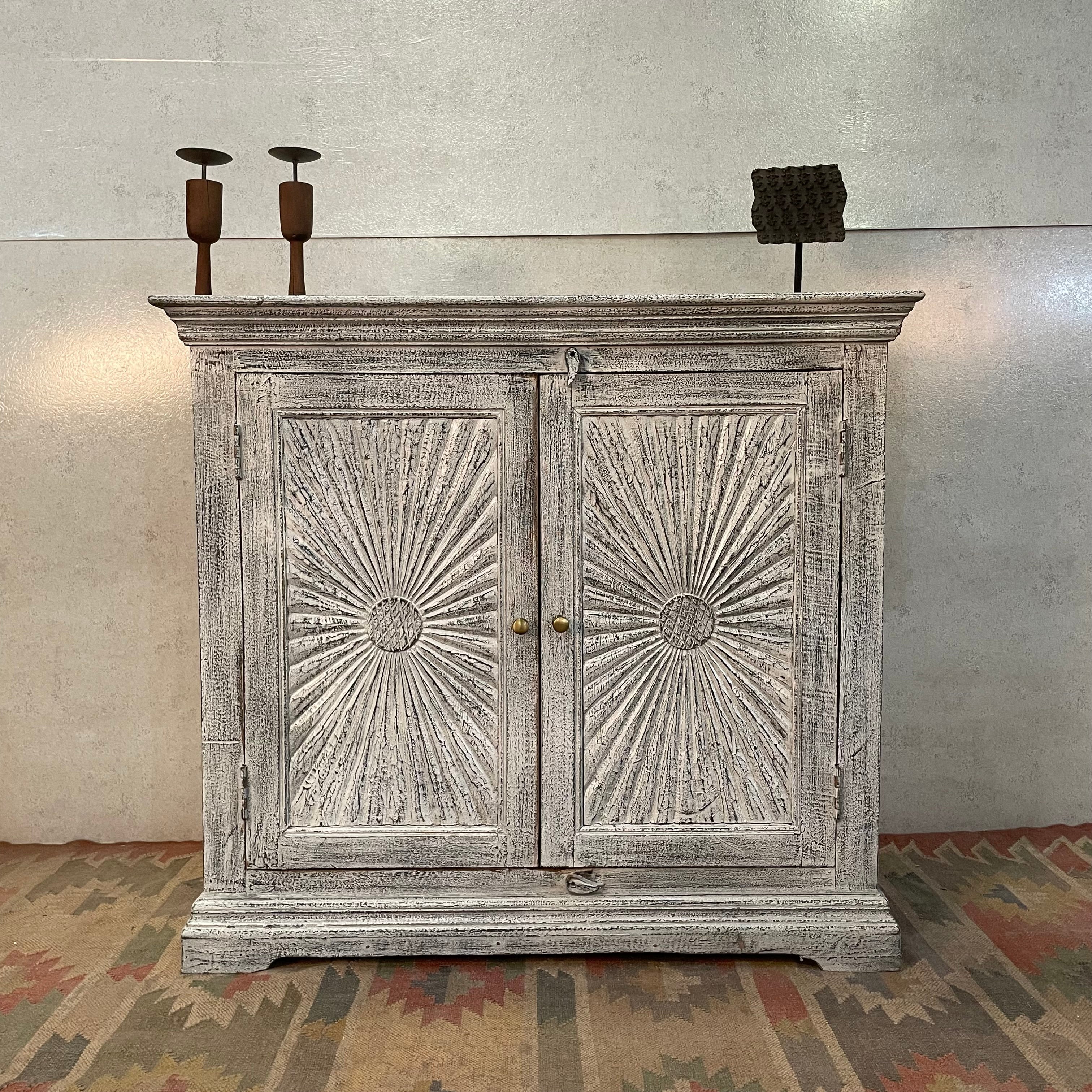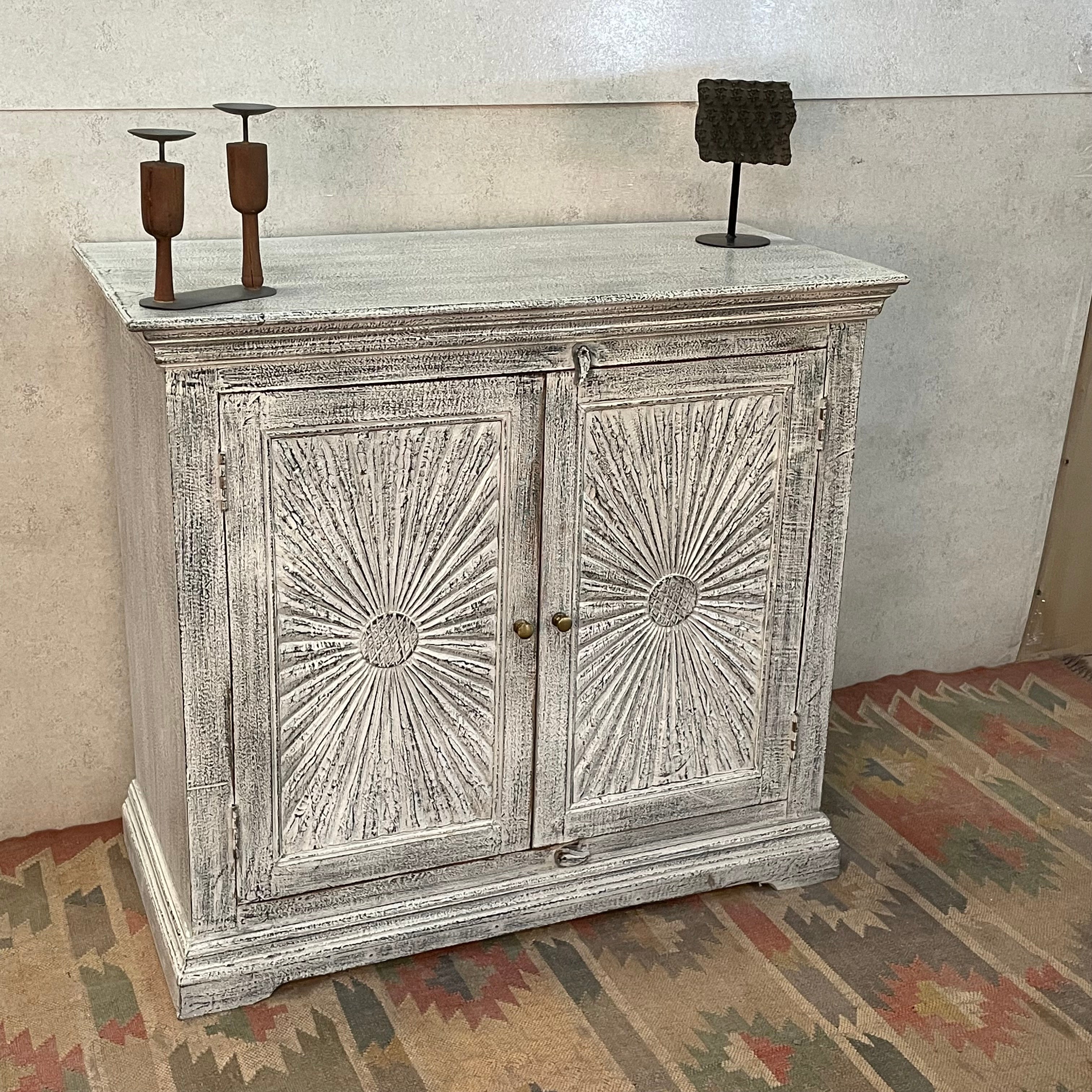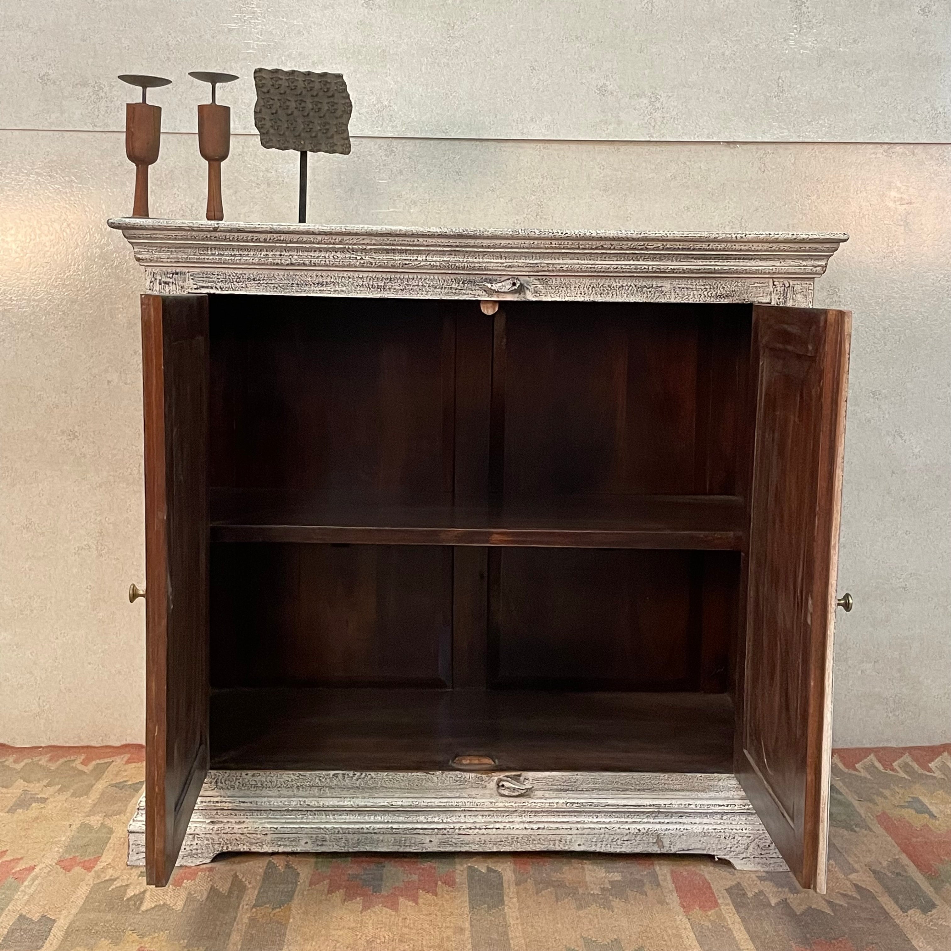 Handcrafted Indian Furniture Carved Solid Hard Wood 2Doors Cabinet Greywash 107x51x97Cm
