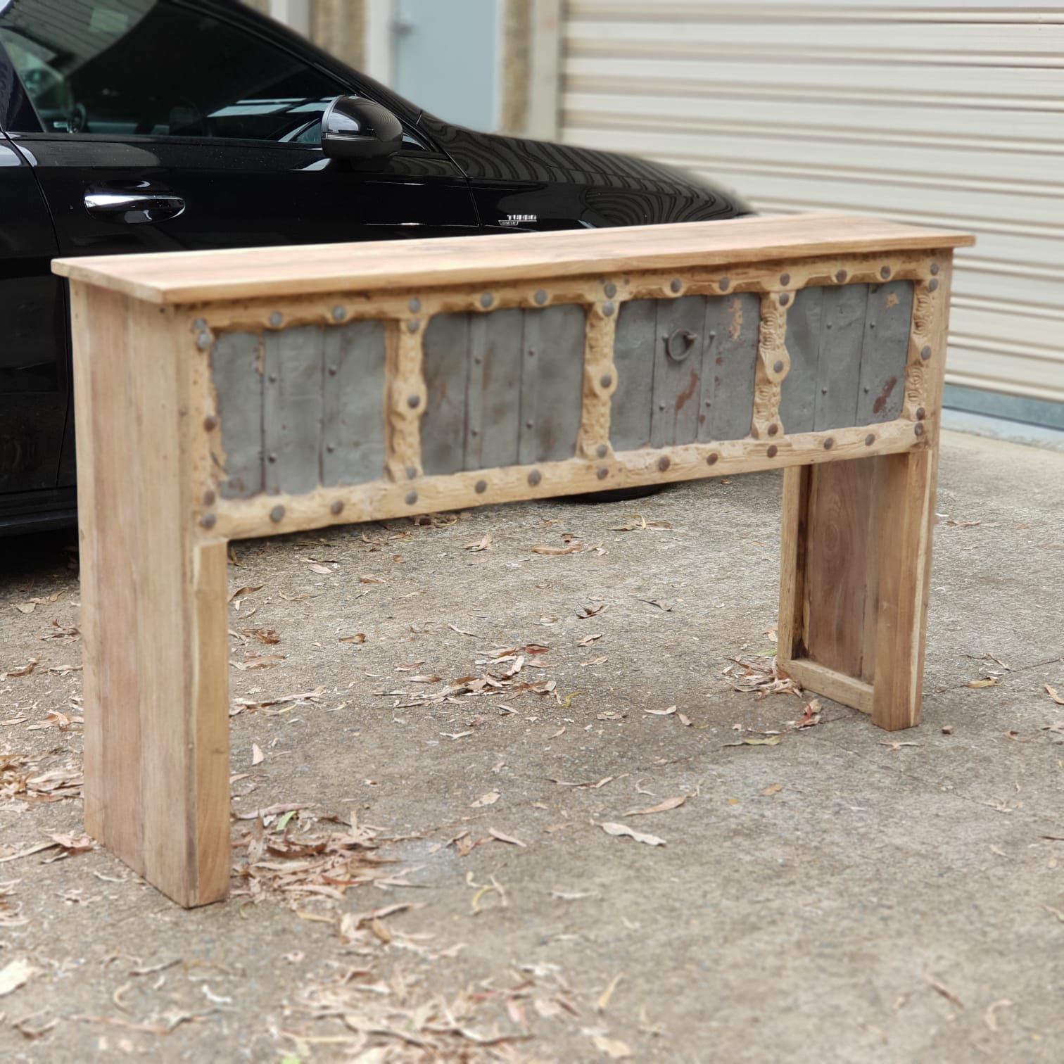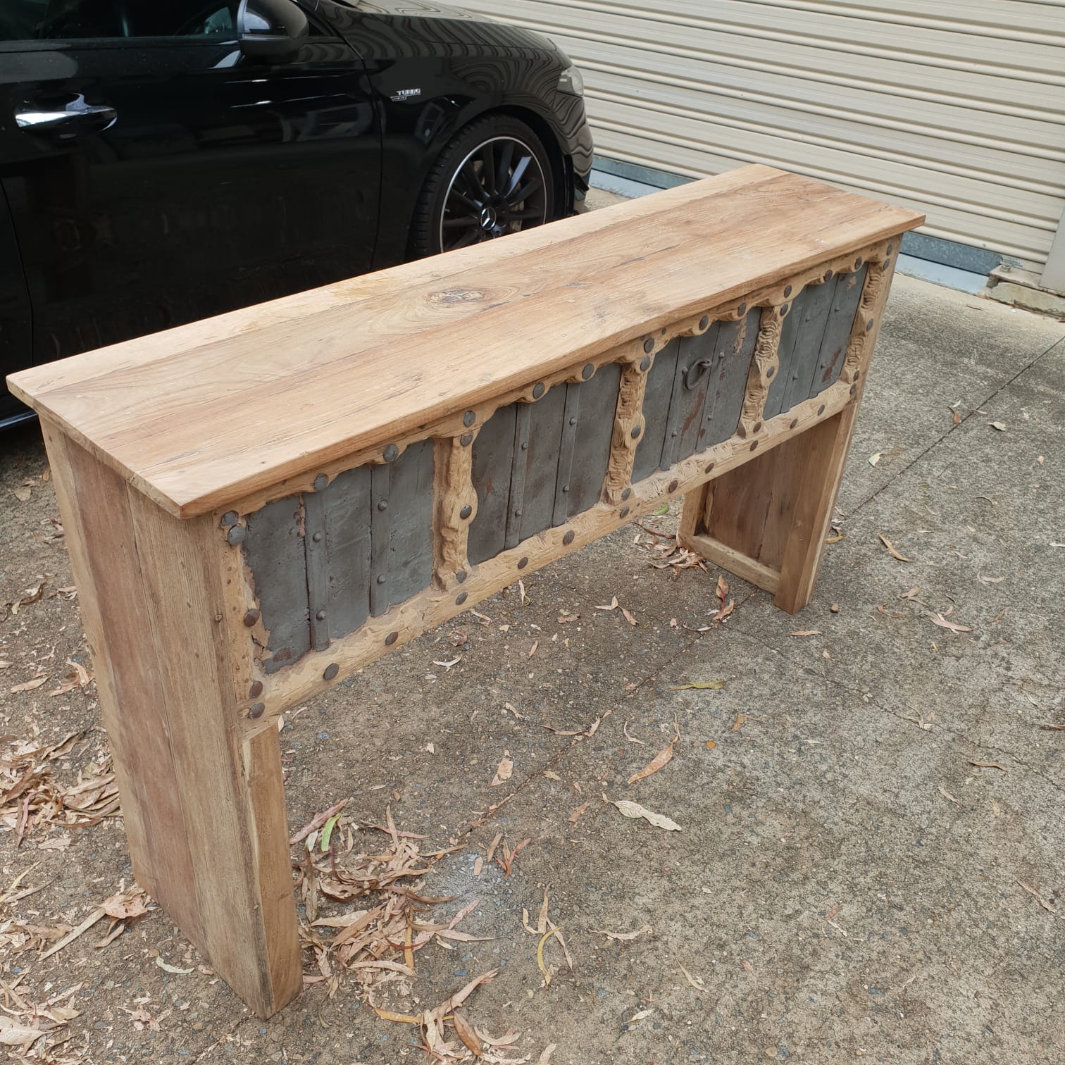 Handmade Carved Reclaimed Old Wood Console Table With Iron Fittings