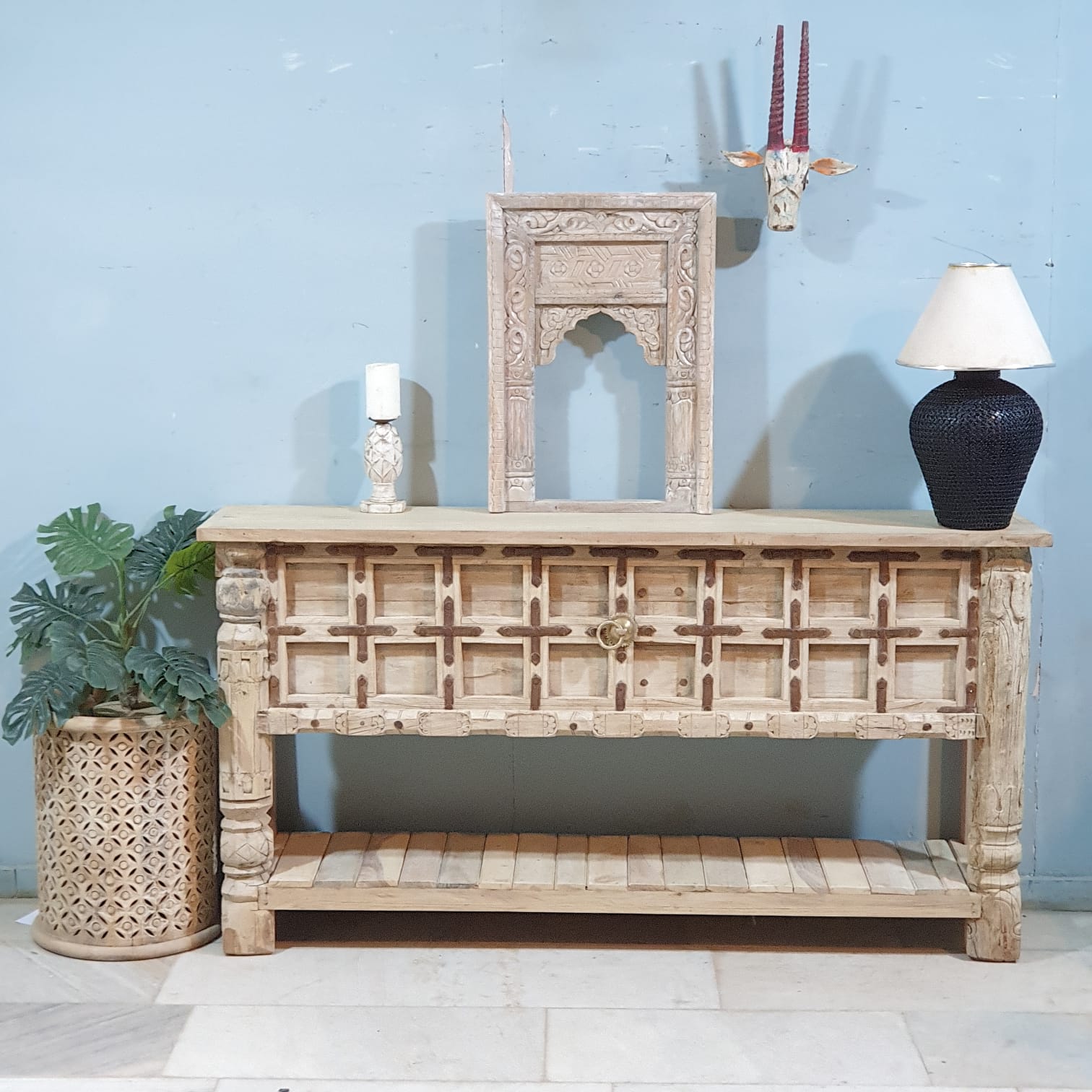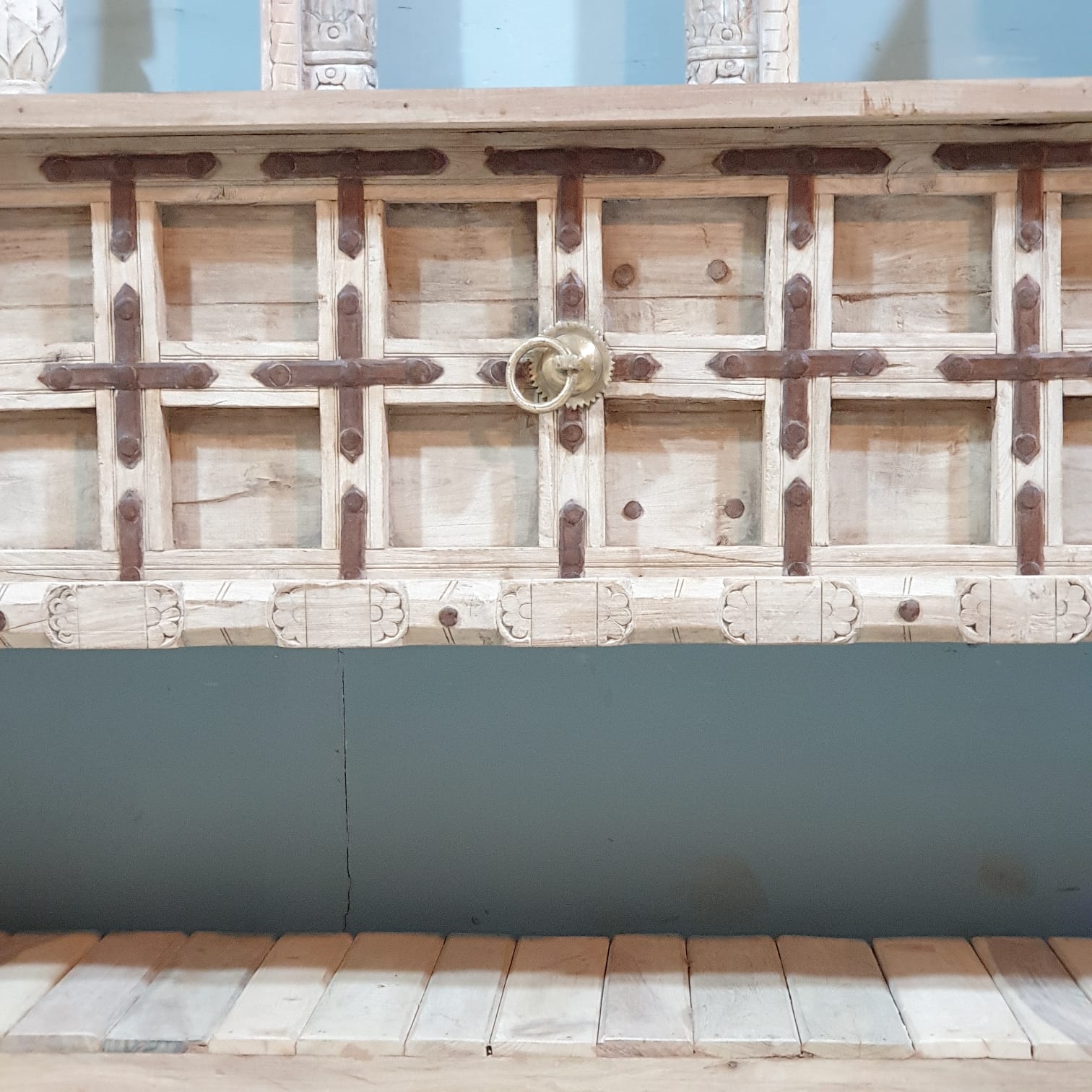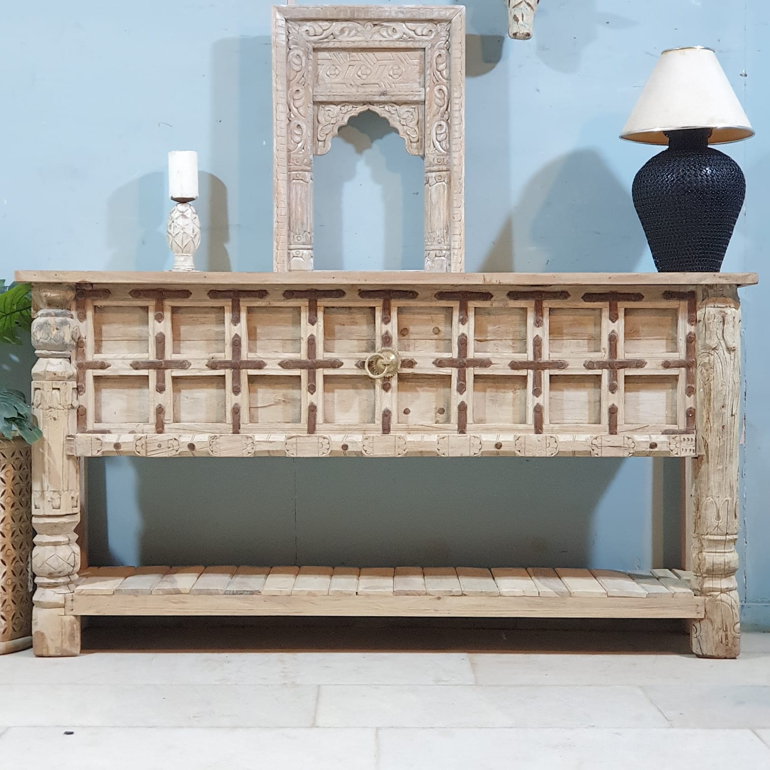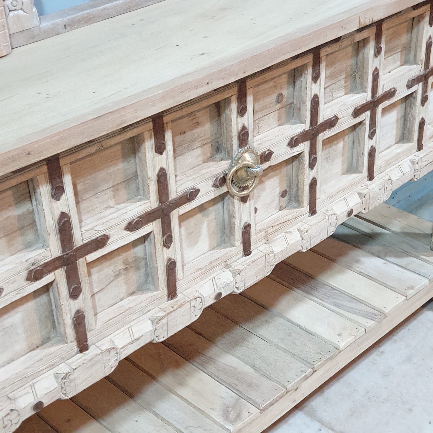 Handmade Carved Solid Hard Wood Console Table With Iron Fittings 181x41x94 Cm
