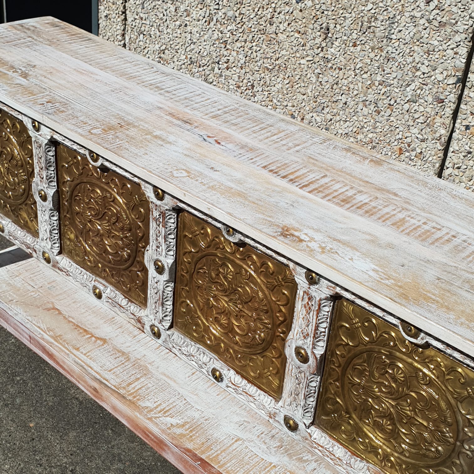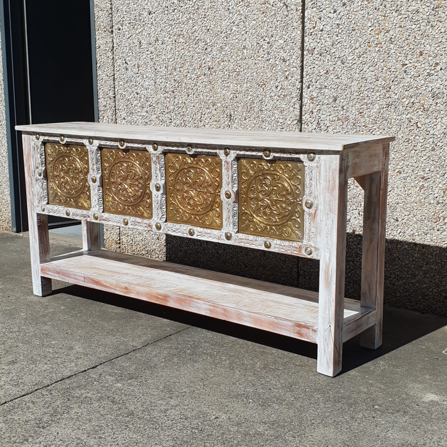 Handmade Carved Solid Hard Wood Console Table With Brass Fittings