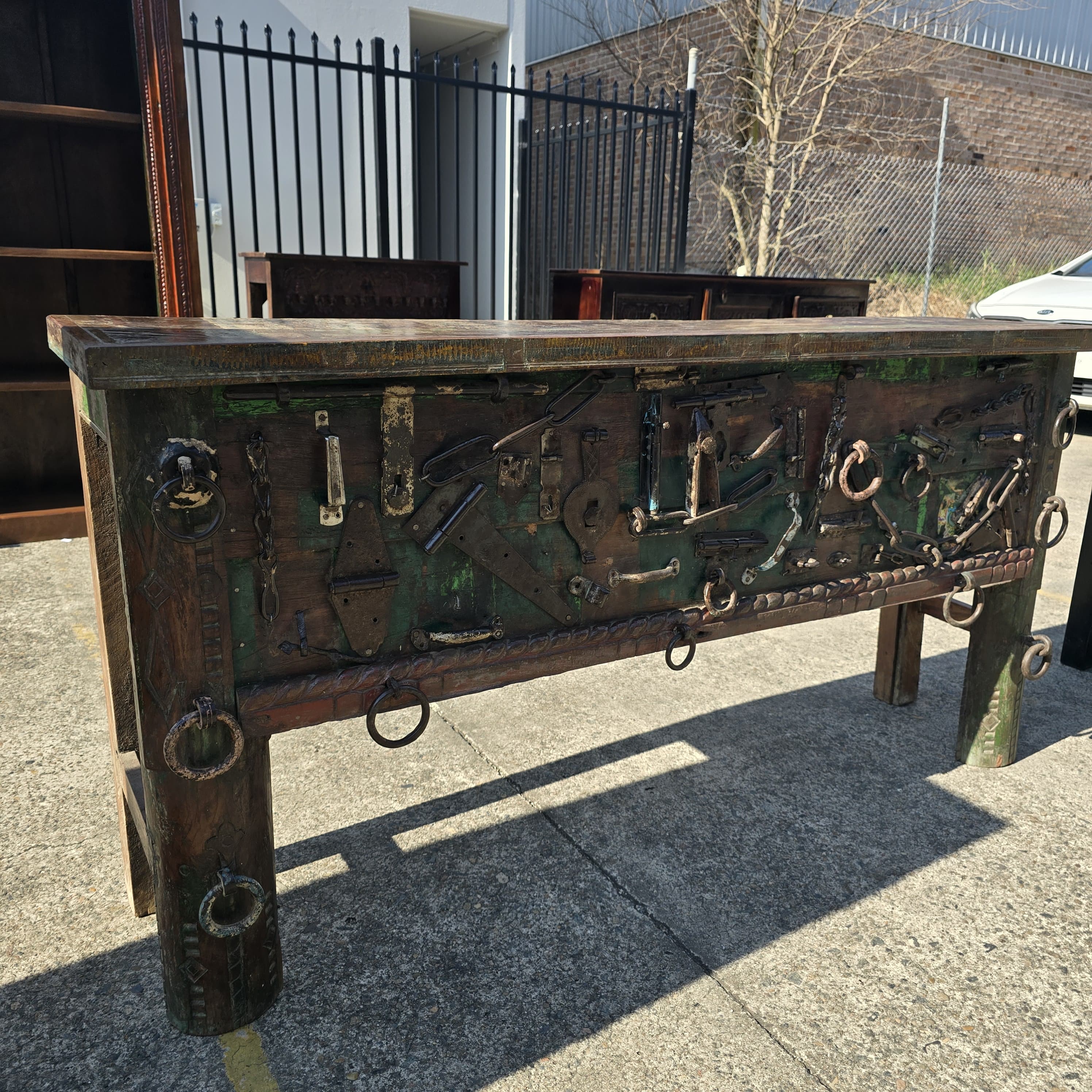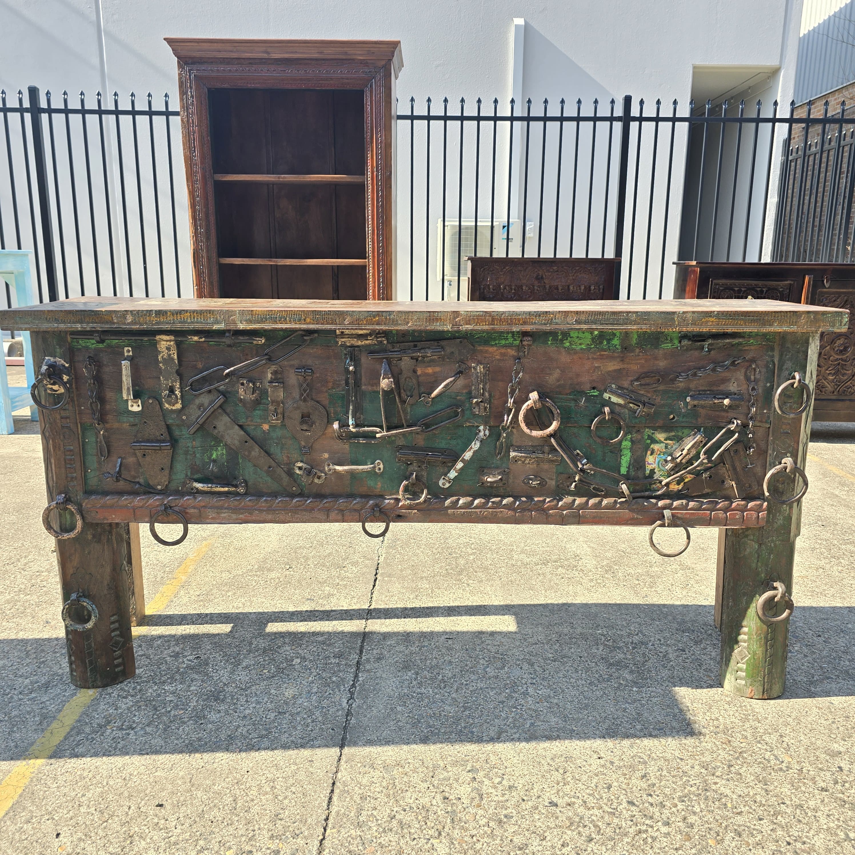 Handmade Carved Solid Hard Wood Old Door Console Table