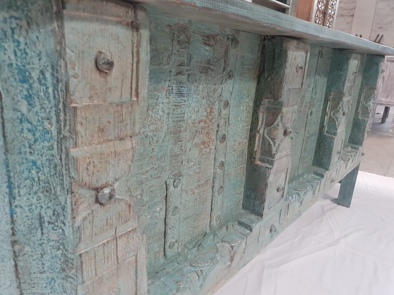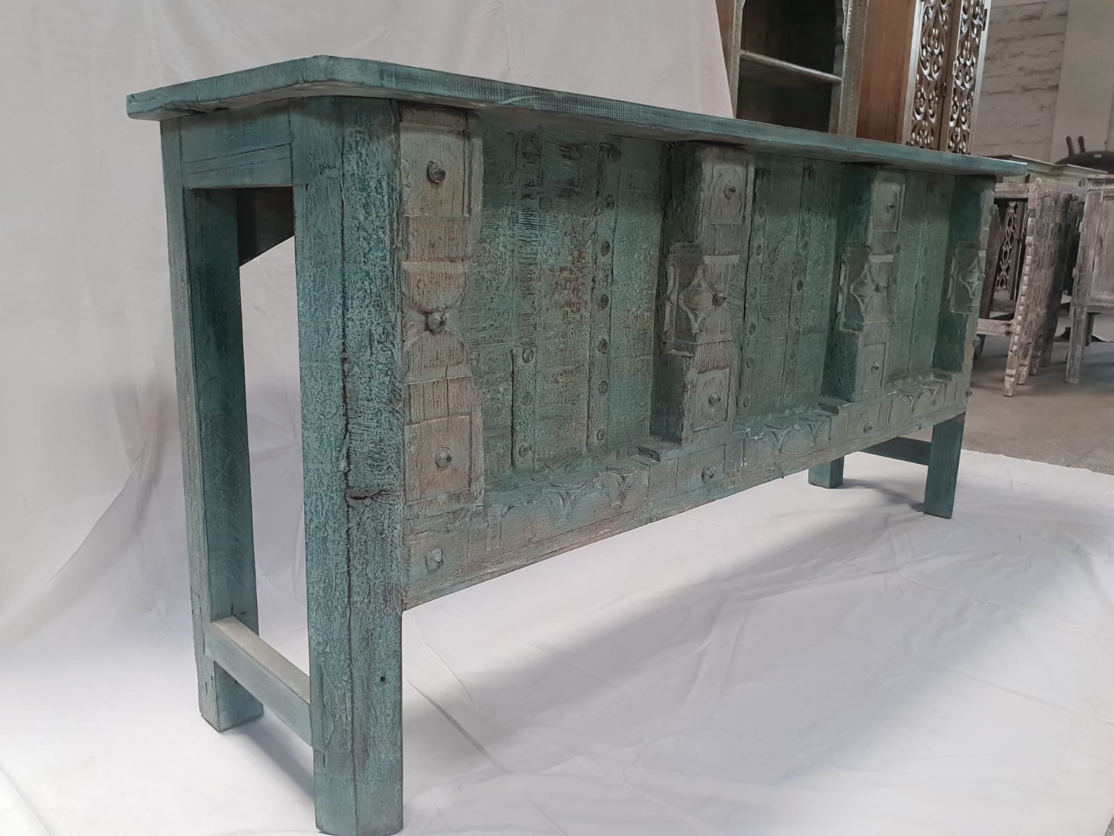 Handmade Carved Solid Hard Wood Old Door Console Table
