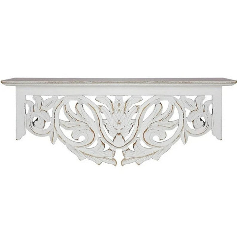 Handmade Home Decor Carved Mango Wood Floating Wall Shelf