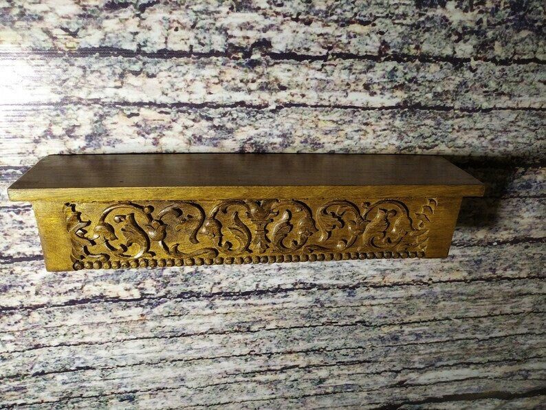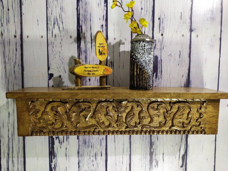 Handmade Home Decor Carved Mango Wood Floating Wall Shelf
