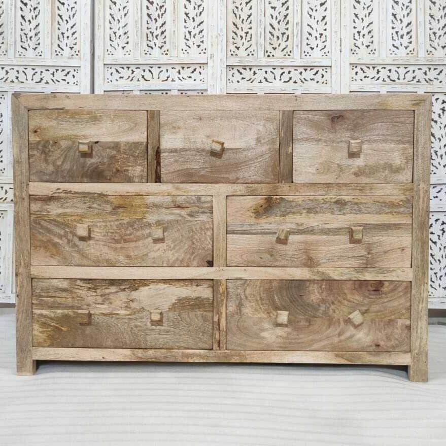 Handmade Indian Furniture Mango Wood Chest of Drawers Natural Finish