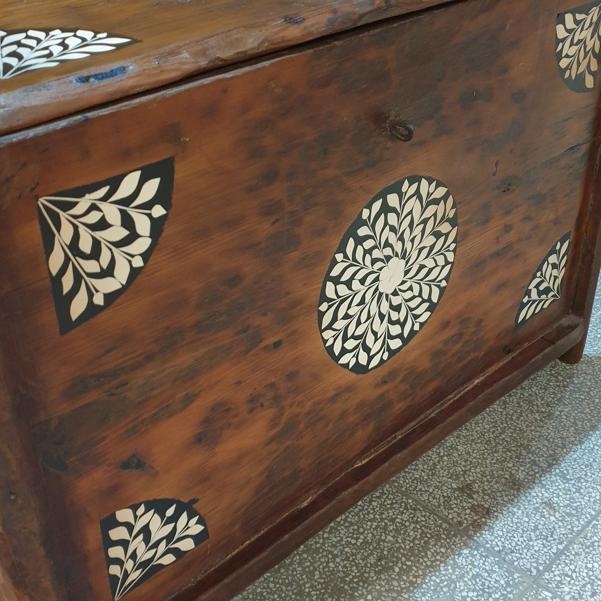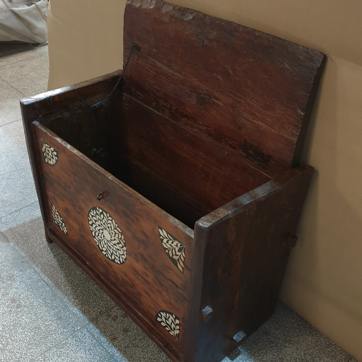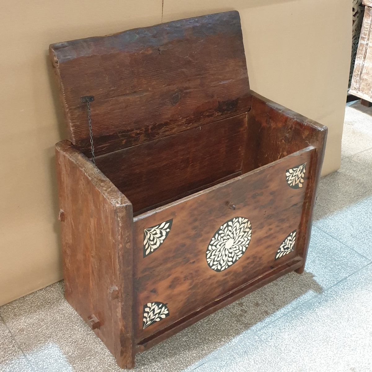 Handmade Indian Furniture Old Wood Blanket Storage Box Painted in Brown