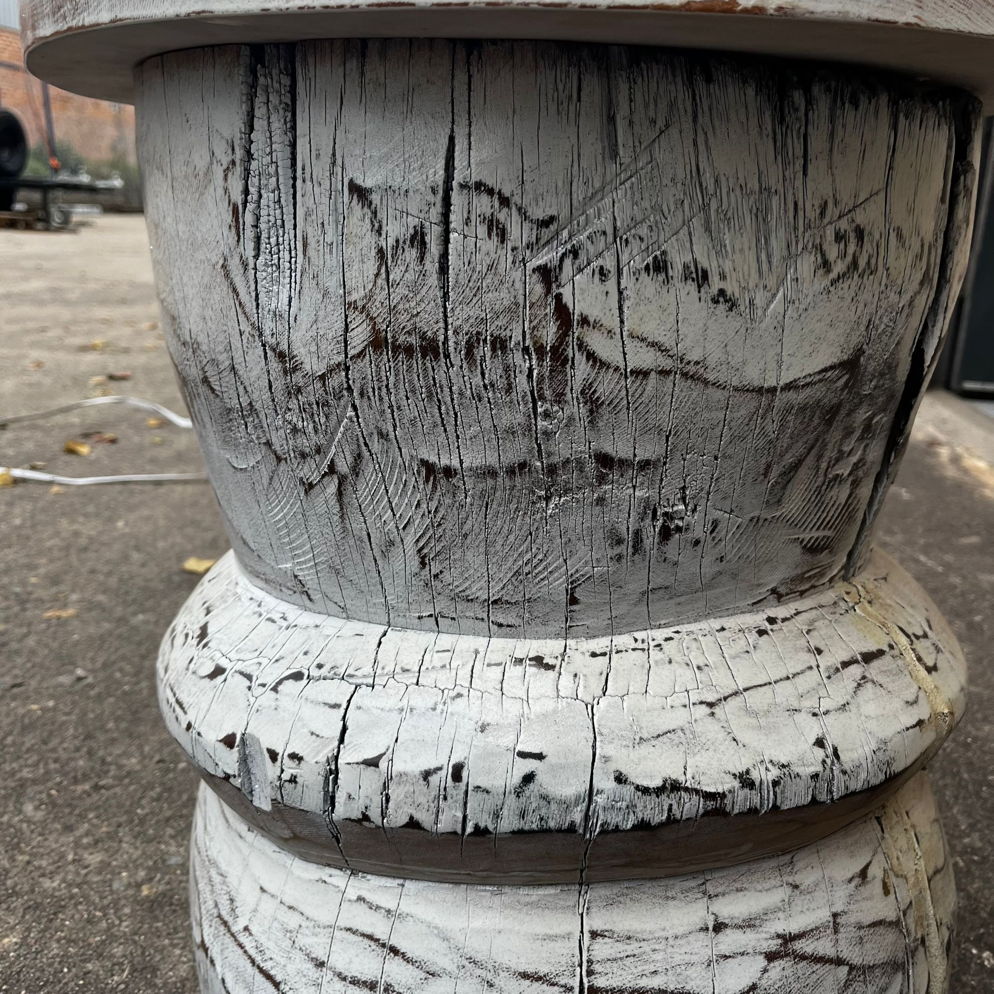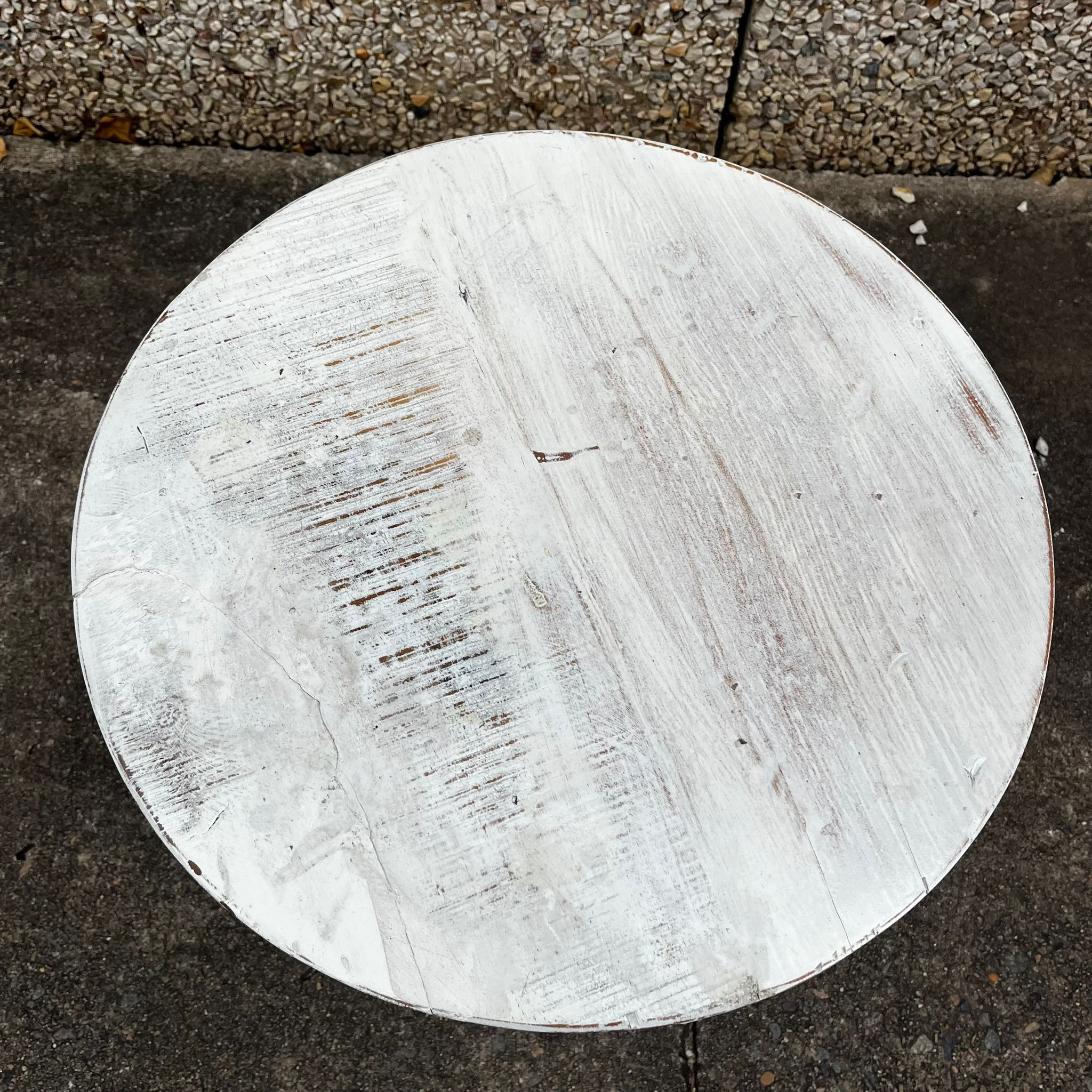 Handmade Indian Furniture Reclaimed Wooden Okhli Stool in Whitewash