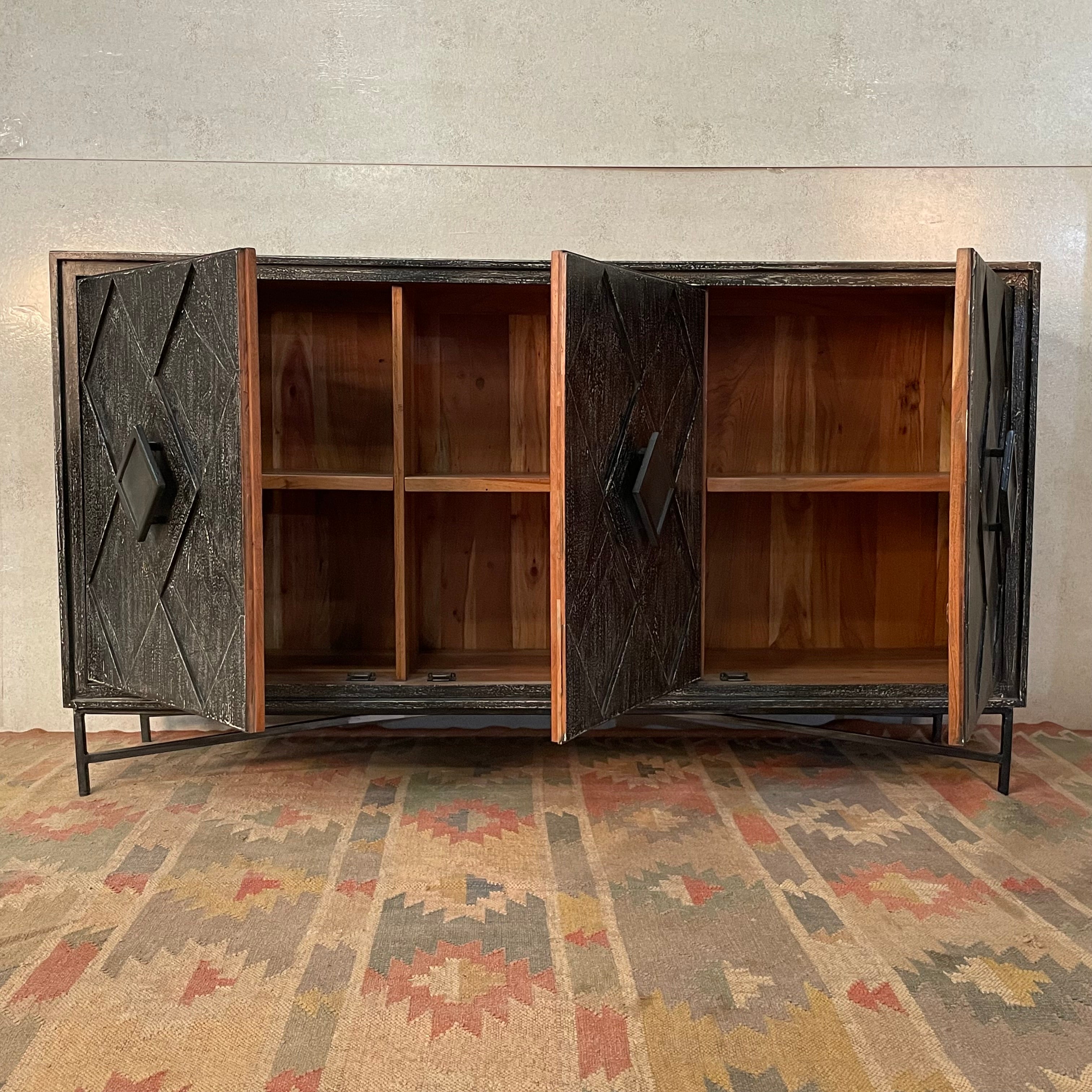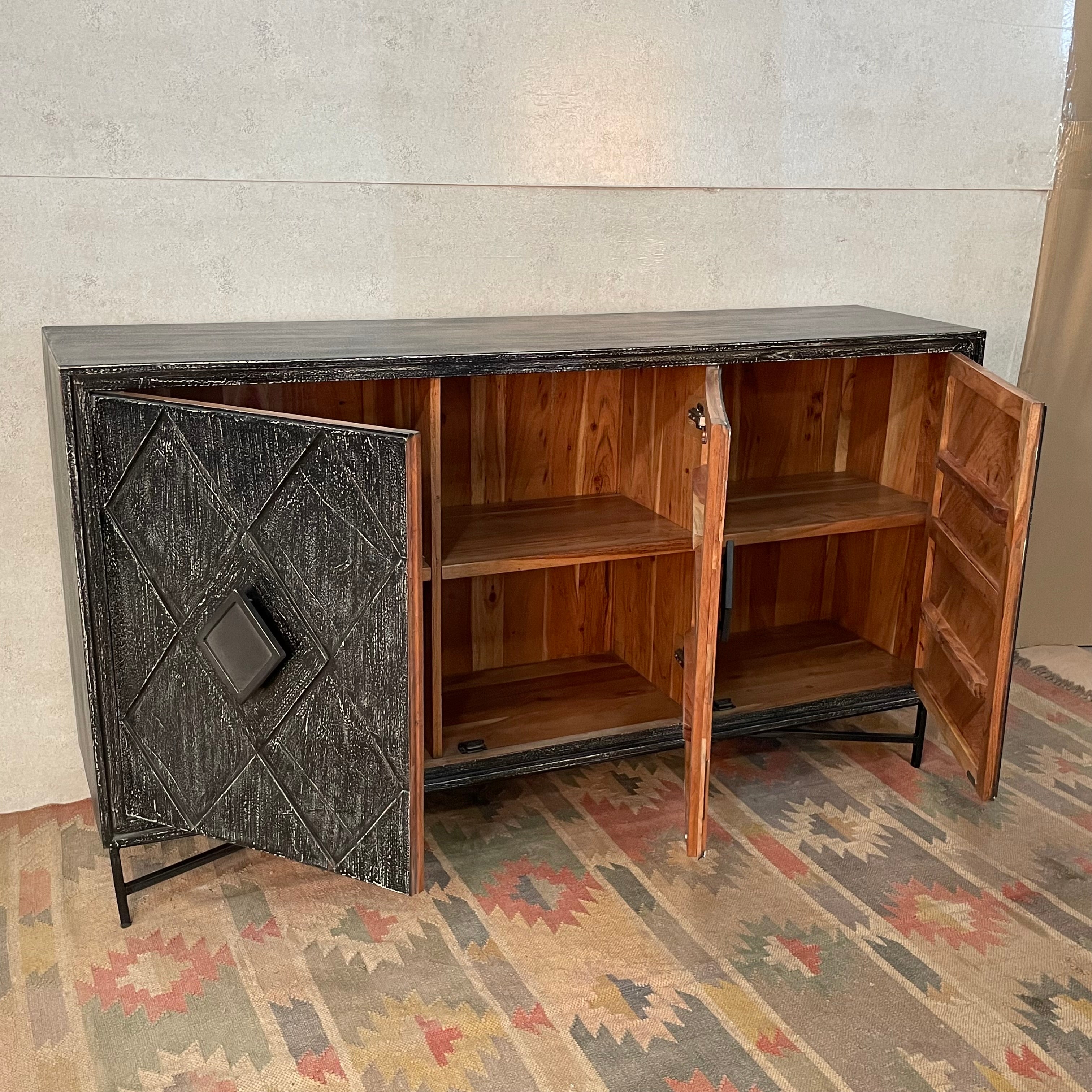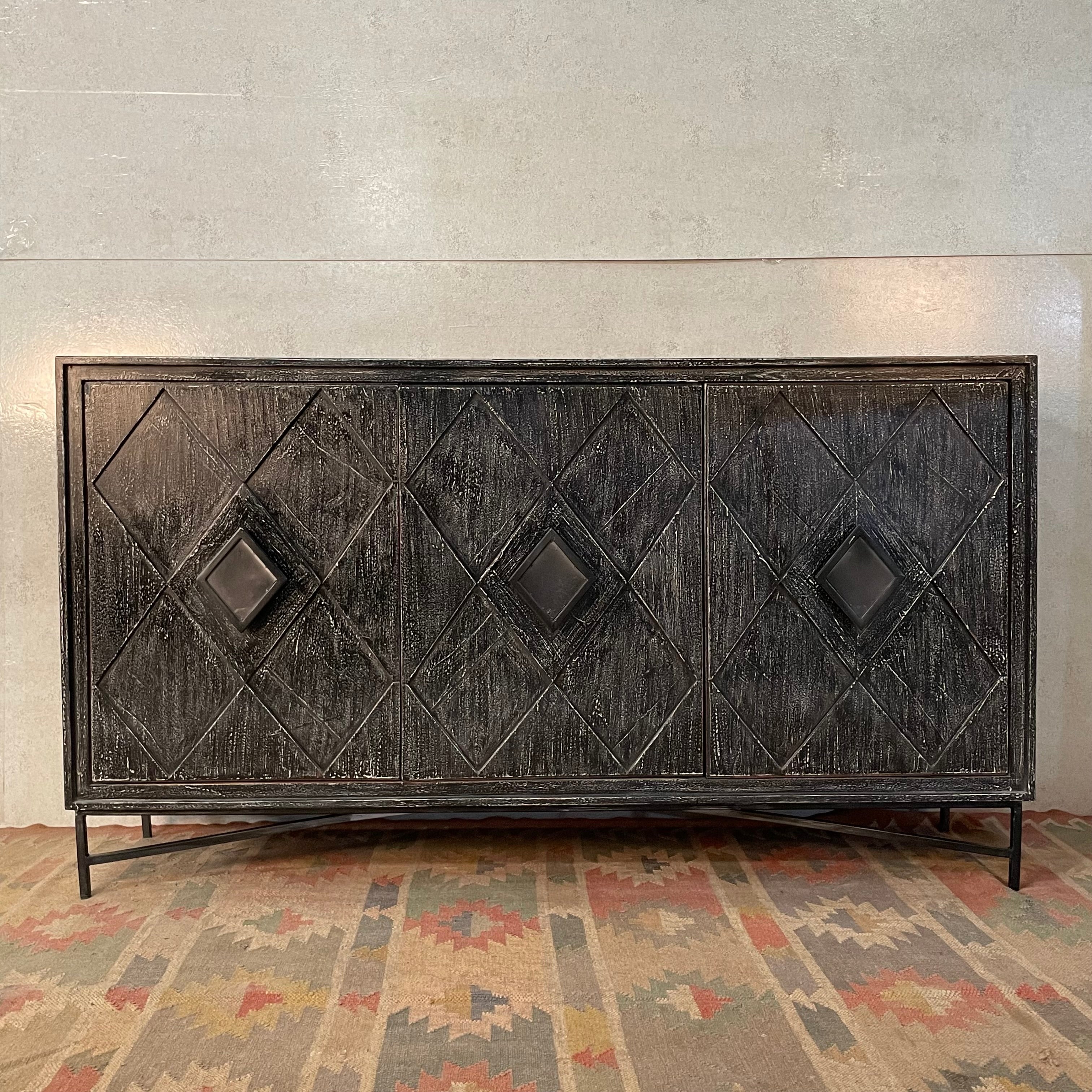 Handmade Indian Furniture Solid Hard Wood 3 Doors Sideboard in Black
