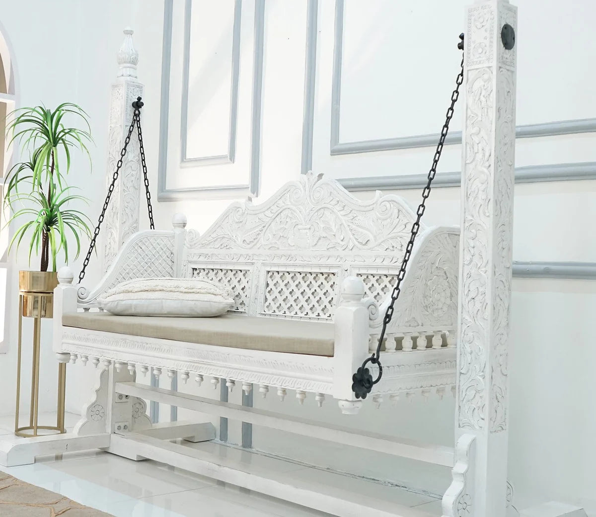 Handmade Indian Furniture Solid Hard Wood Swing Daybed in Whitewash