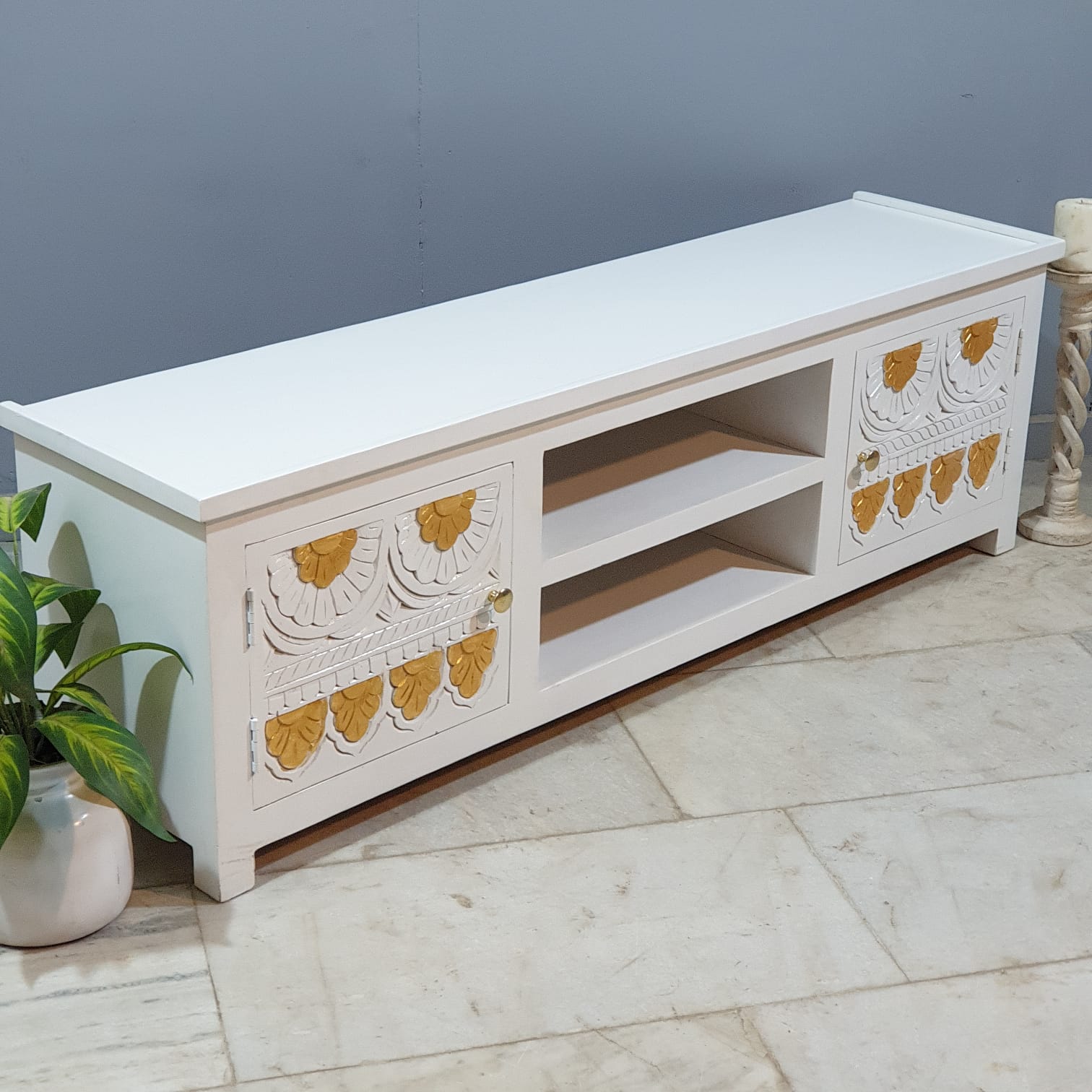 Handmade Indian Furniture Solid Hard Wood TV Unit 160x40x50 cm