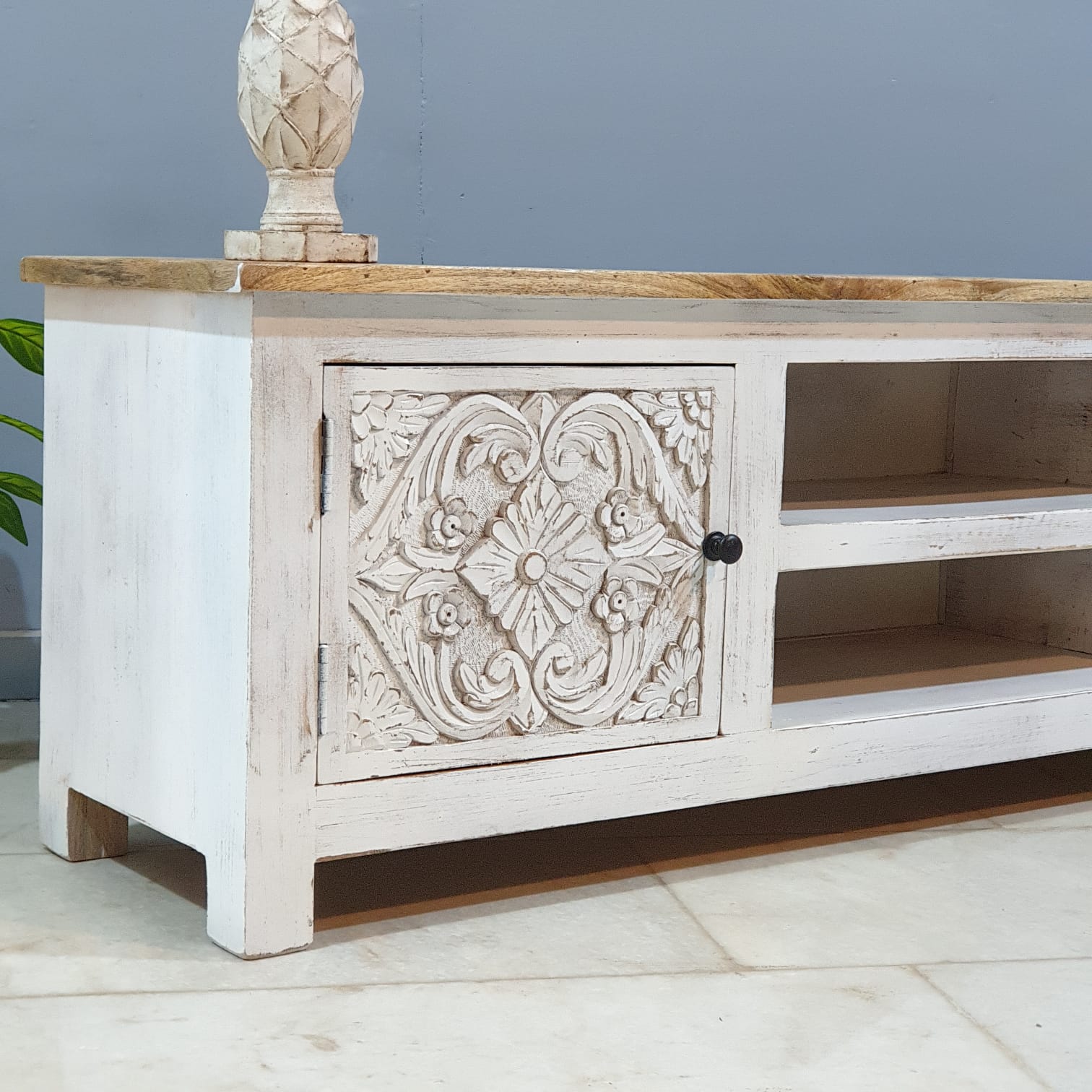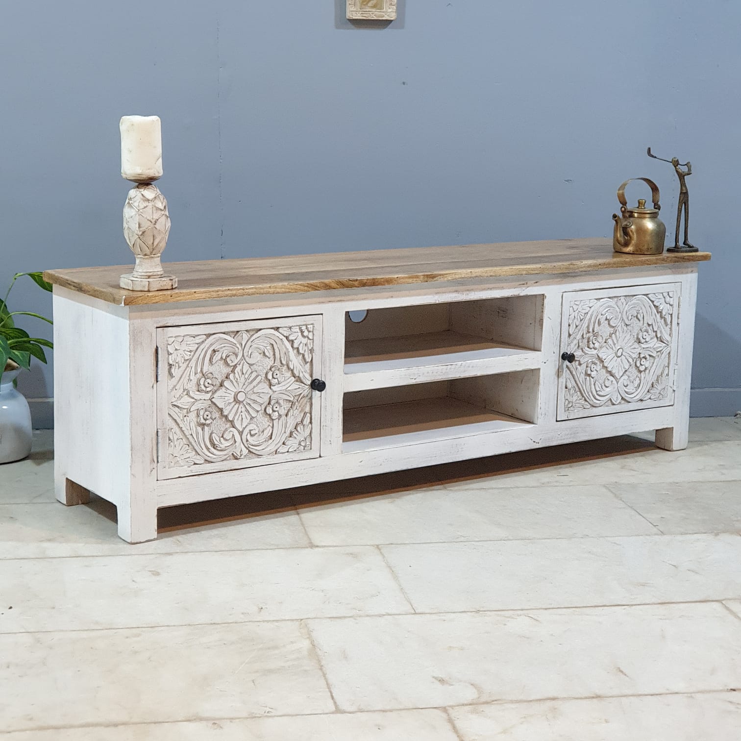 Handmade Indian Furniture Solid Hard Wood TV Unit 160x40x50Cm