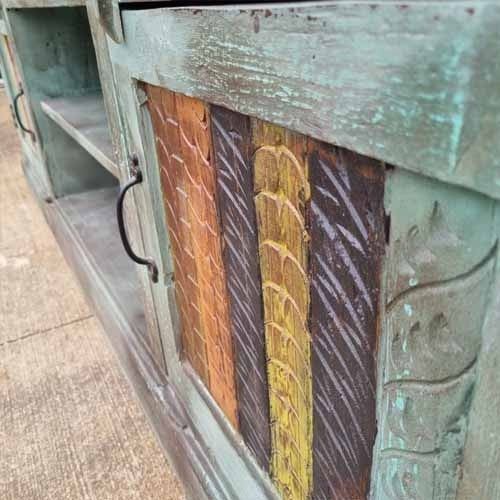 Handmade Indian Furniture Solid Hard Wood TV Unit with 2 Doors Multicolor 178x41x61Cm