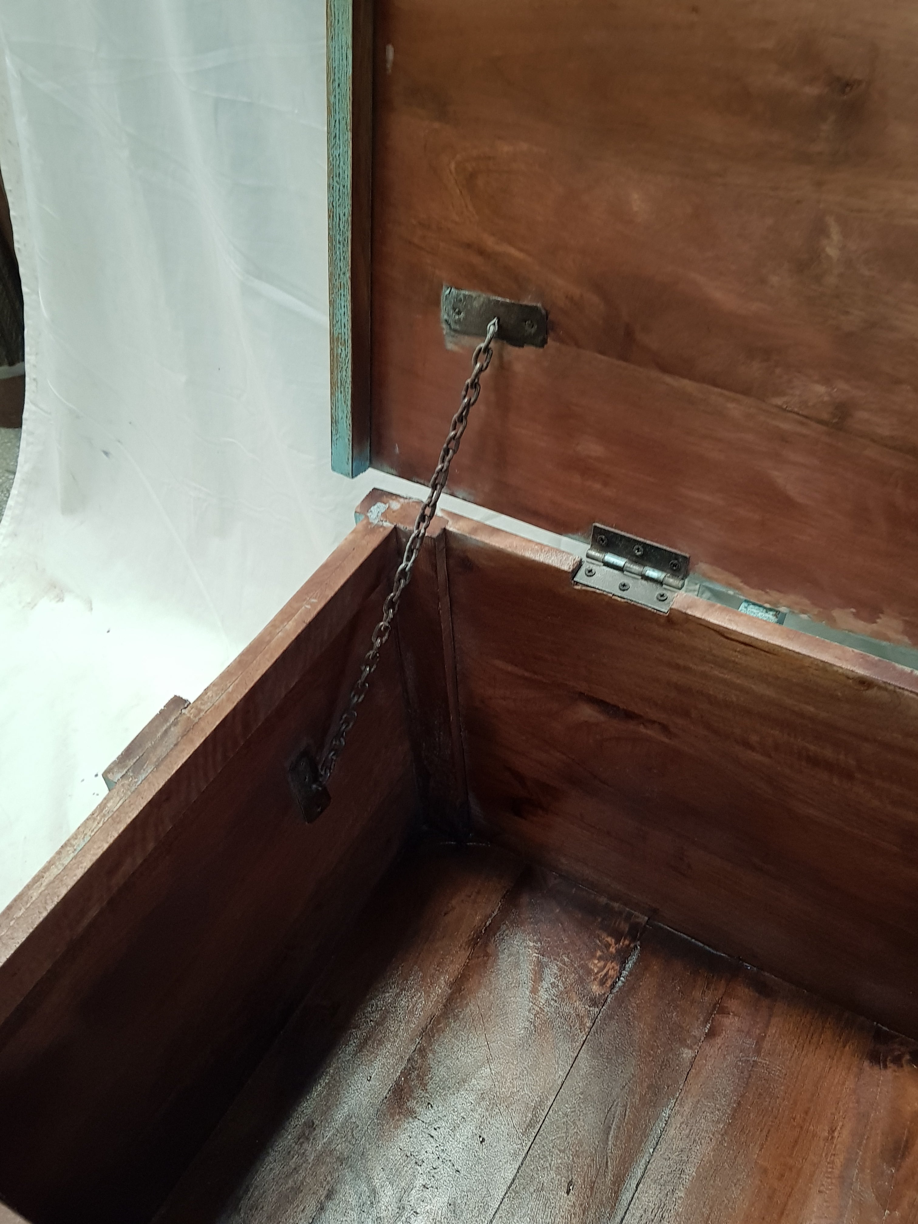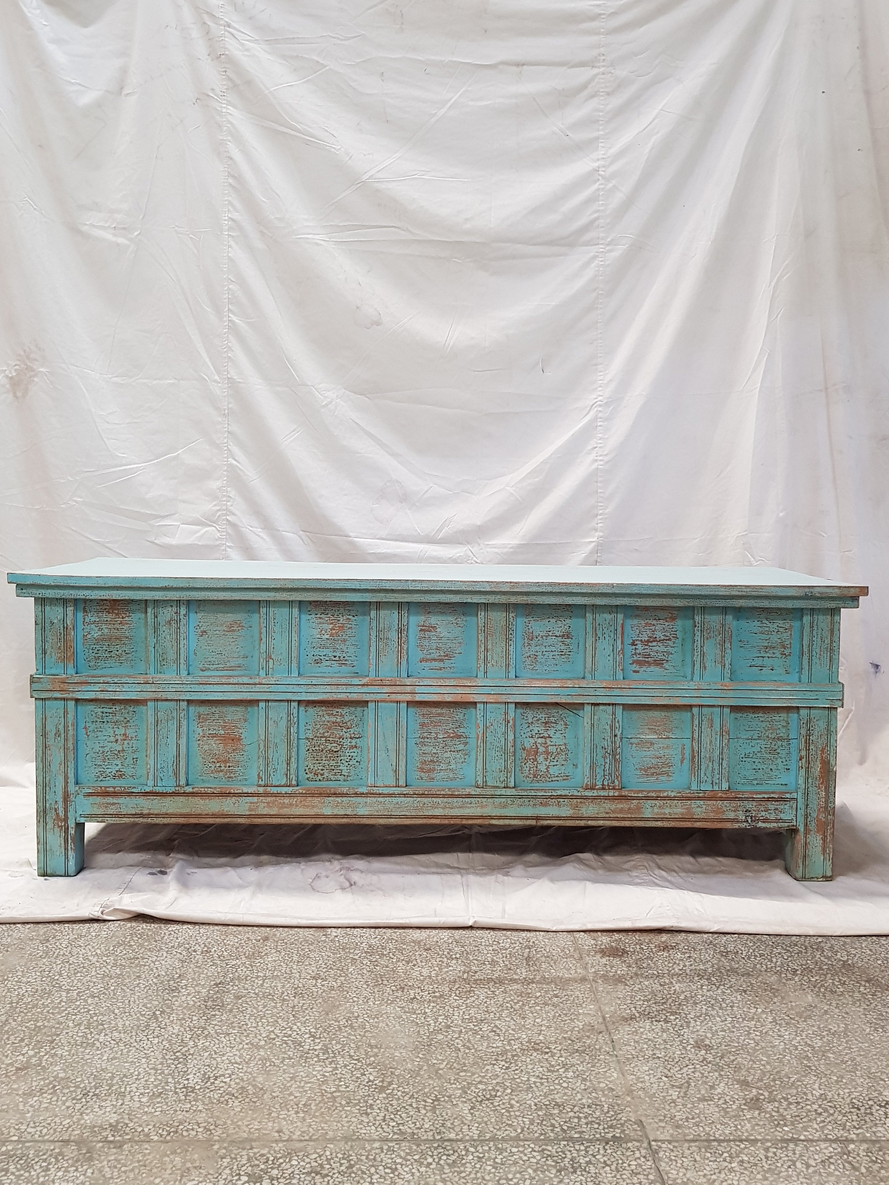 Handmade Indian Hand Carved Solid Hard Wood Old Door Blanket Box 140x52x50 cm