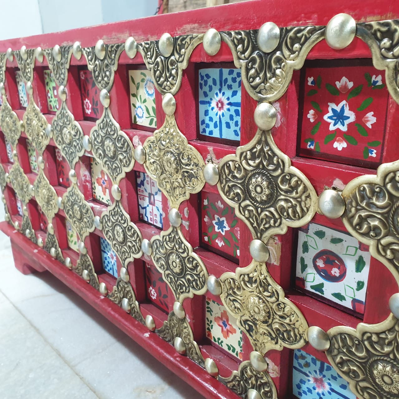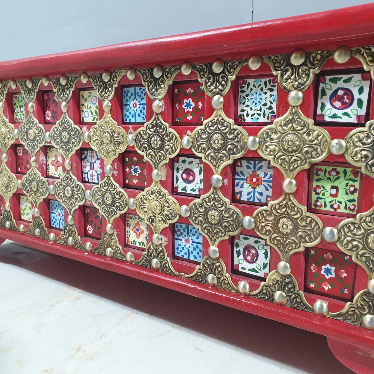 Indian Antique Brass Work Solid Wood Blanket Box C26