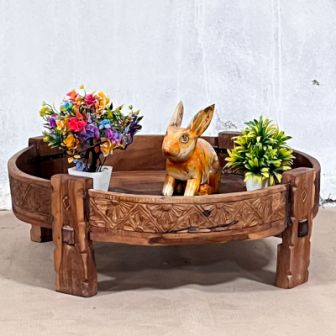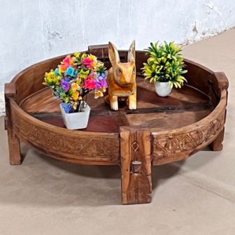 Indian Antique Carved Solid Wooden Grinder Coffee Table Brown 80x80x25Cm
