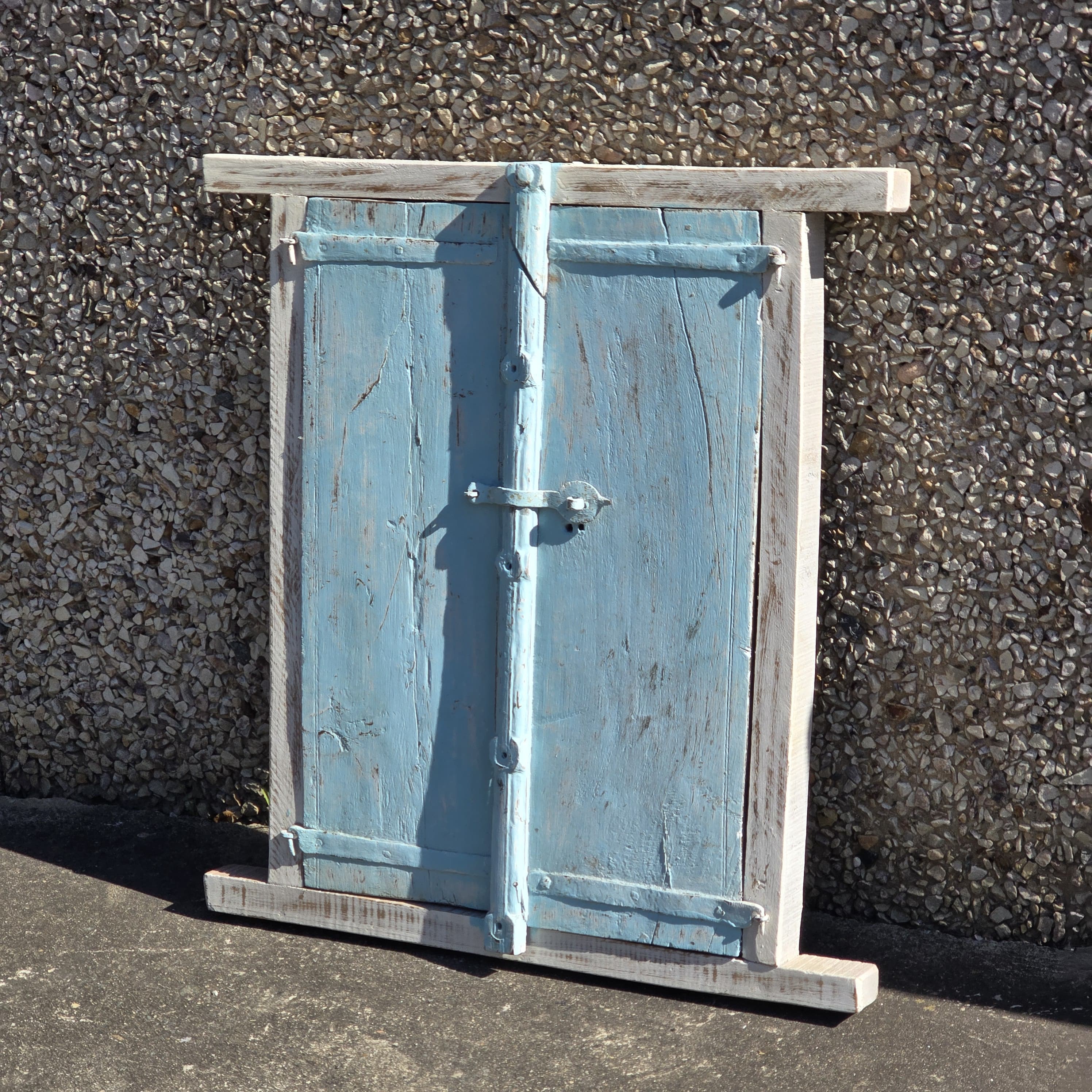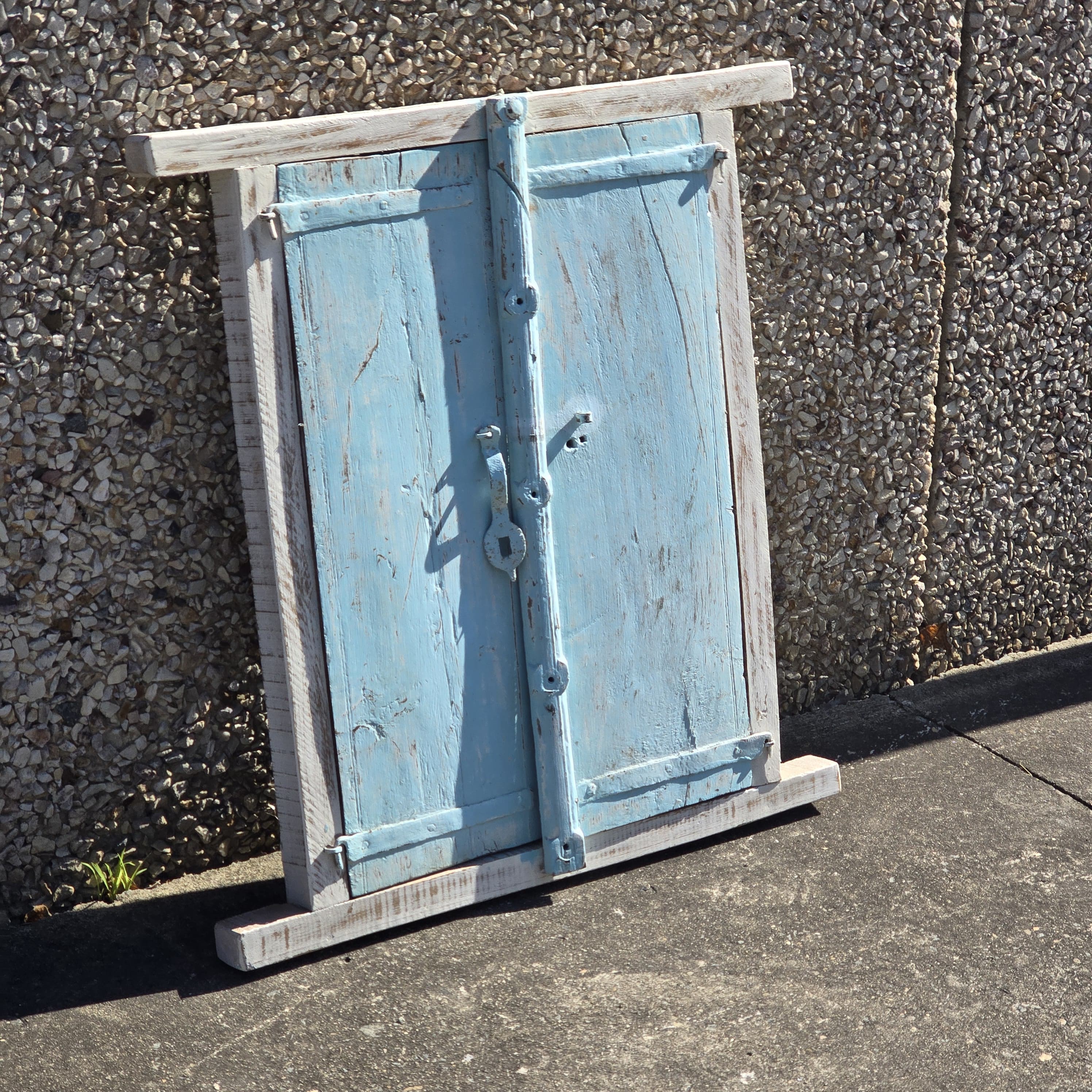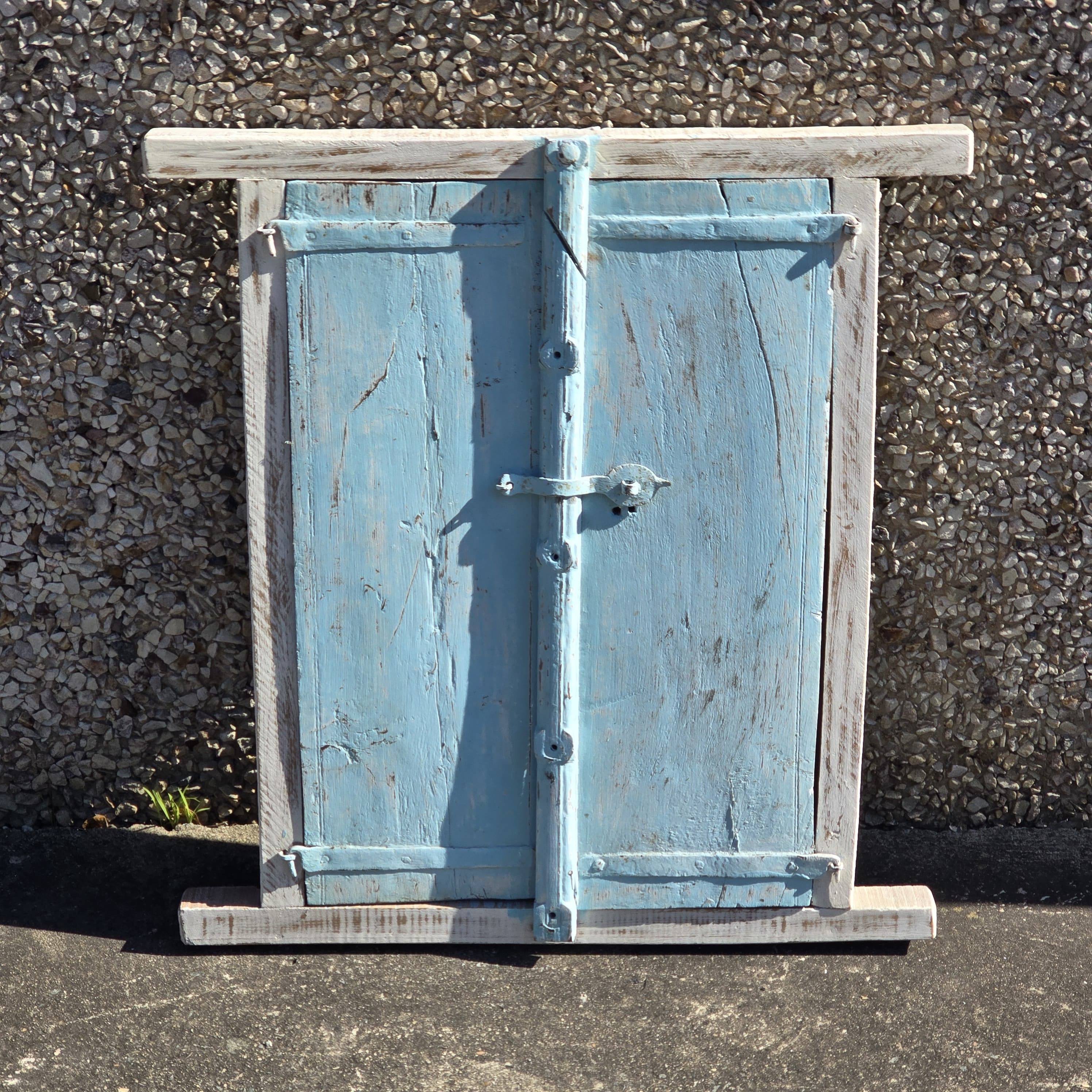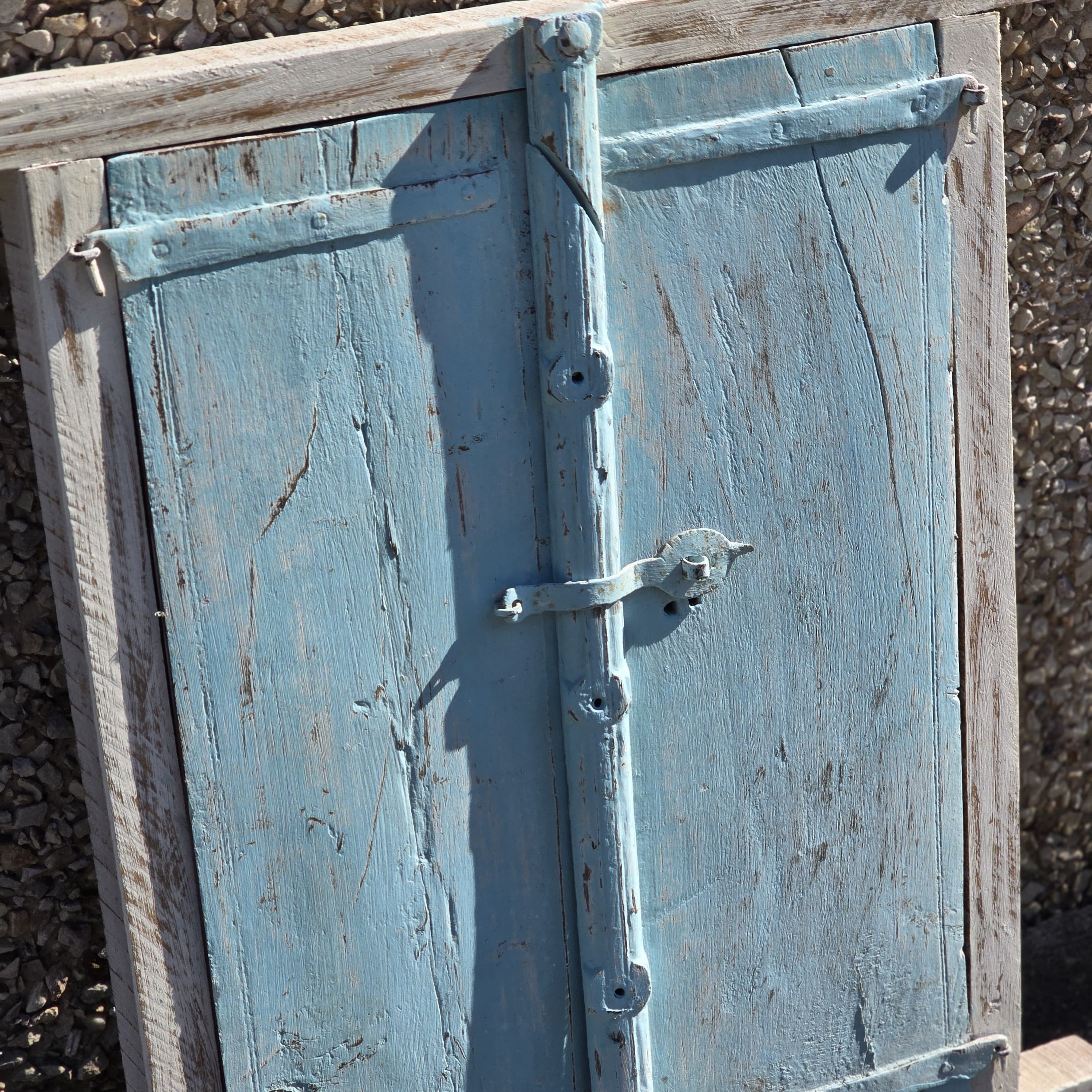 Indian Antique Hand Carved Old Small Door Panel Blue